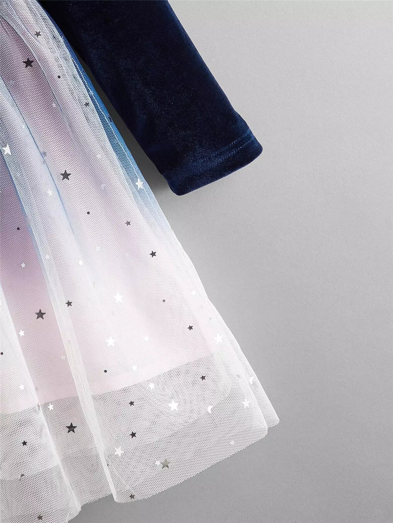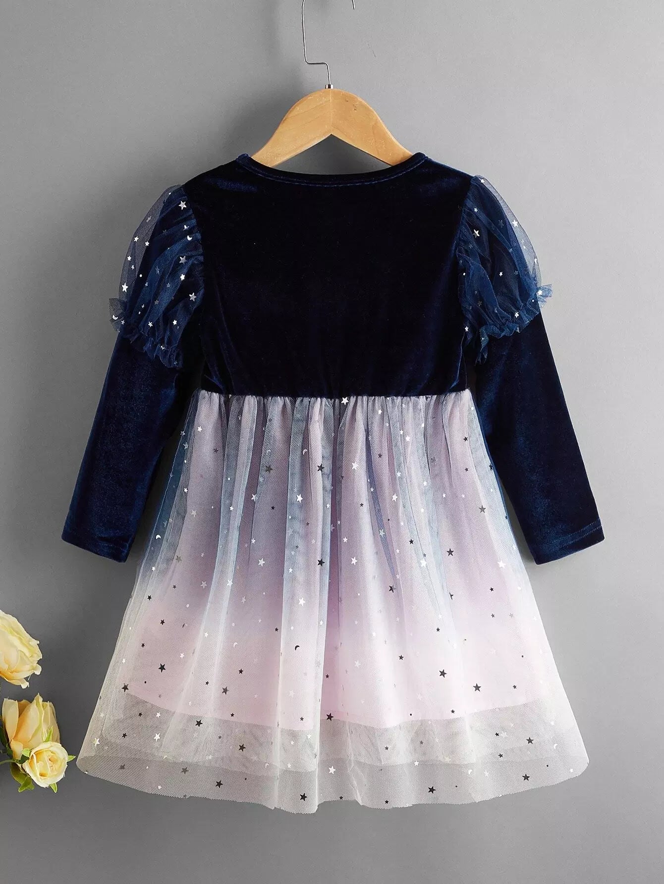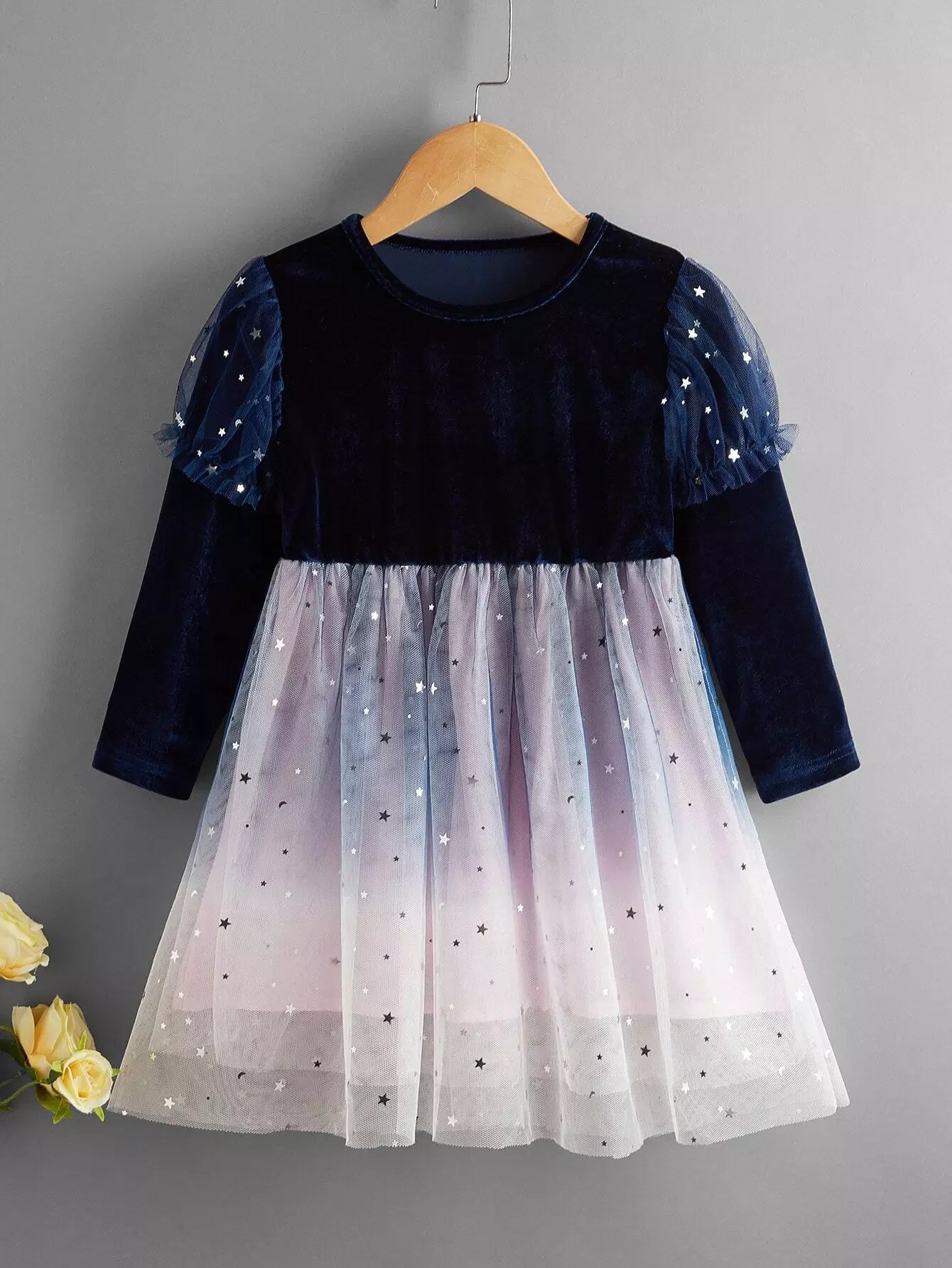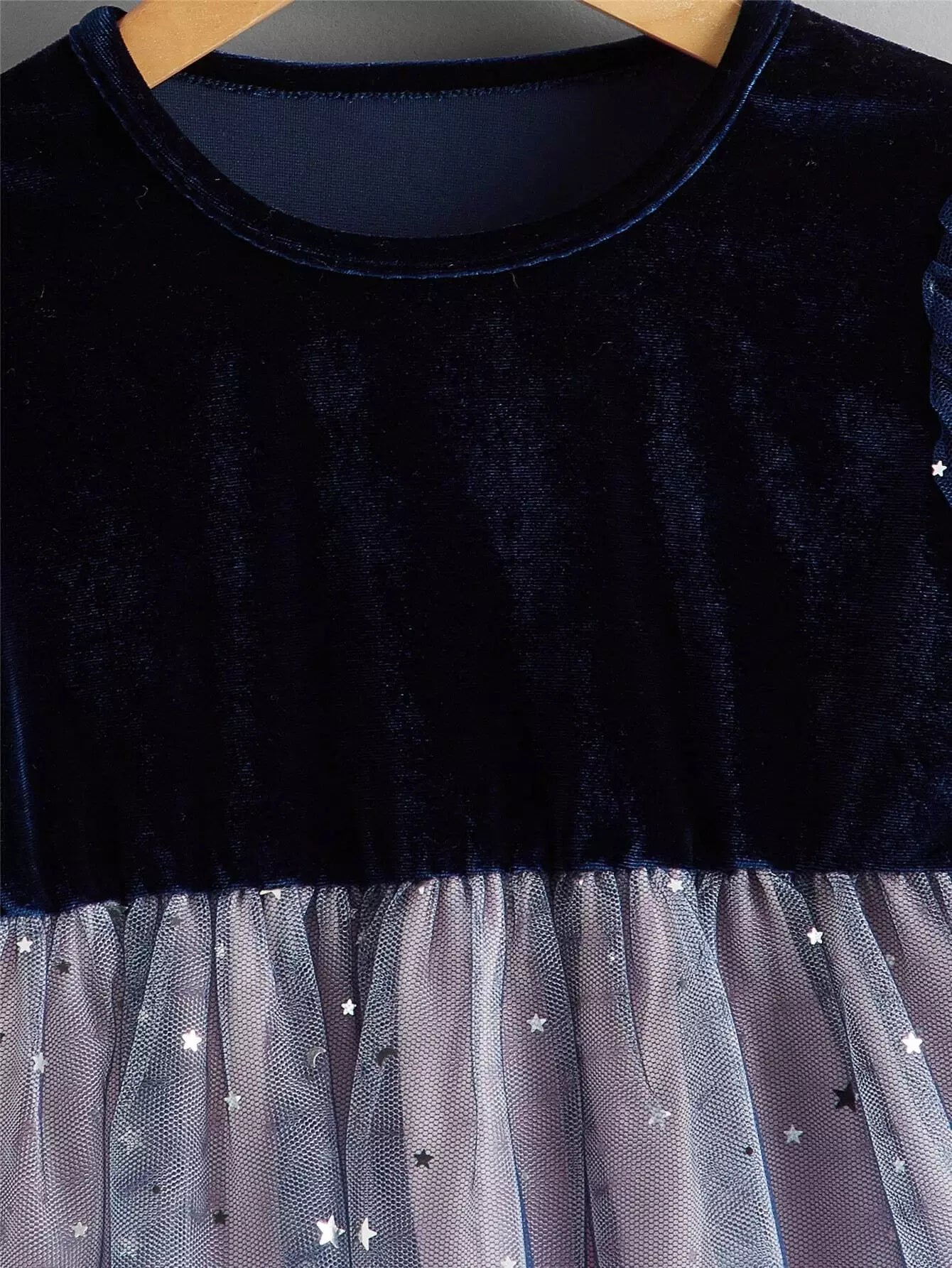 Toddler Girls Contrast Mesh Spliced Smock Dress