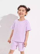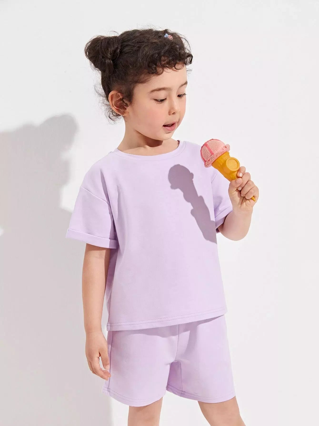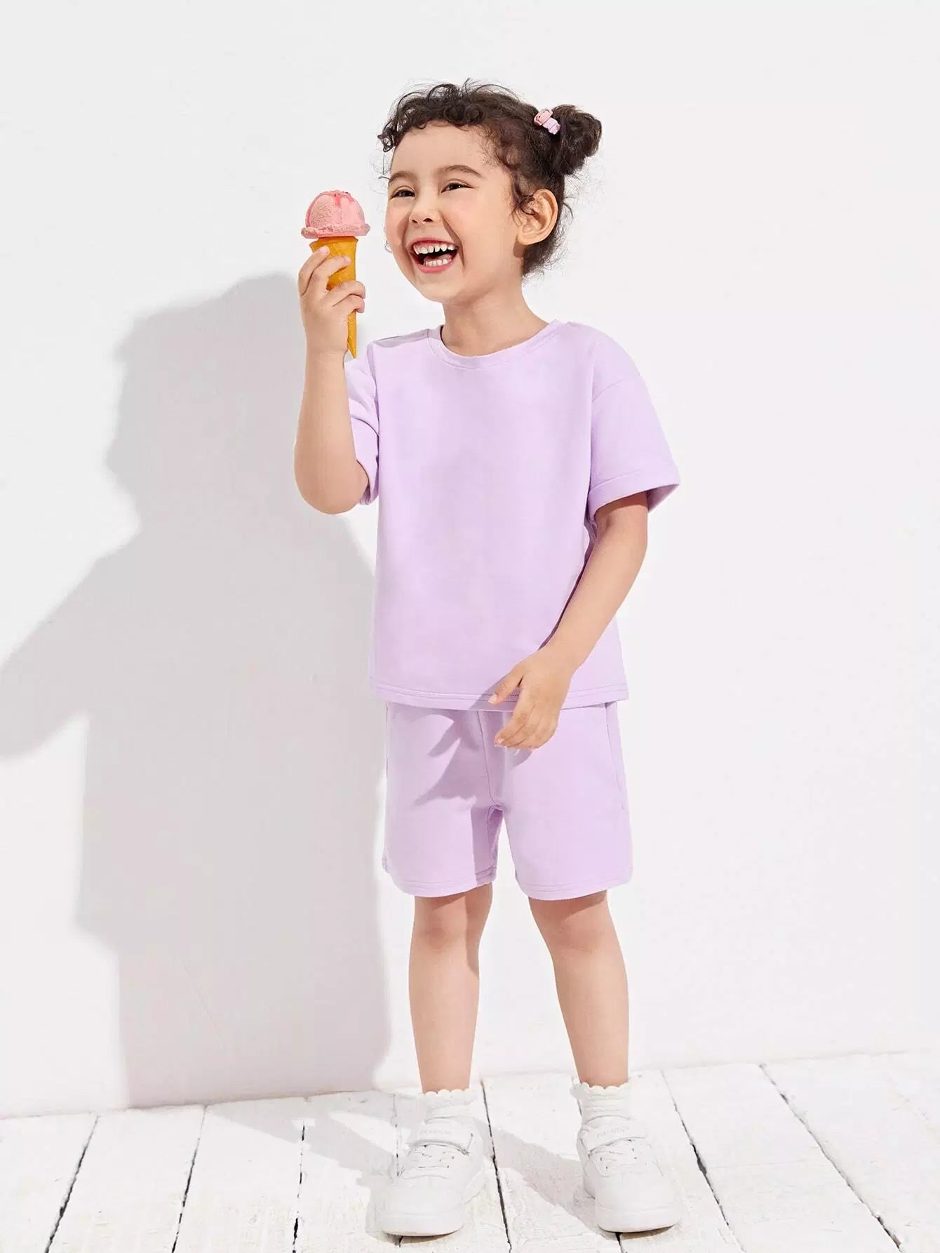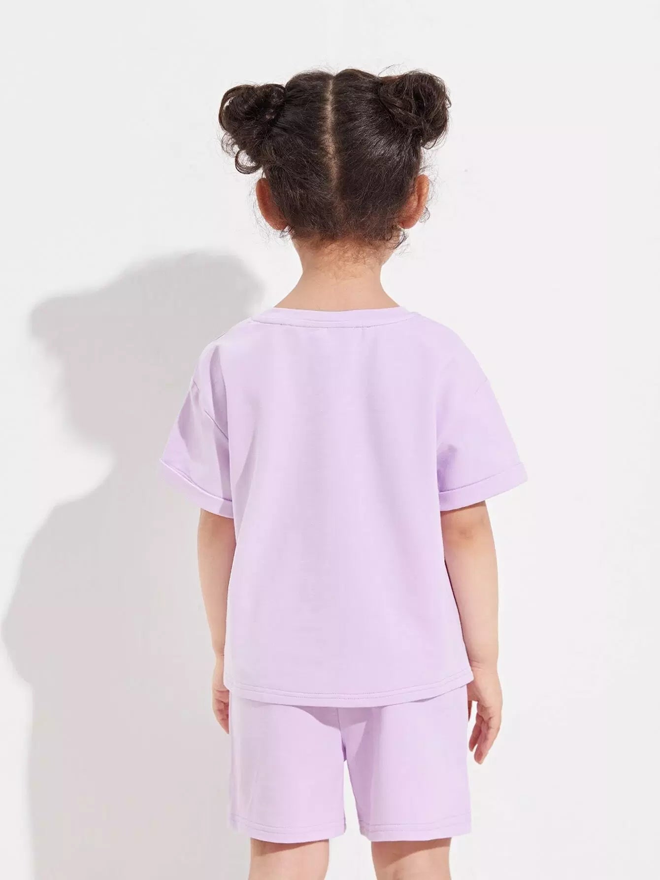 Toddler Girls Cotton Cuffed Sleeve Tee & Track Shorts Set