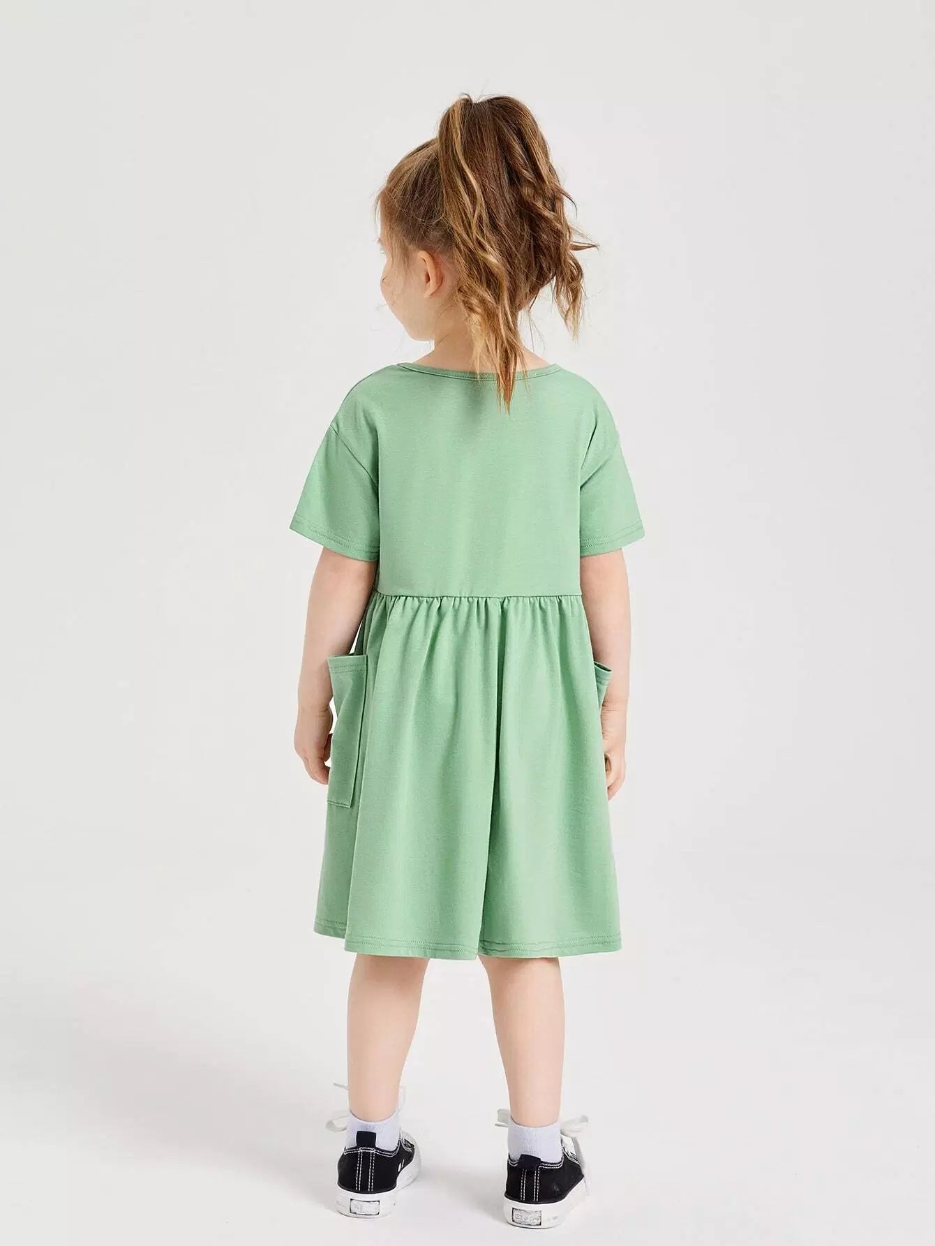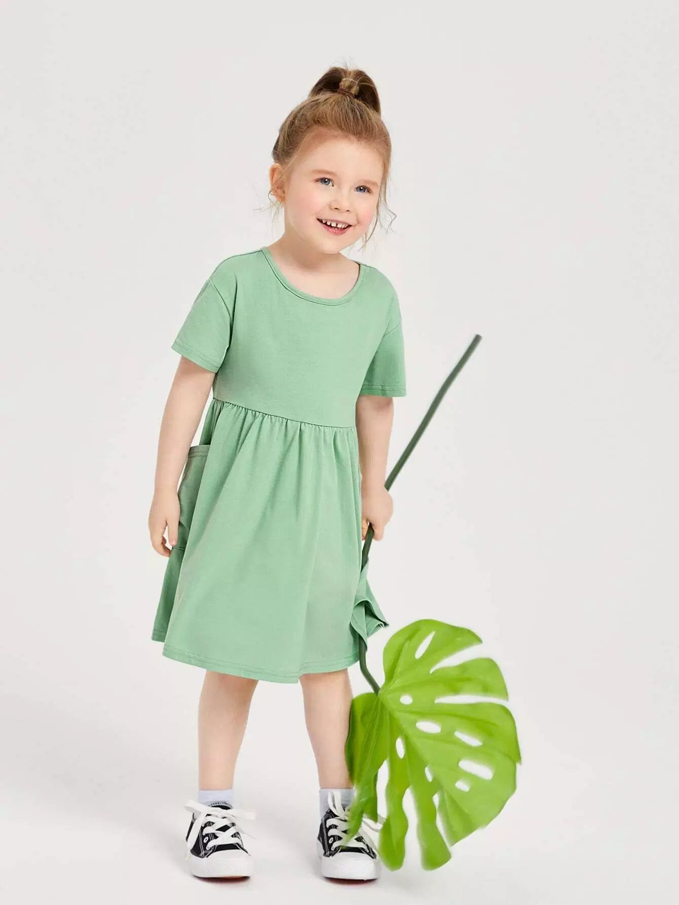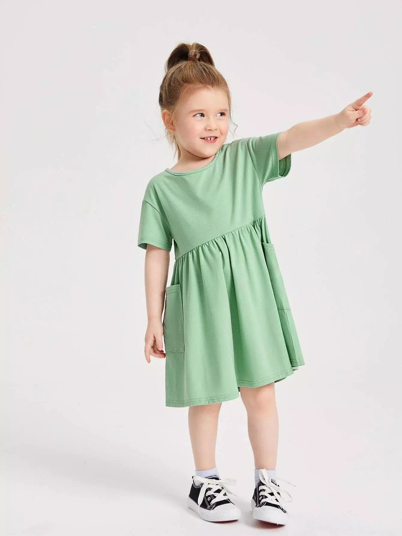 Toddler Girls Cotton Slant Pocket Smock Dress