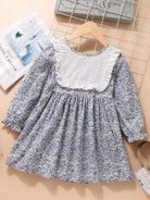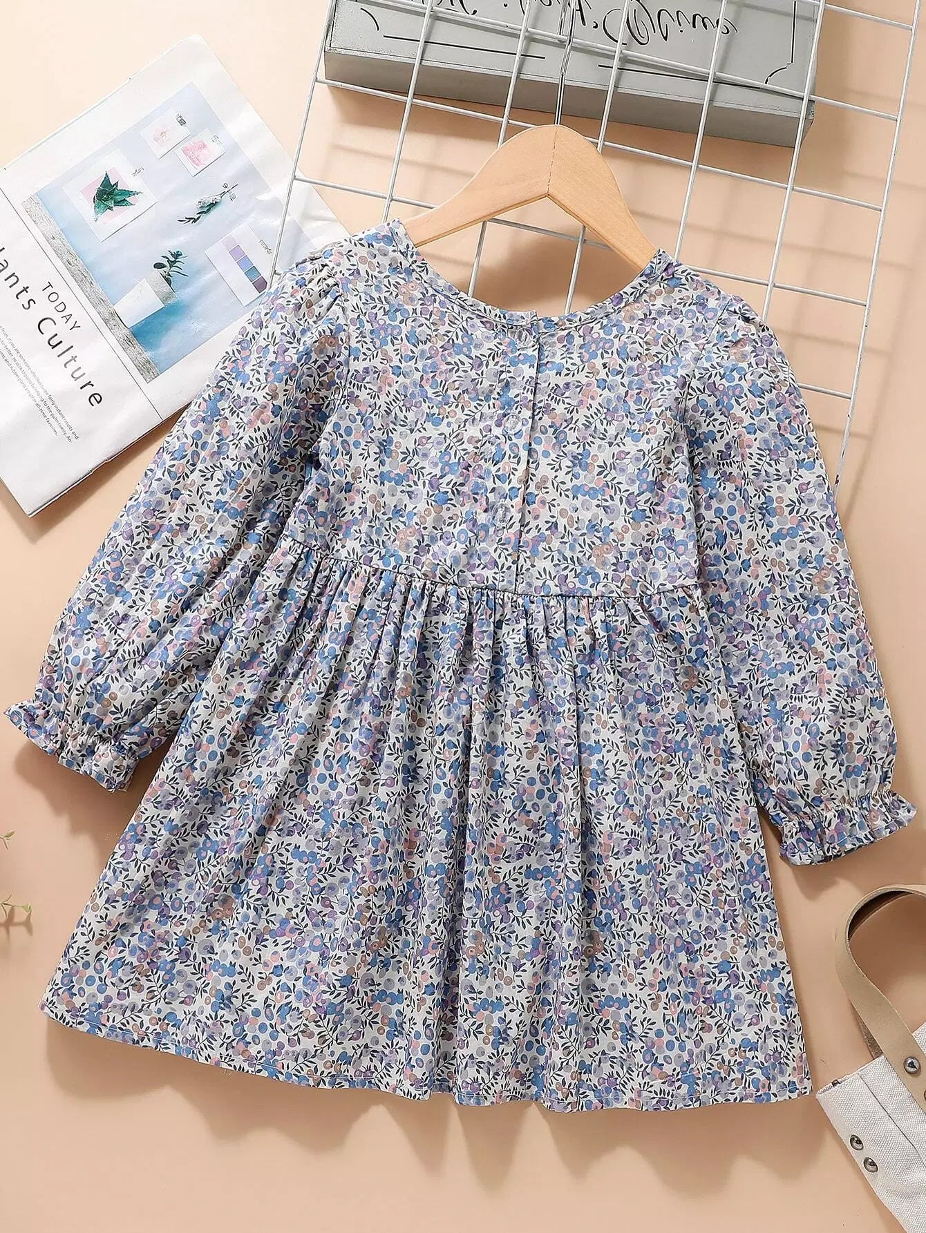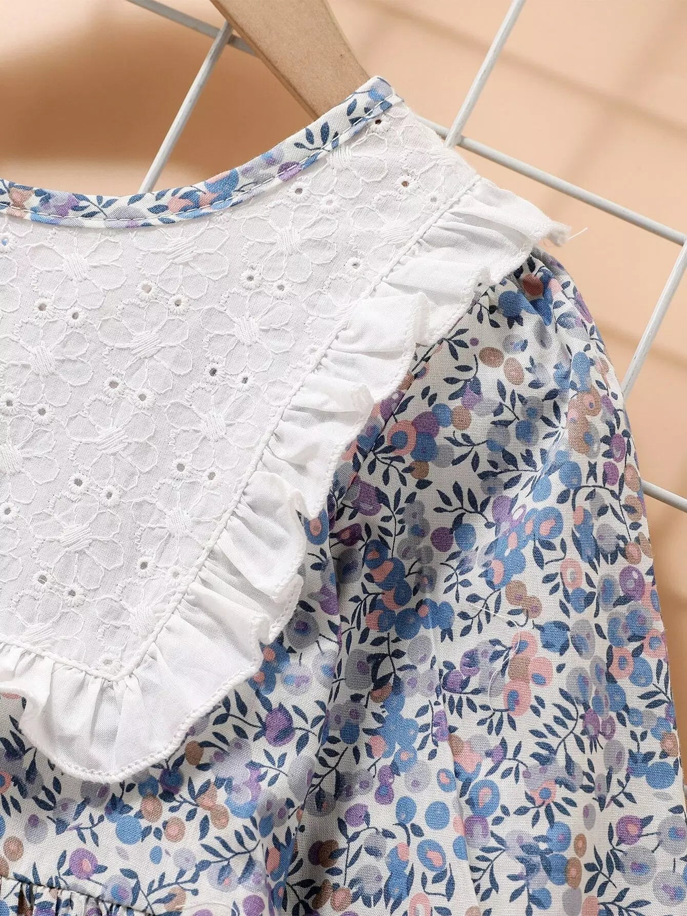 Toddler Girls Ditsy Floral Print Eyelet Embroidery Ruffle Trim Flounce Sleeve Dress