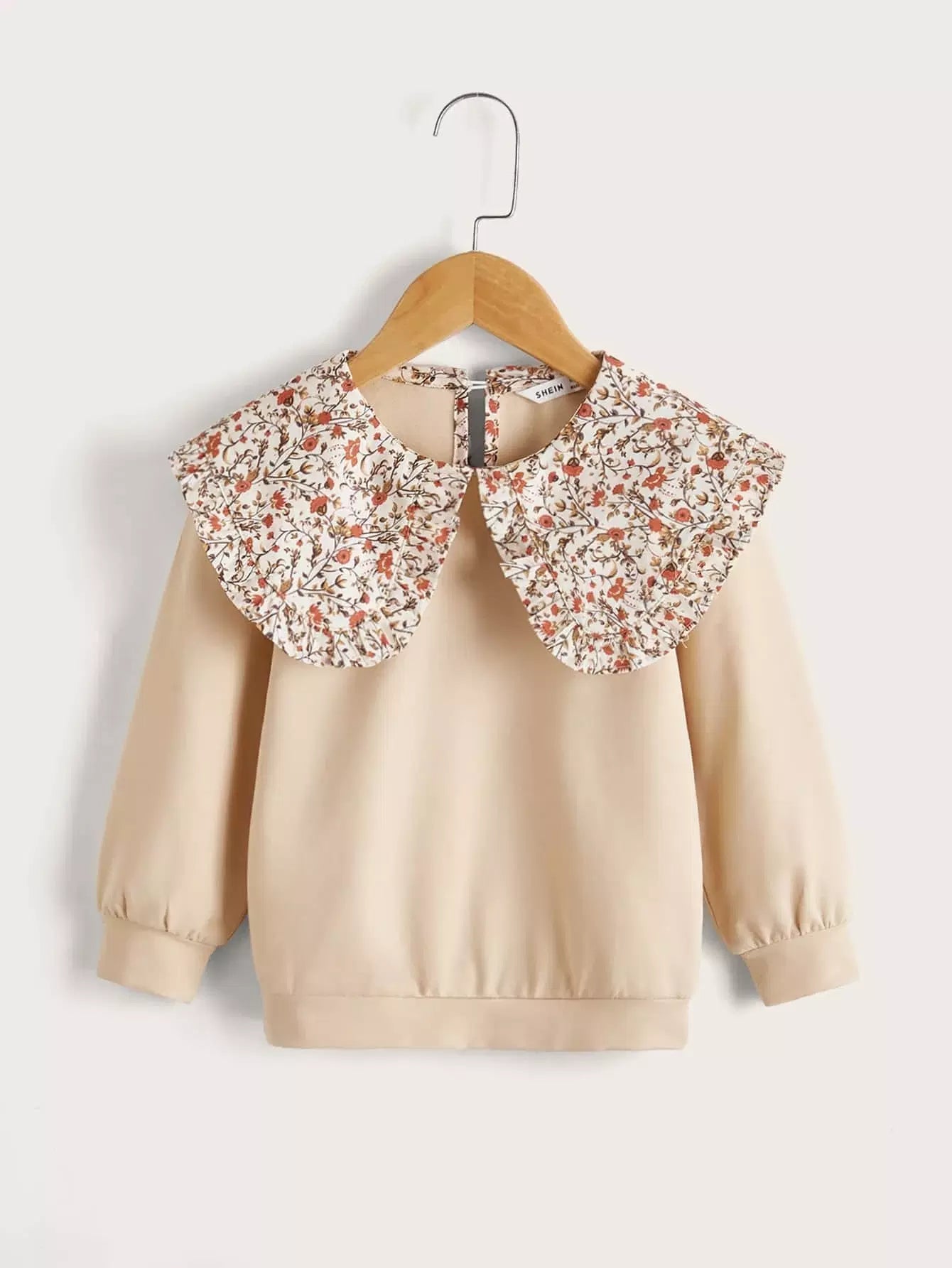 Toddler Girls Ditsy Floral Print Statement Collar Top