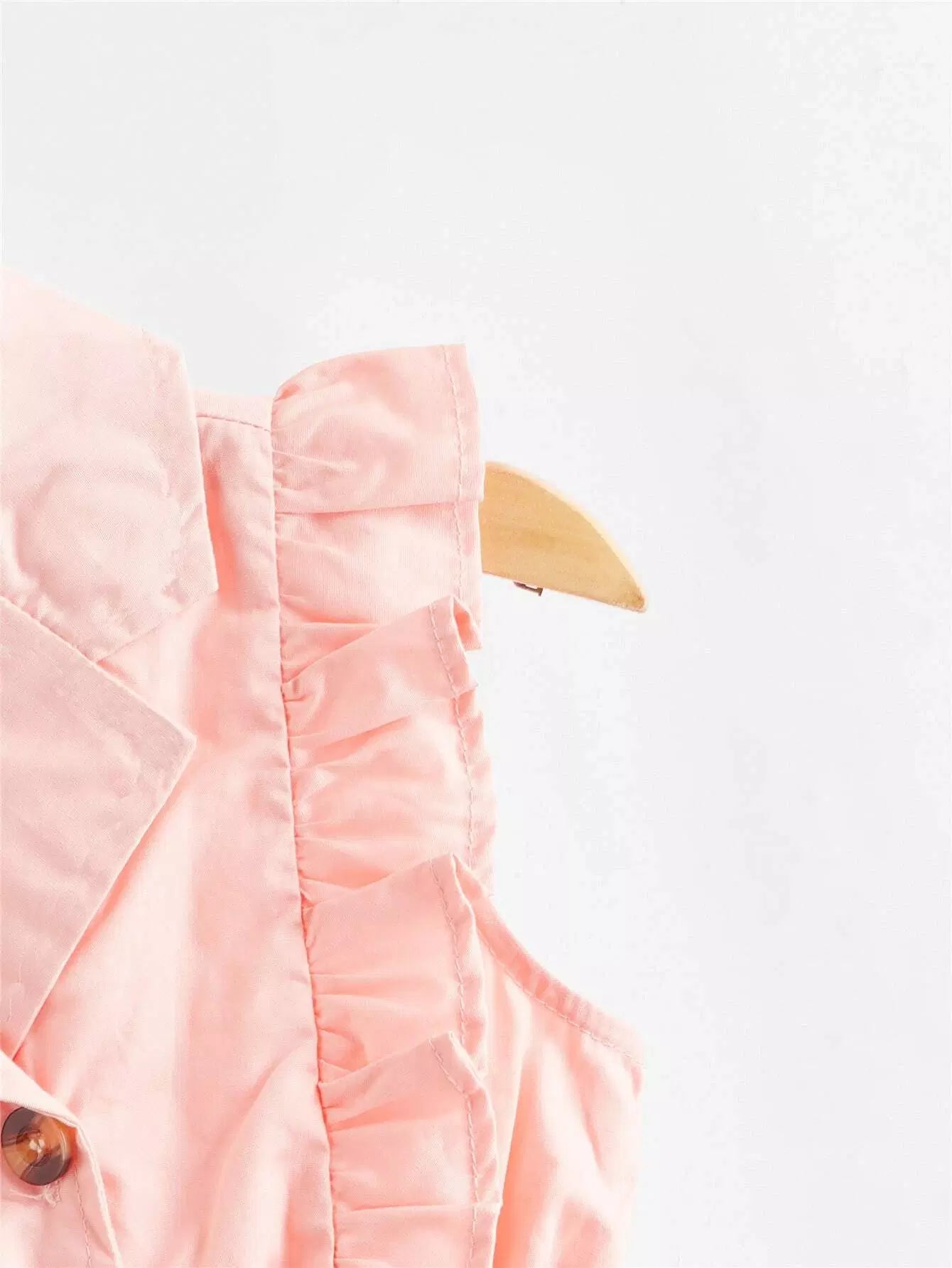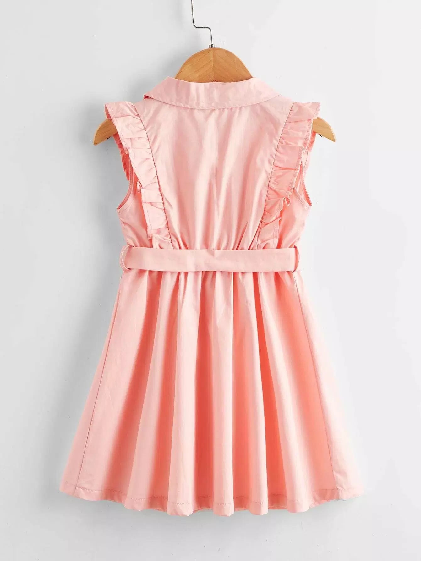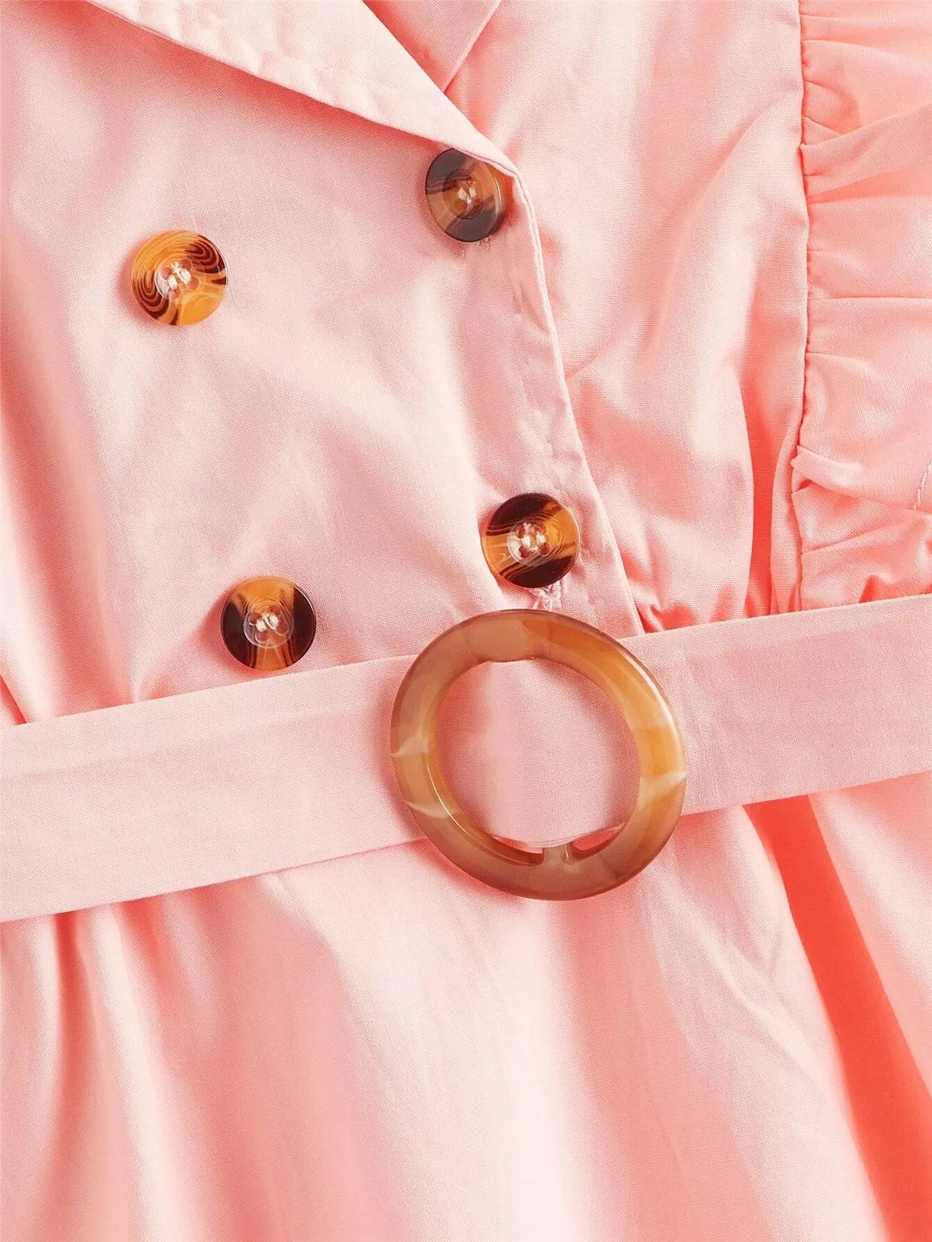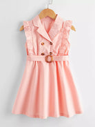 Toddler Girls Double Breasted Lapel Collar Ruffle Trim Dress Without Belt