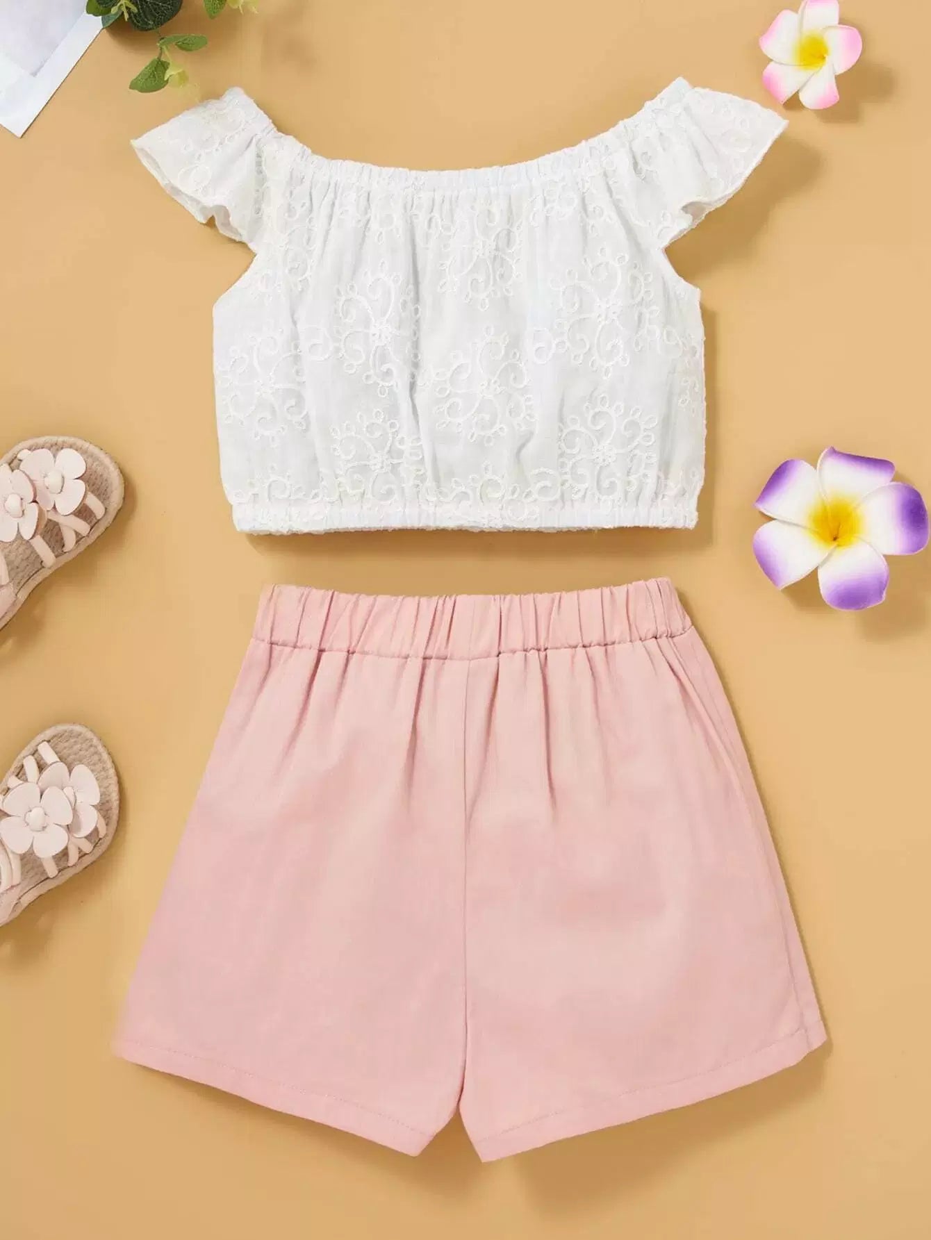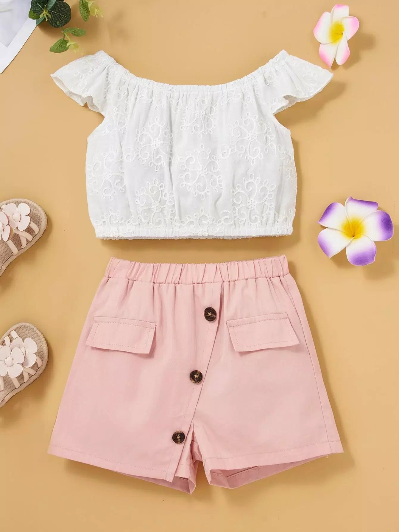 Toddler Girls Embroidered Top & Button Front Shorts