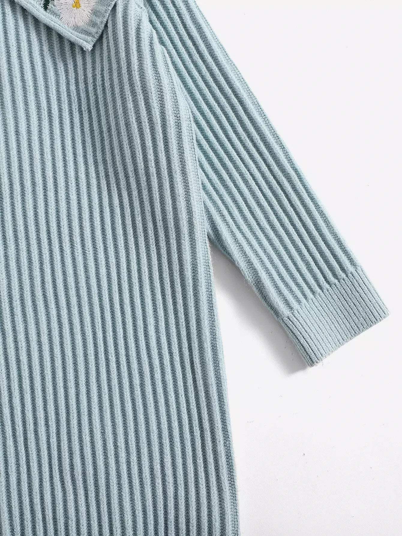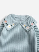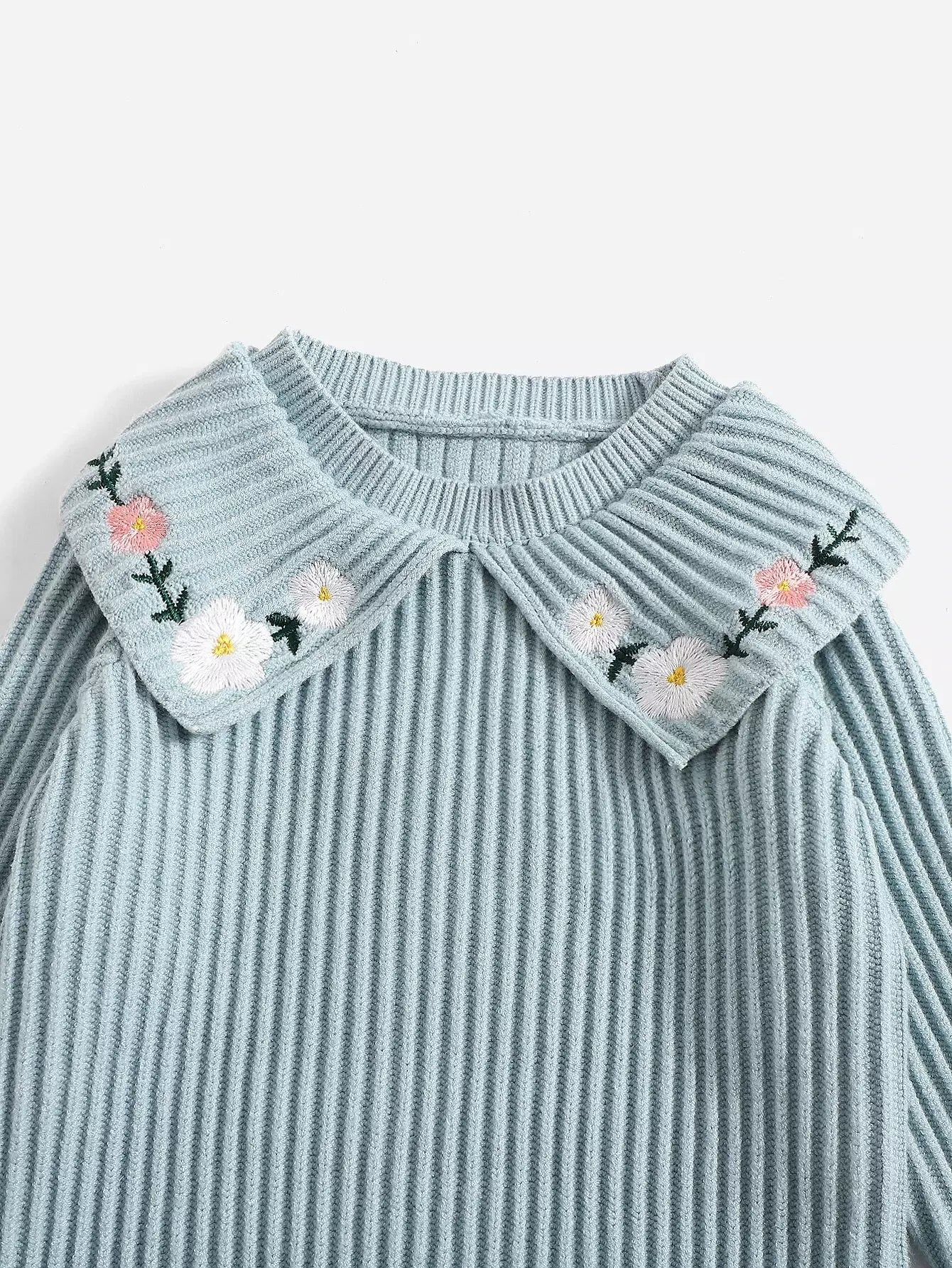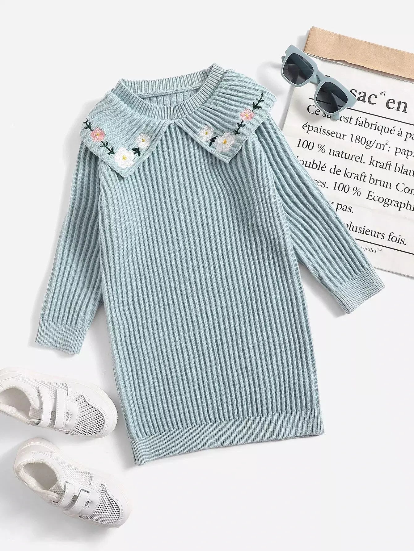 Toddler Girls Embroidery Floral Sailor Collar Sweater Dress