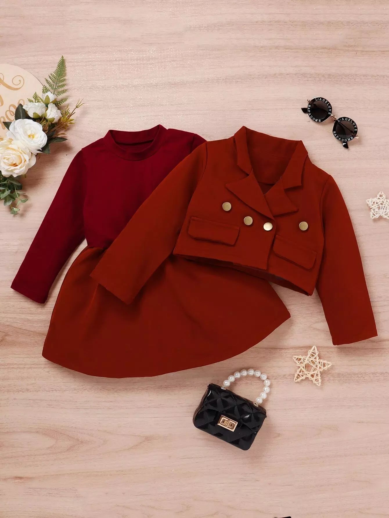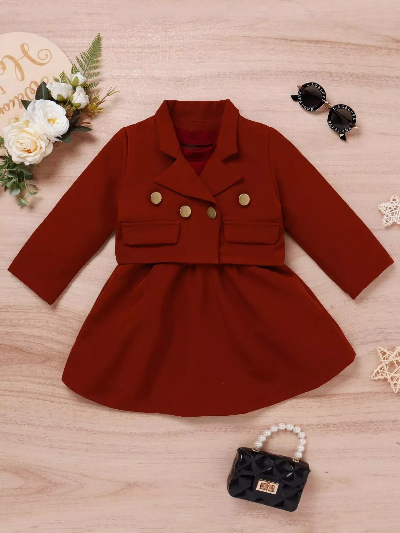 Toddler Girls Flap Detail Crop Blazer With Dress