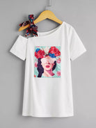 Toddler Girls Floral & Figure Graphic Asymmetrical Neck Tee Dress
