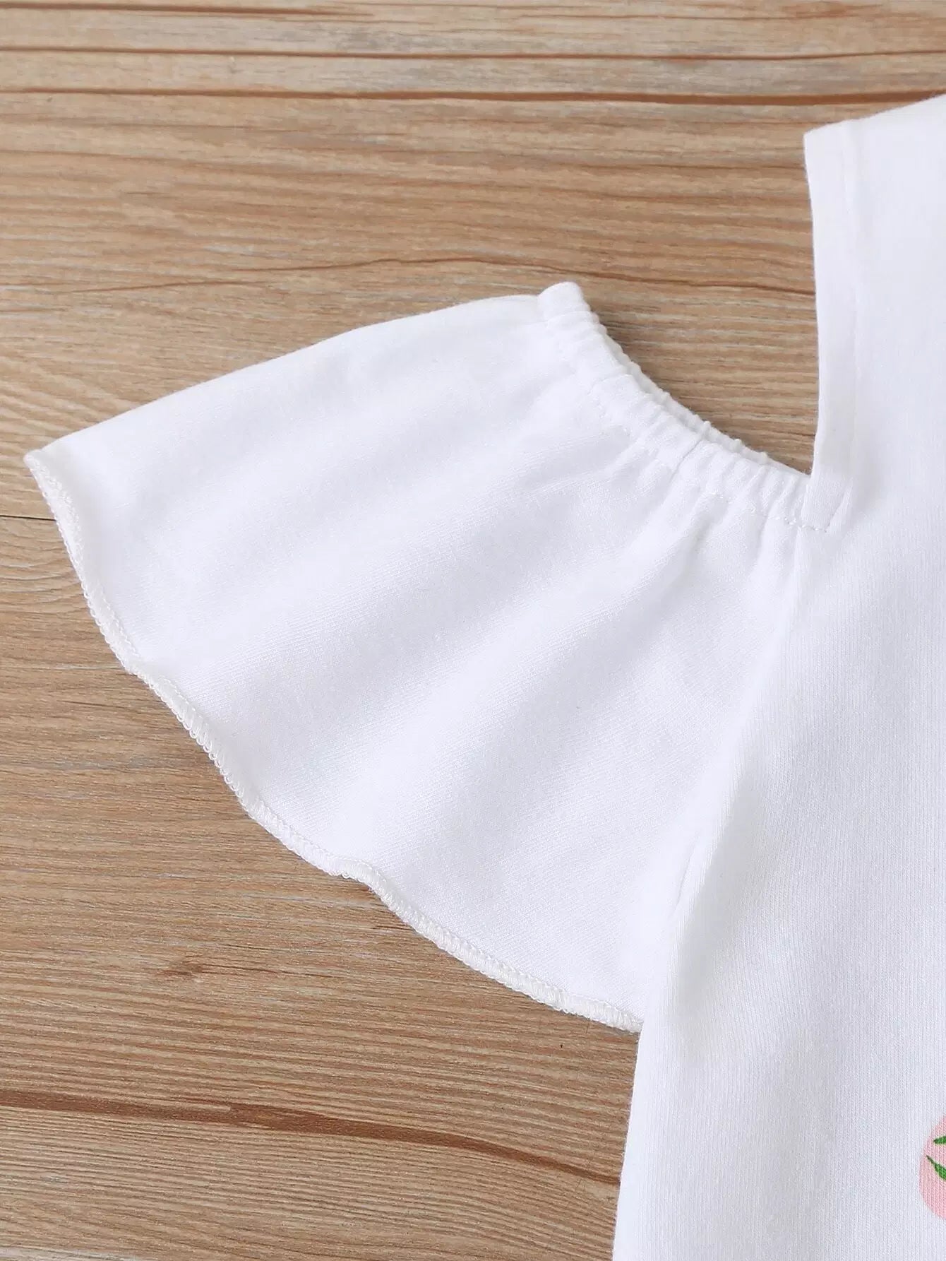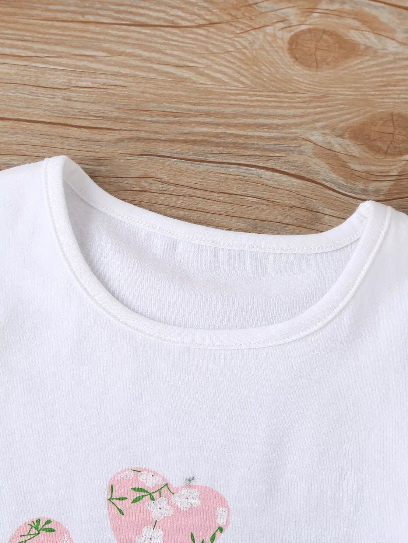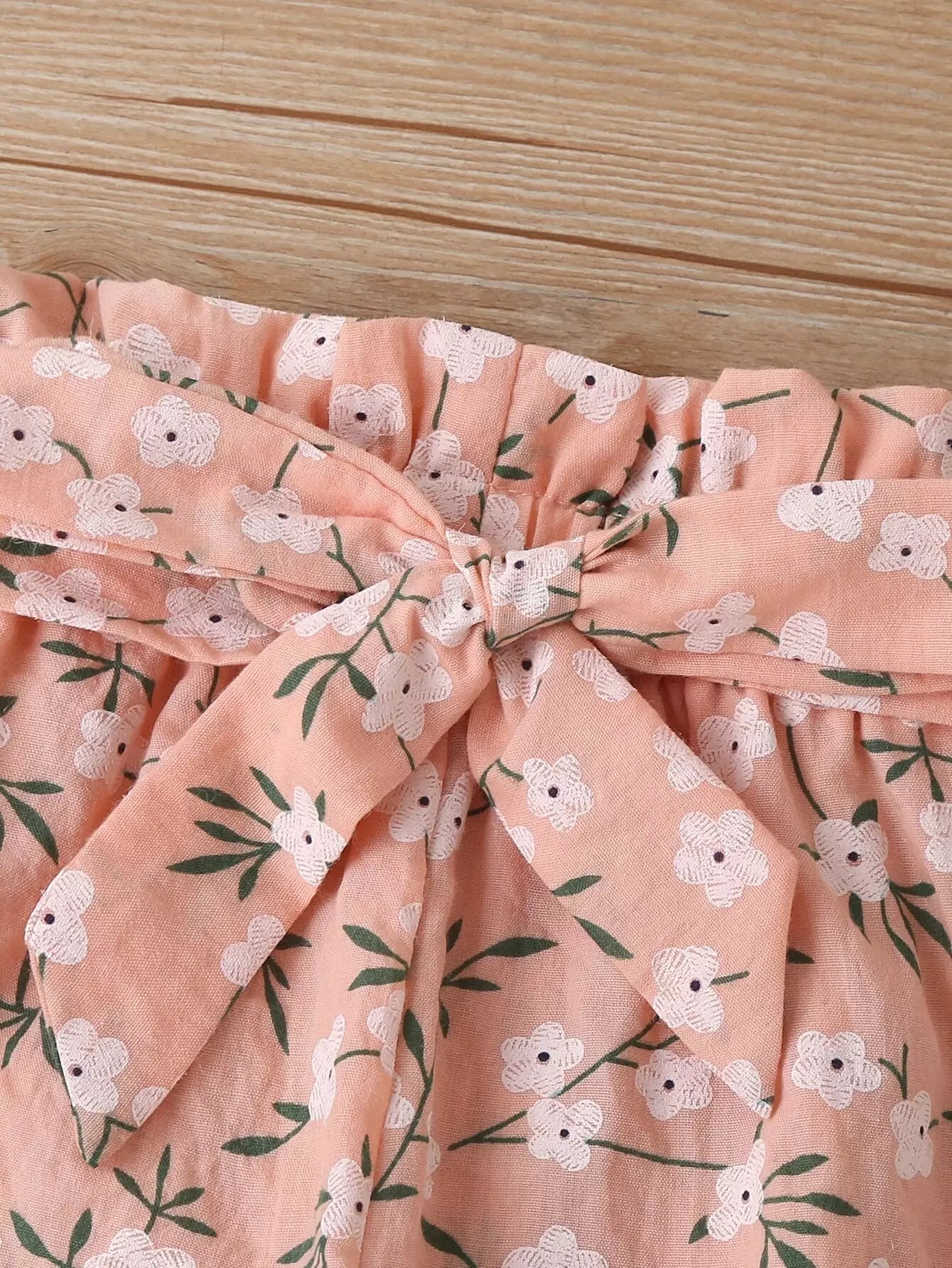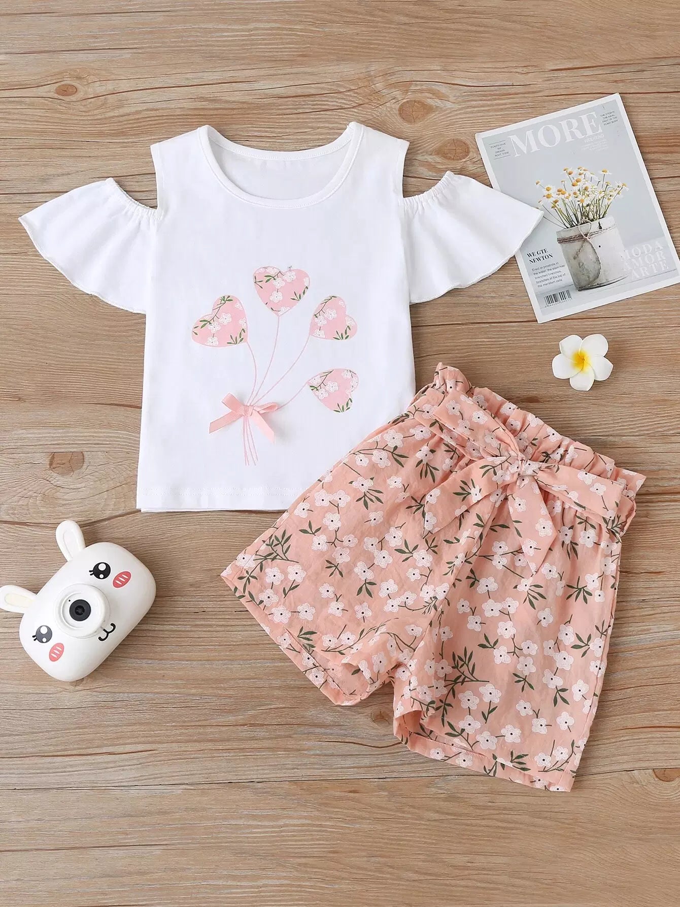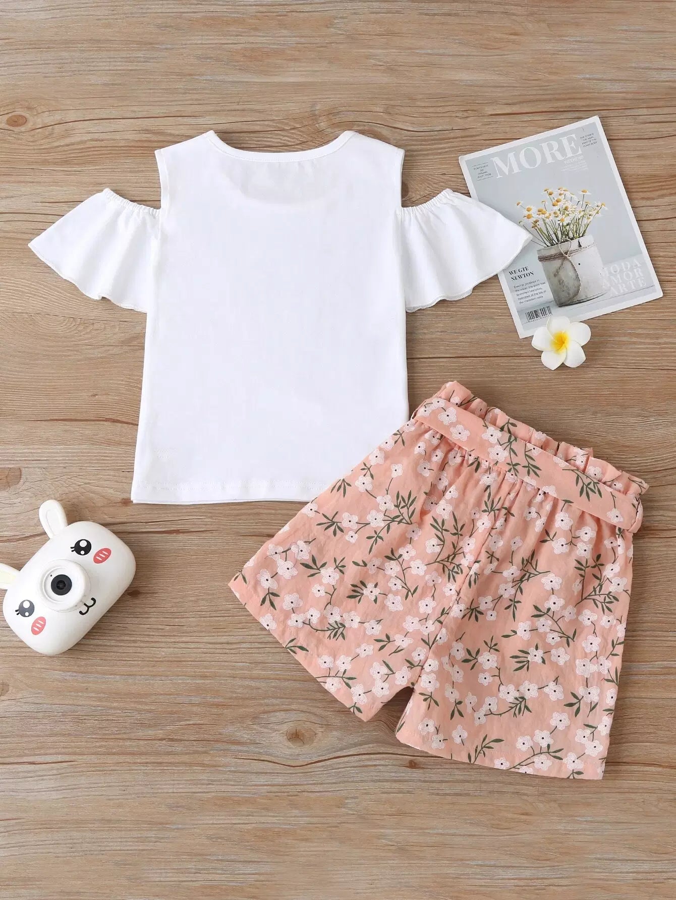 Toddler Girls Floral Print Cold Shoulder Bow Detail Tee & Shorts Without Belt