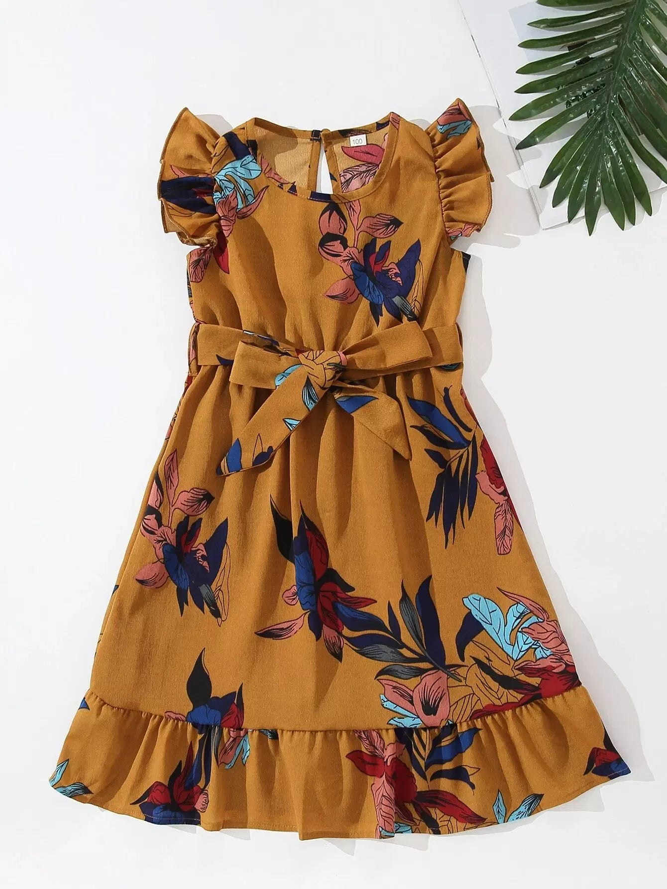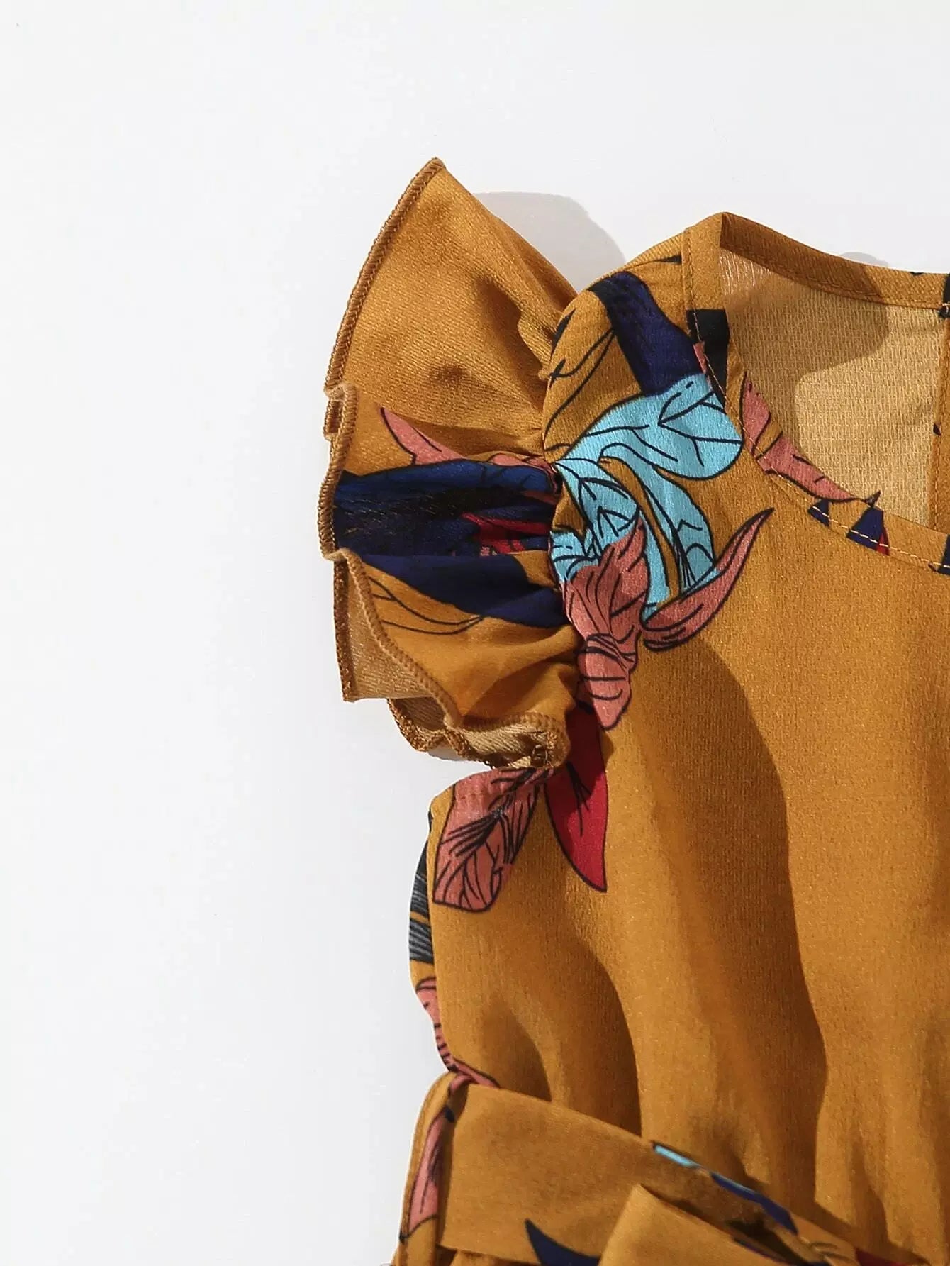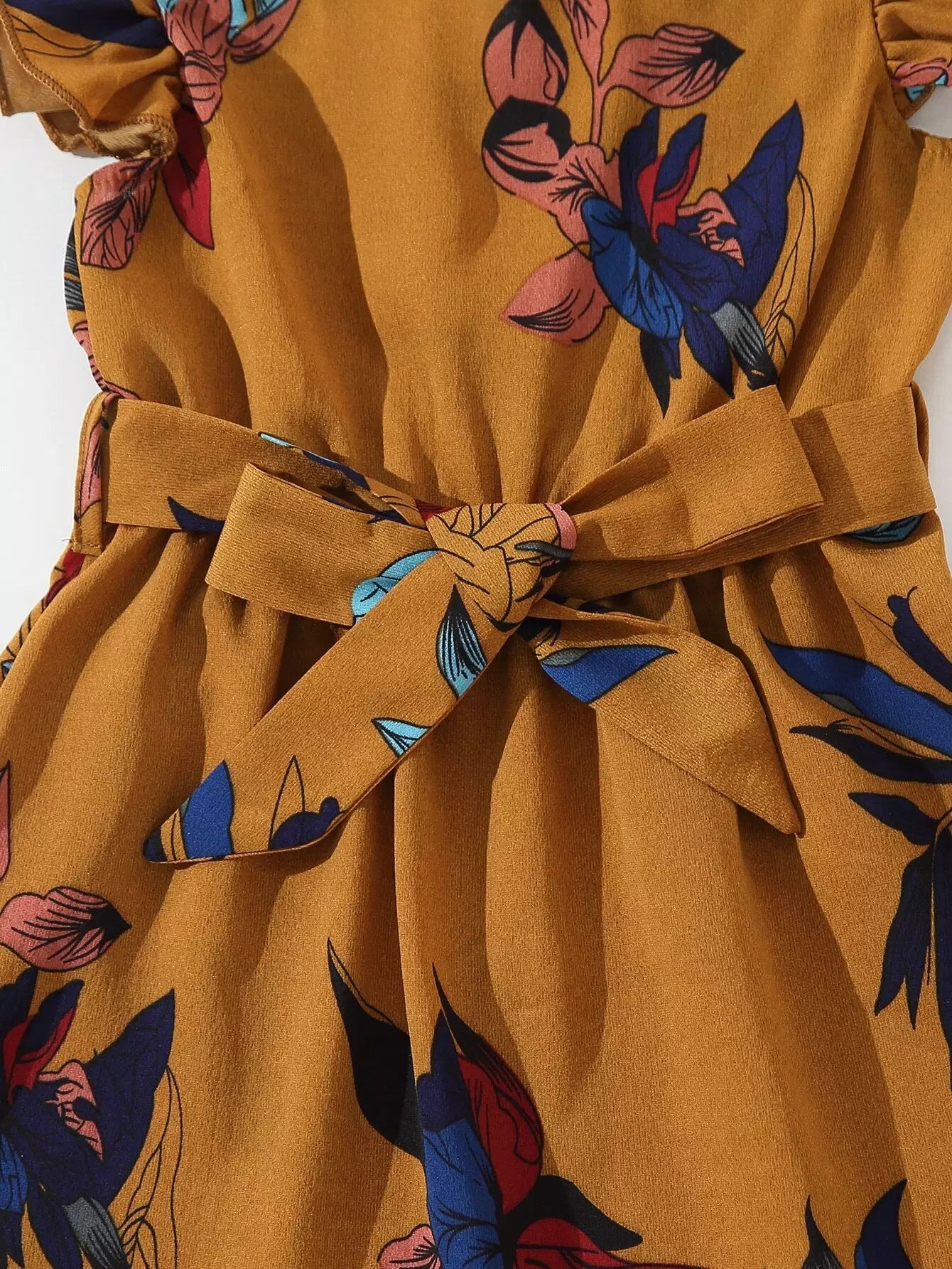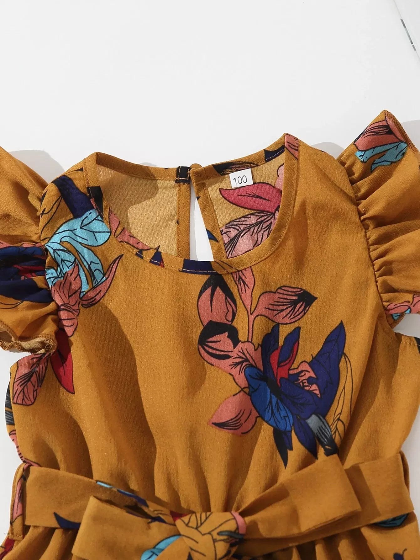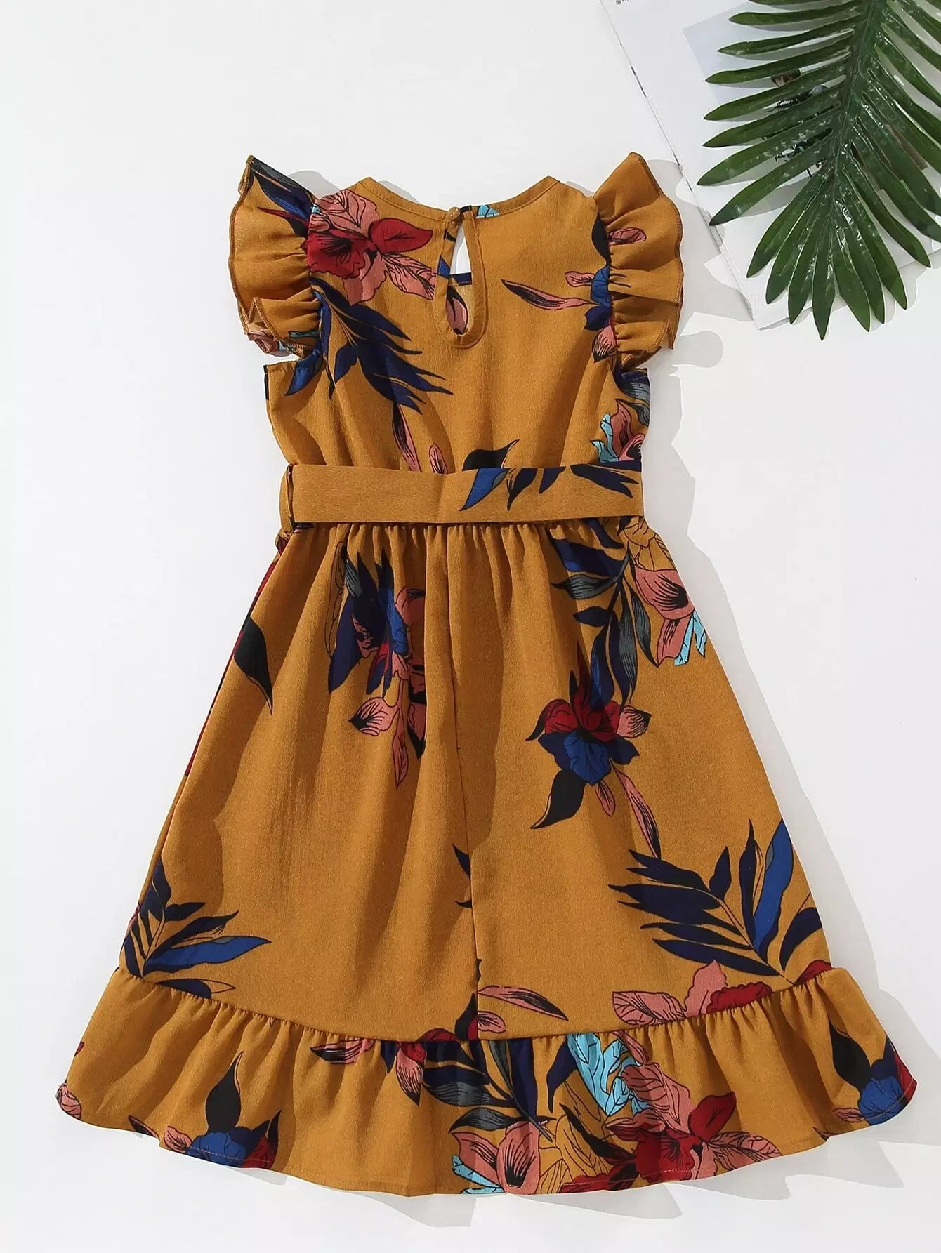 Toddler Girls Floral Print Ruffle Trim Dress Without Belt
