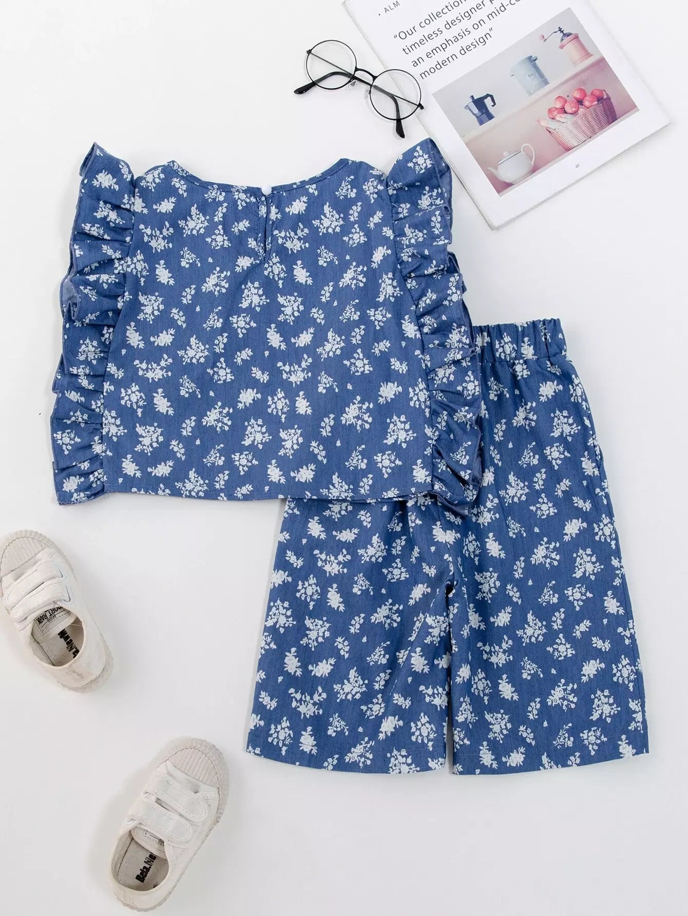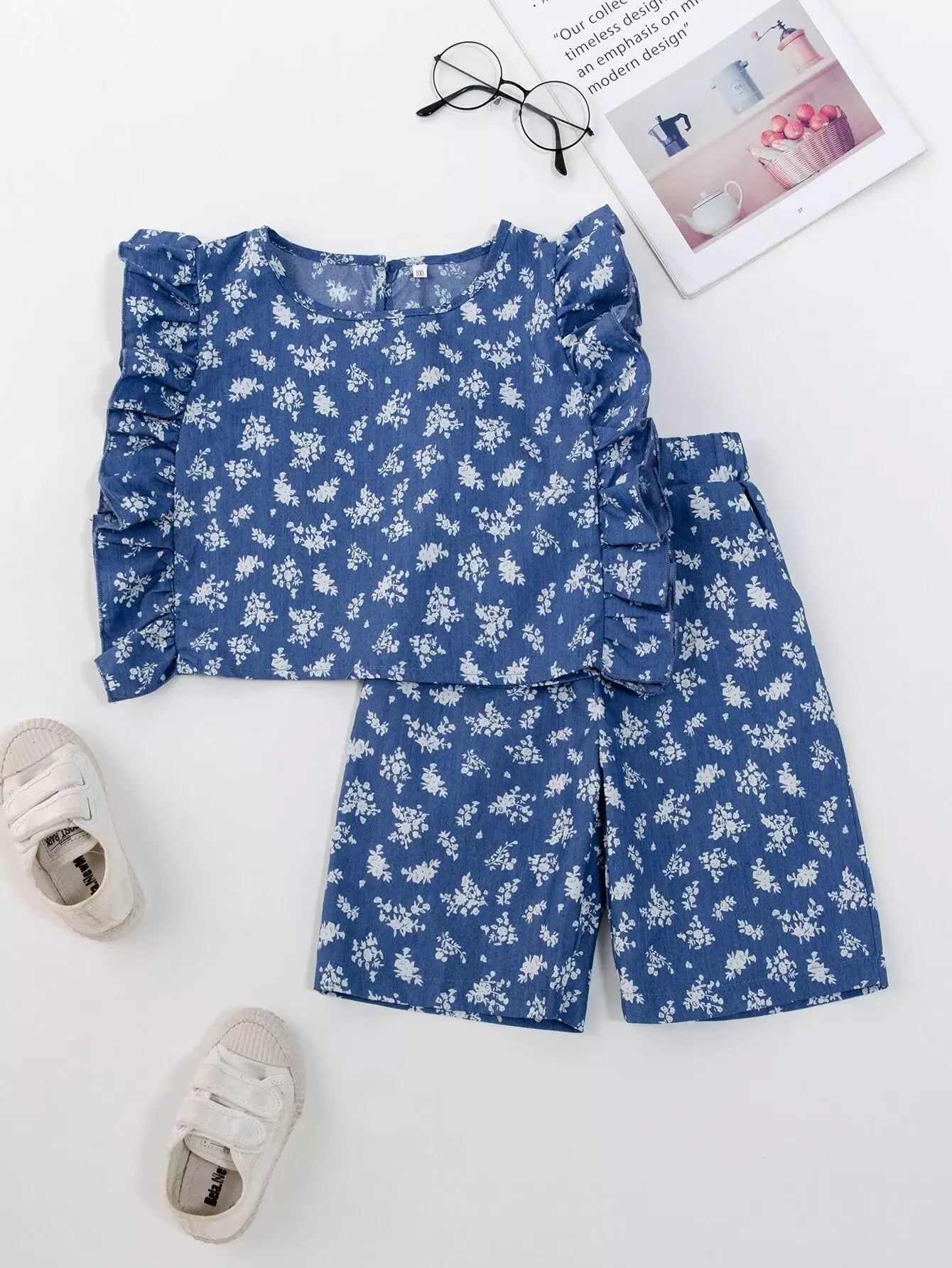 Toddler Girls Floral Print Ruffle Trim Blouse & Shorts