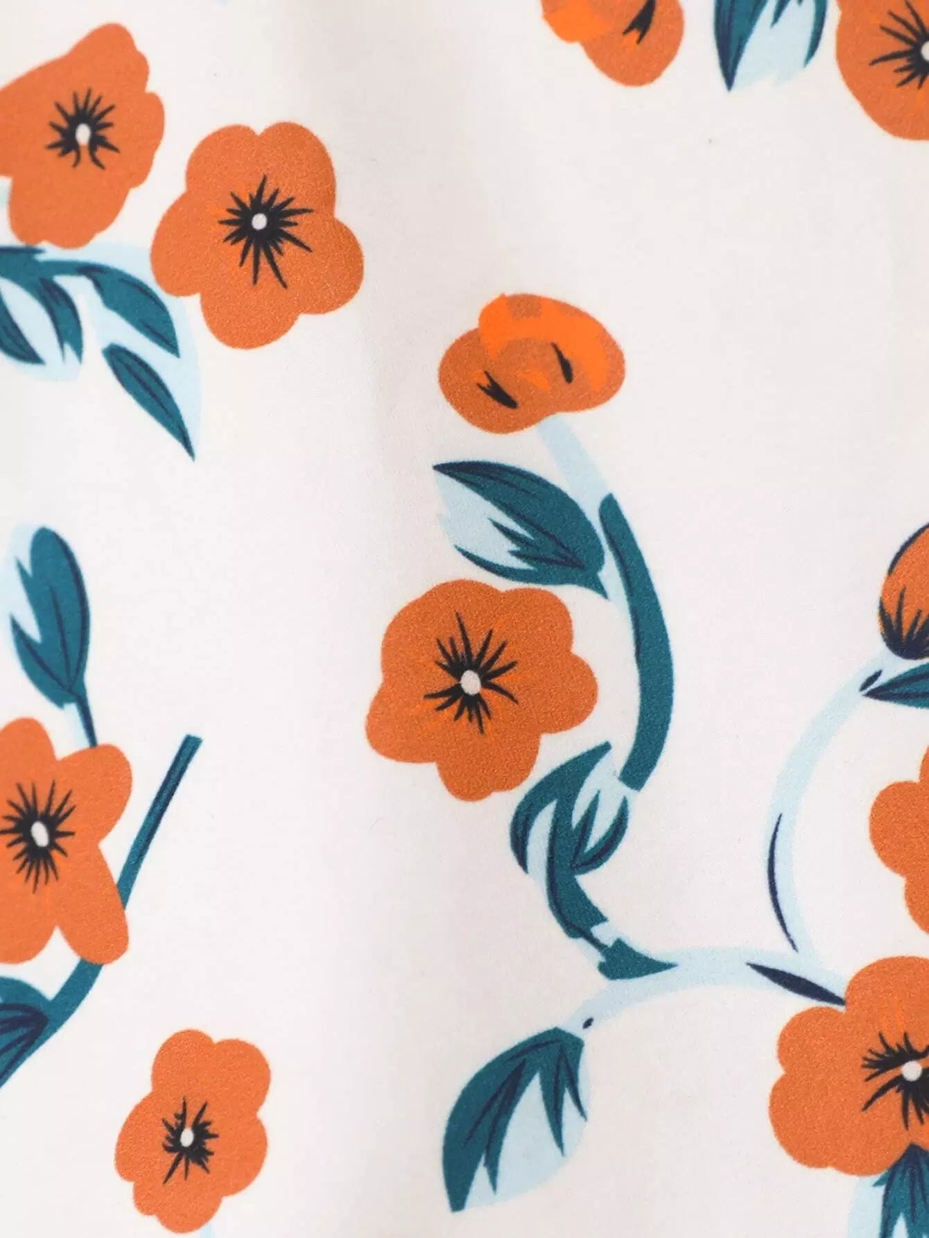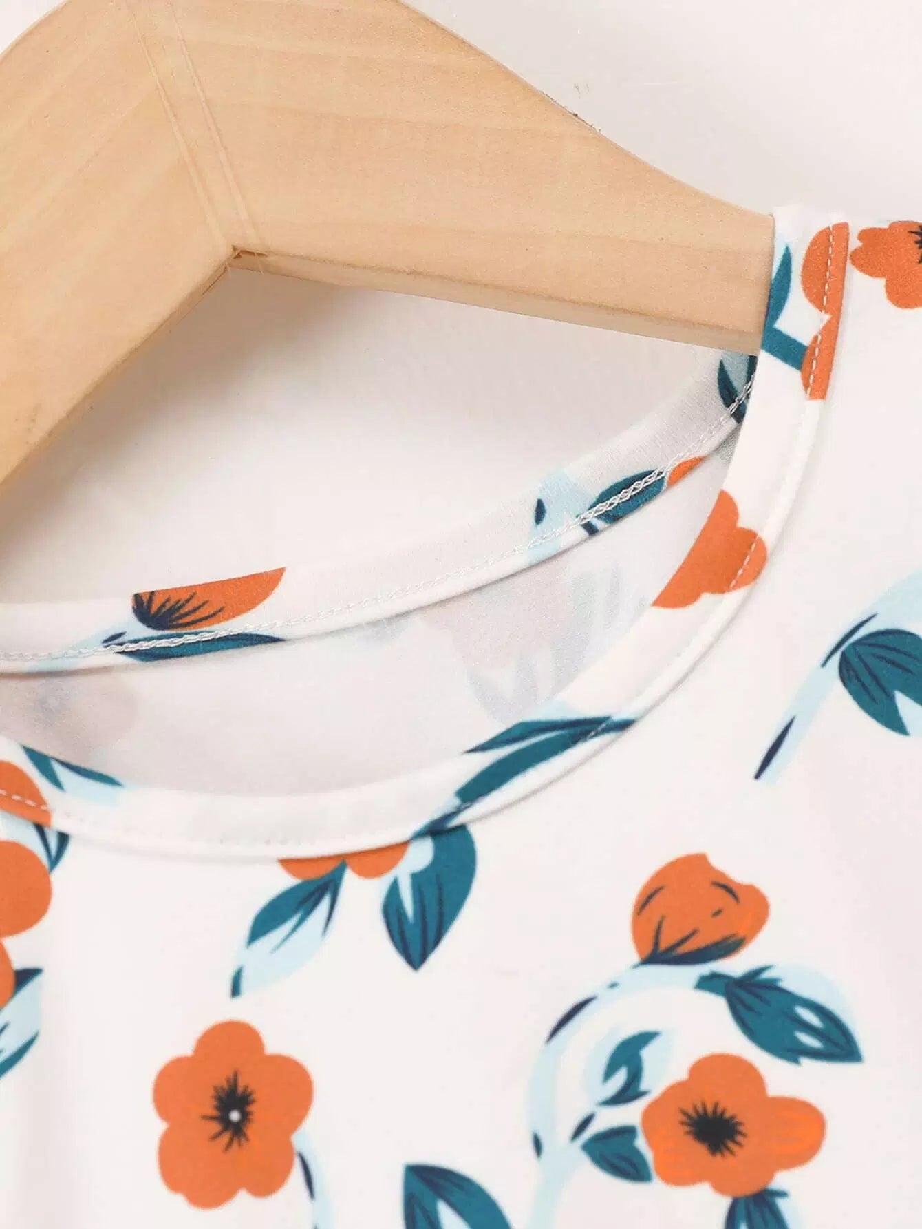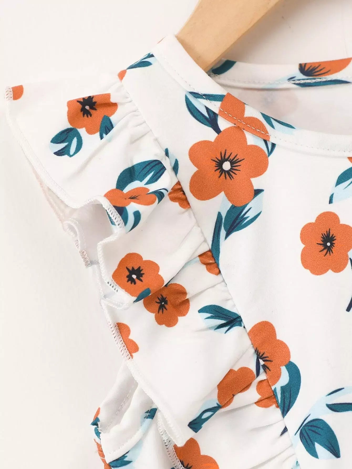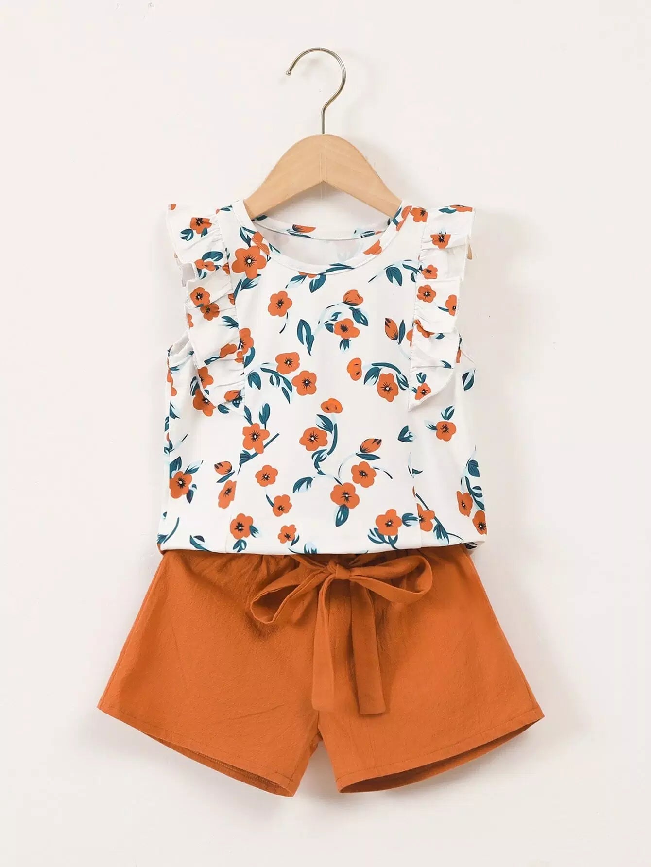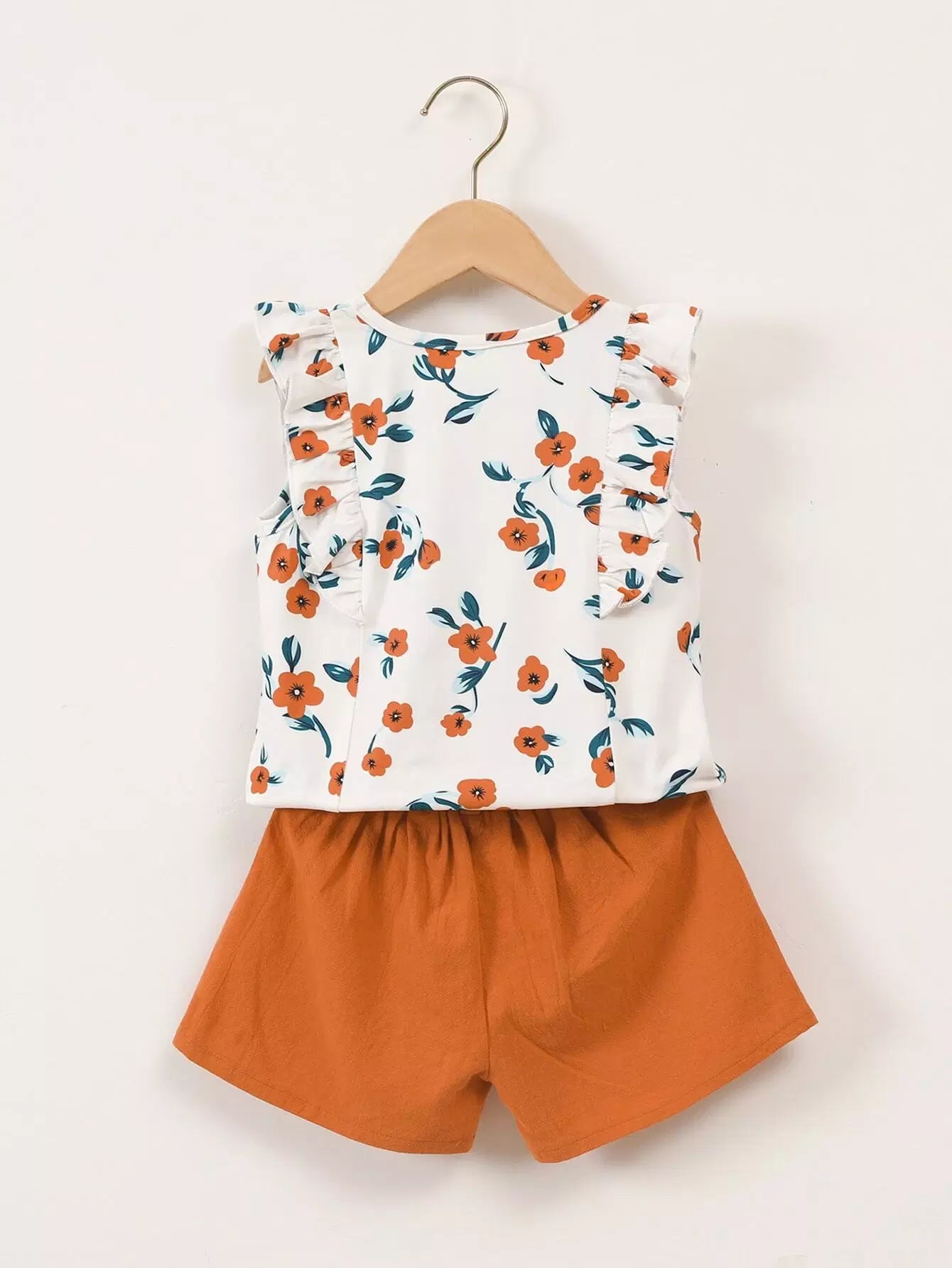 Toddler Girls Floral Print Ruffle Trim Tee & Shorts Without Belt