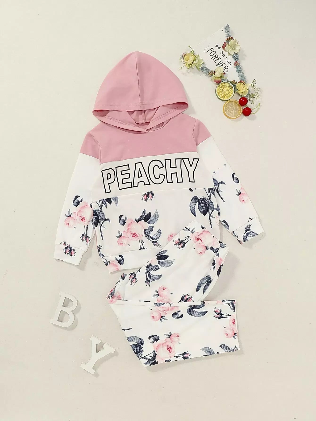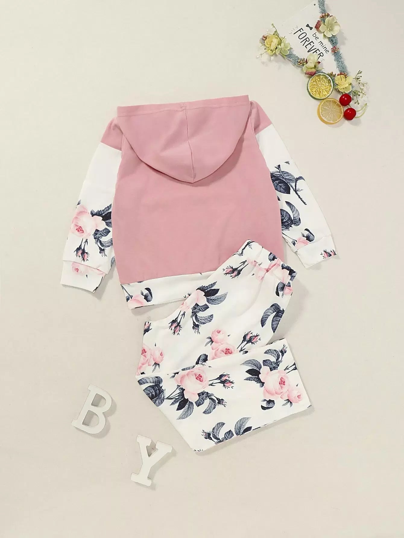 Toddler Girls Floral Print Spliced Hoodie With Leggings