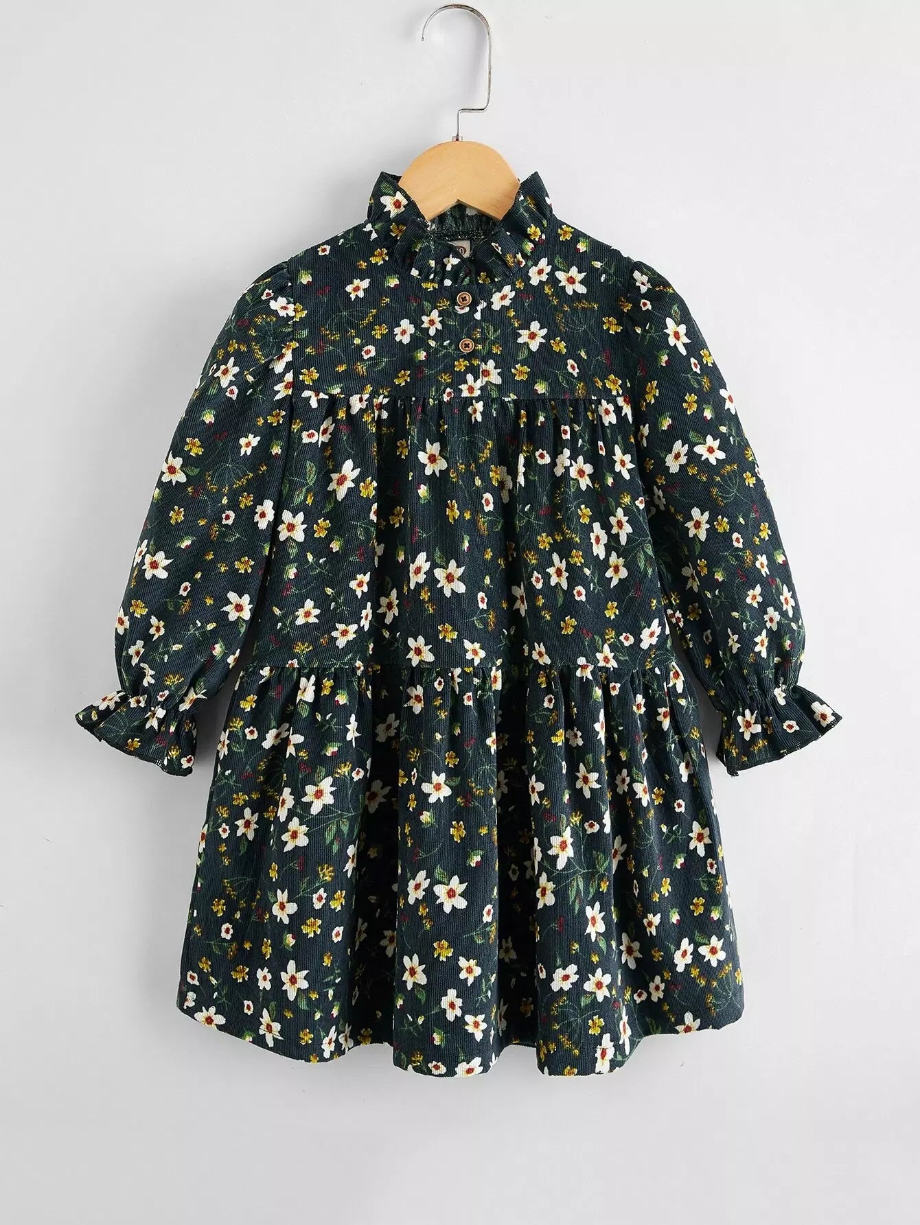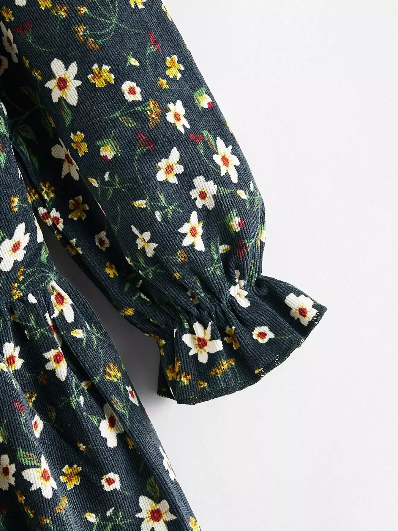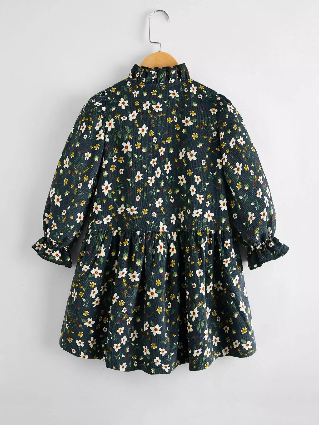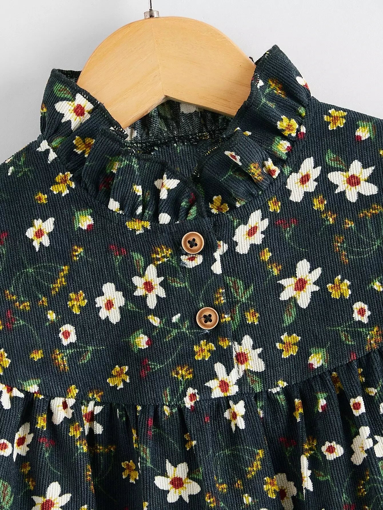 Toddler Girls Frill Neck Ditsy Floral Corduroy Dress