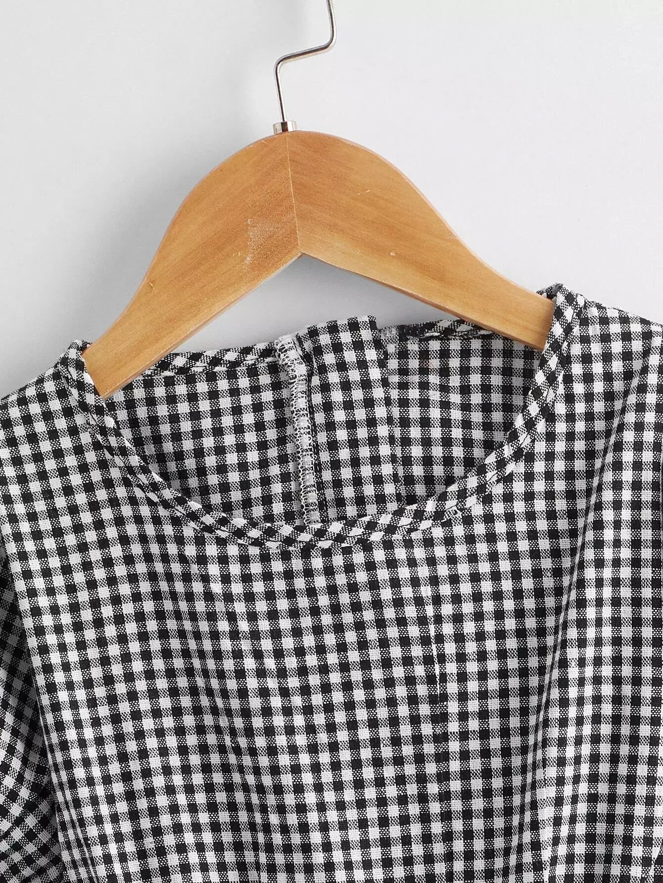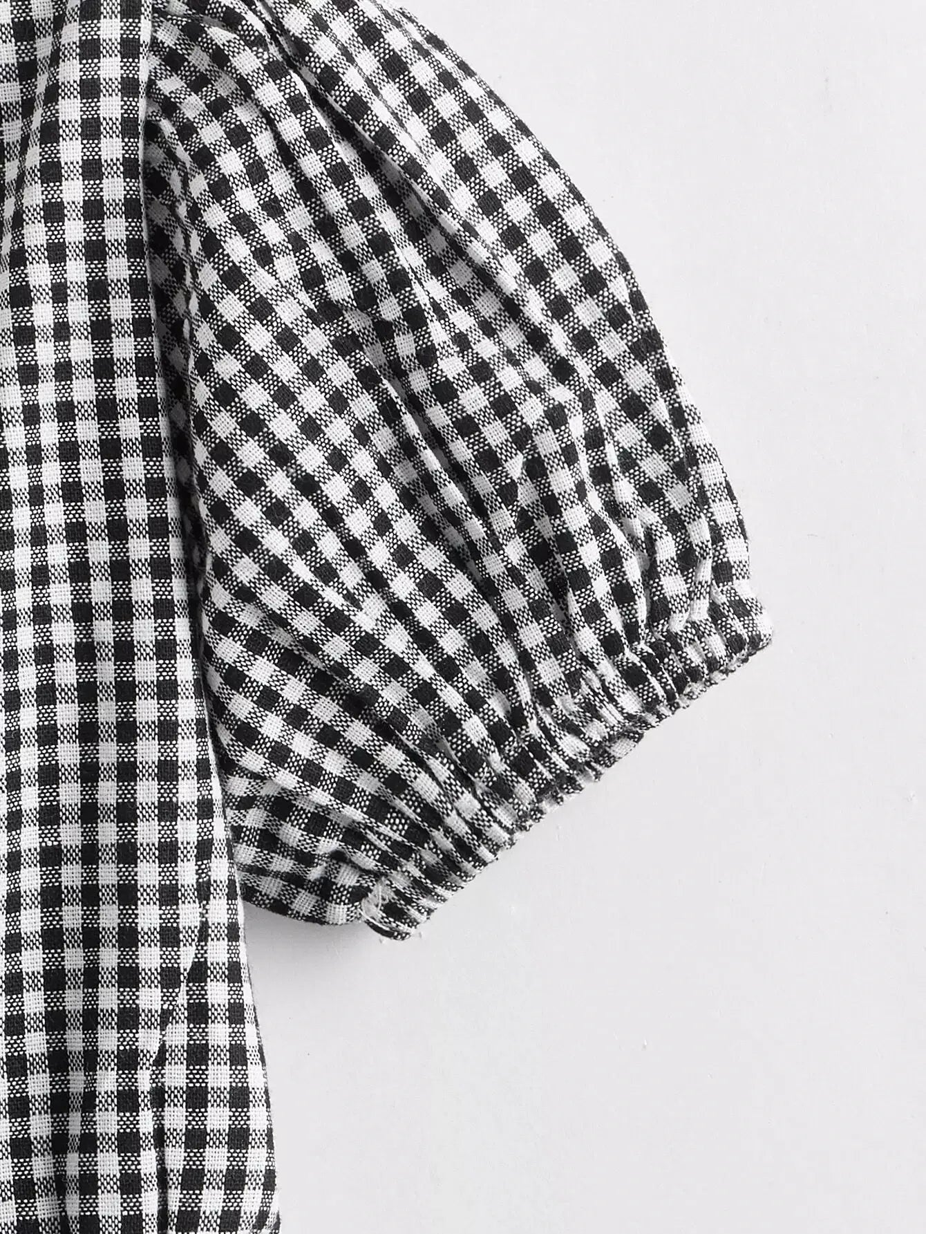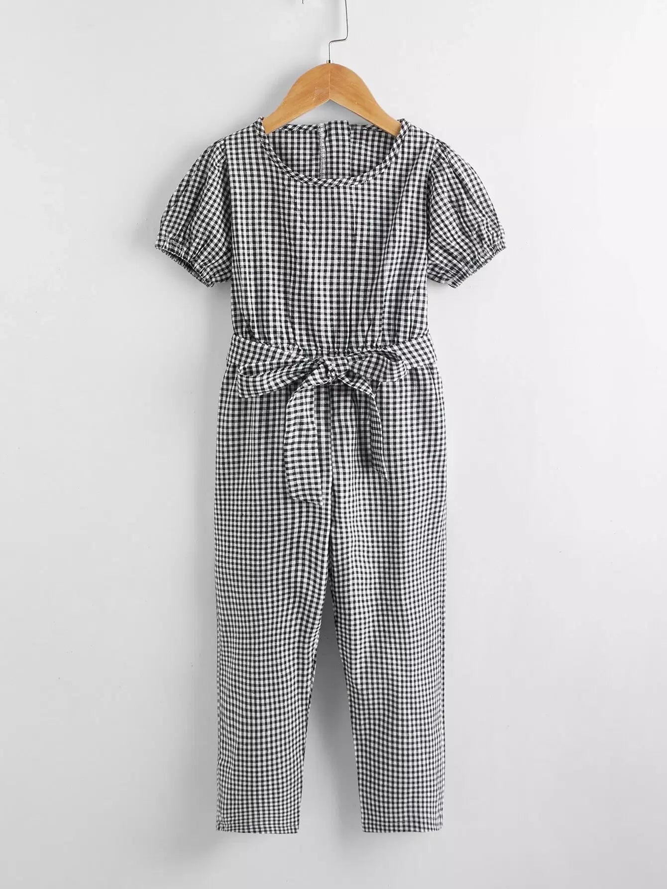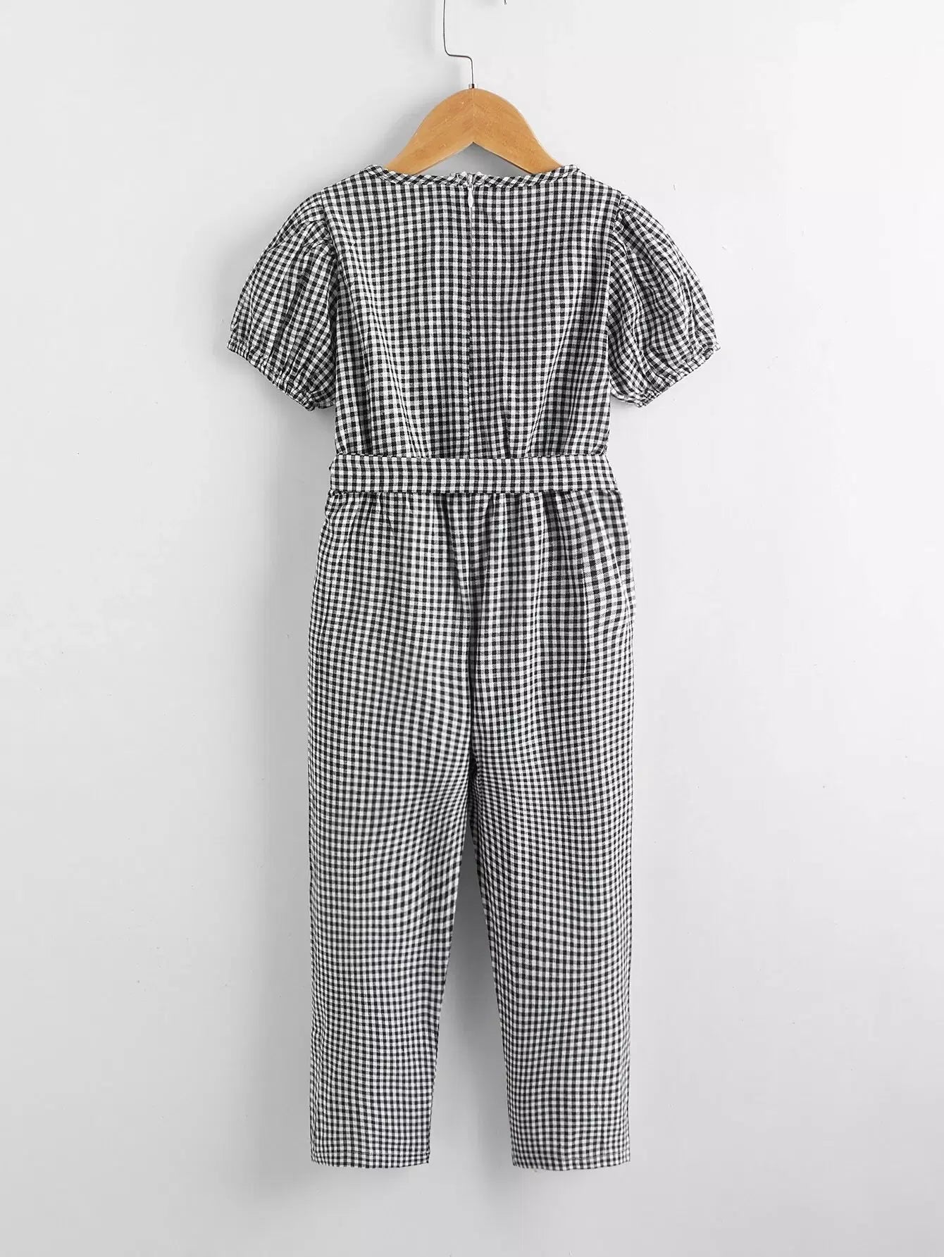 Toddler Girls Gingham Puff Sleeve Jumpsuit Without Belt
