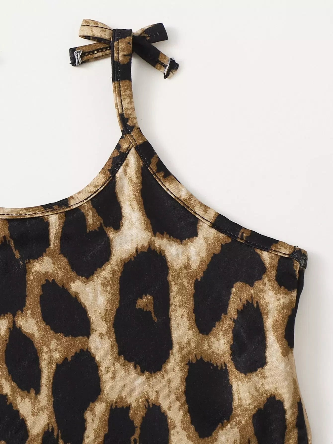 Toddler Girls Graphic Print Crop Cami Top With Mesh Overlay Skirt