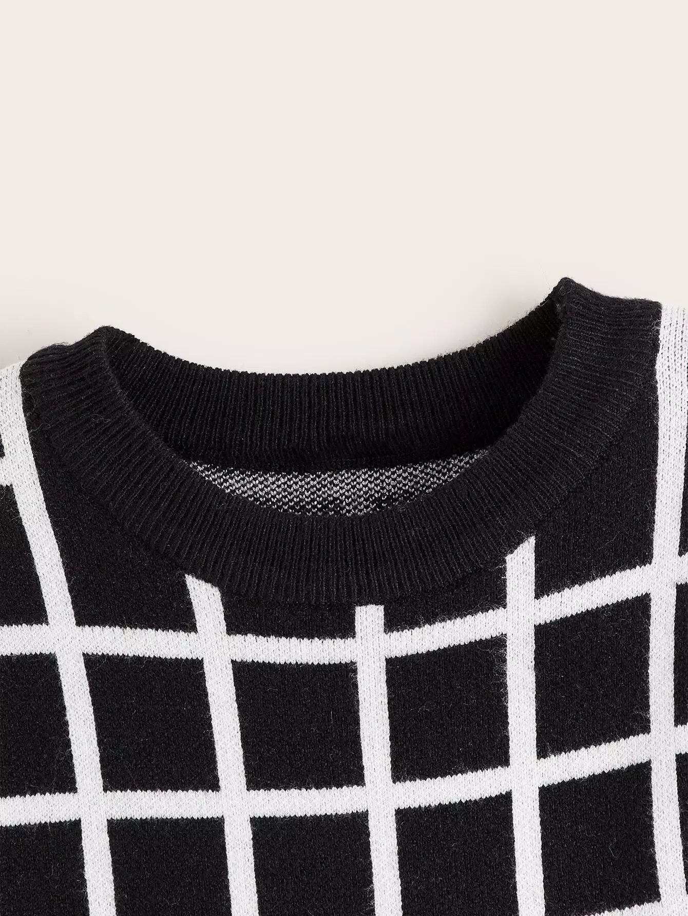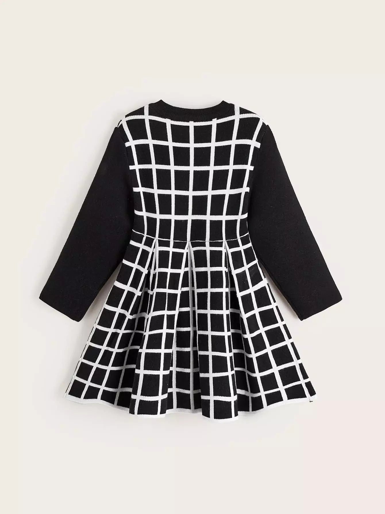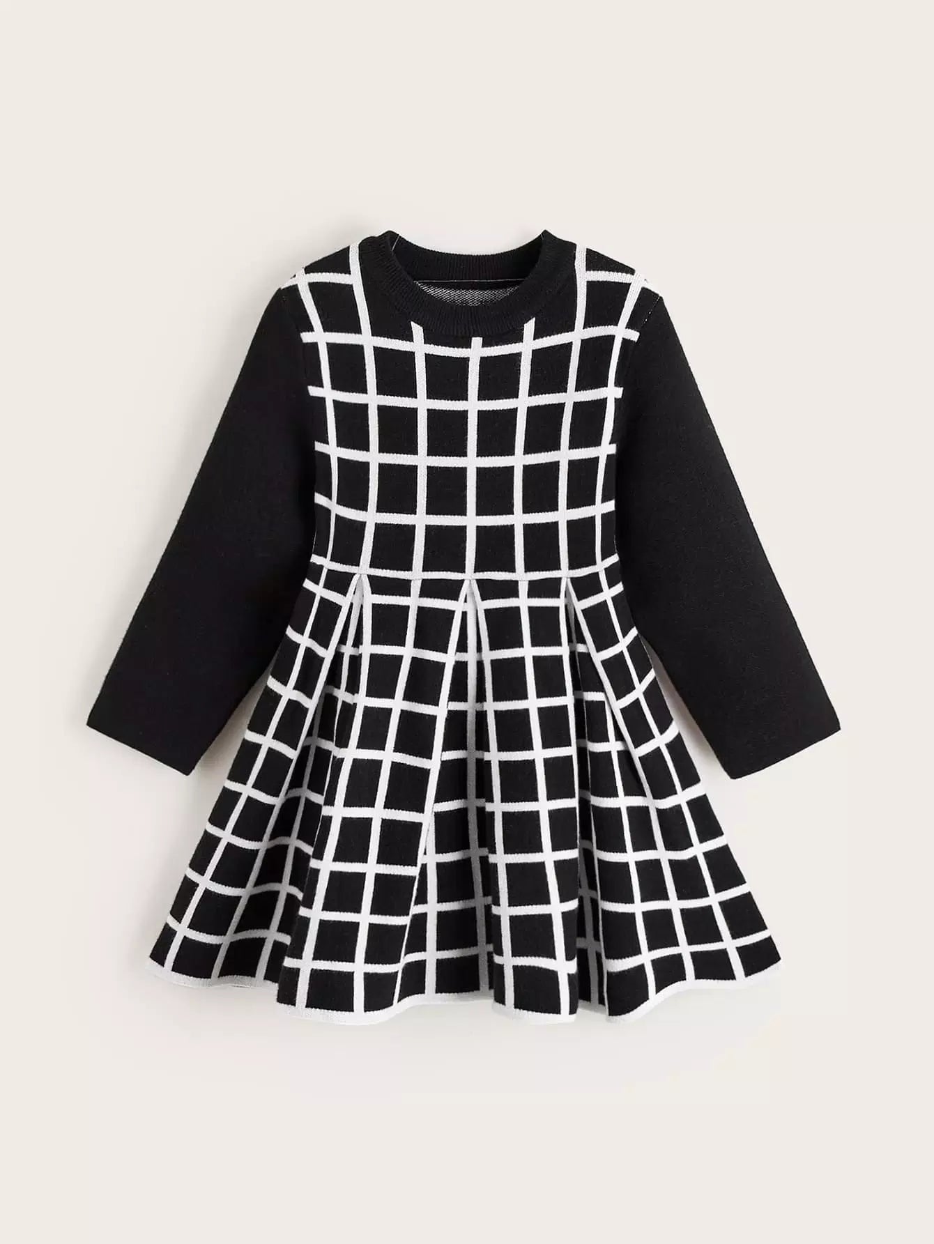 Toddler Girls Grid Pattern Flare Hem Sweater Dress