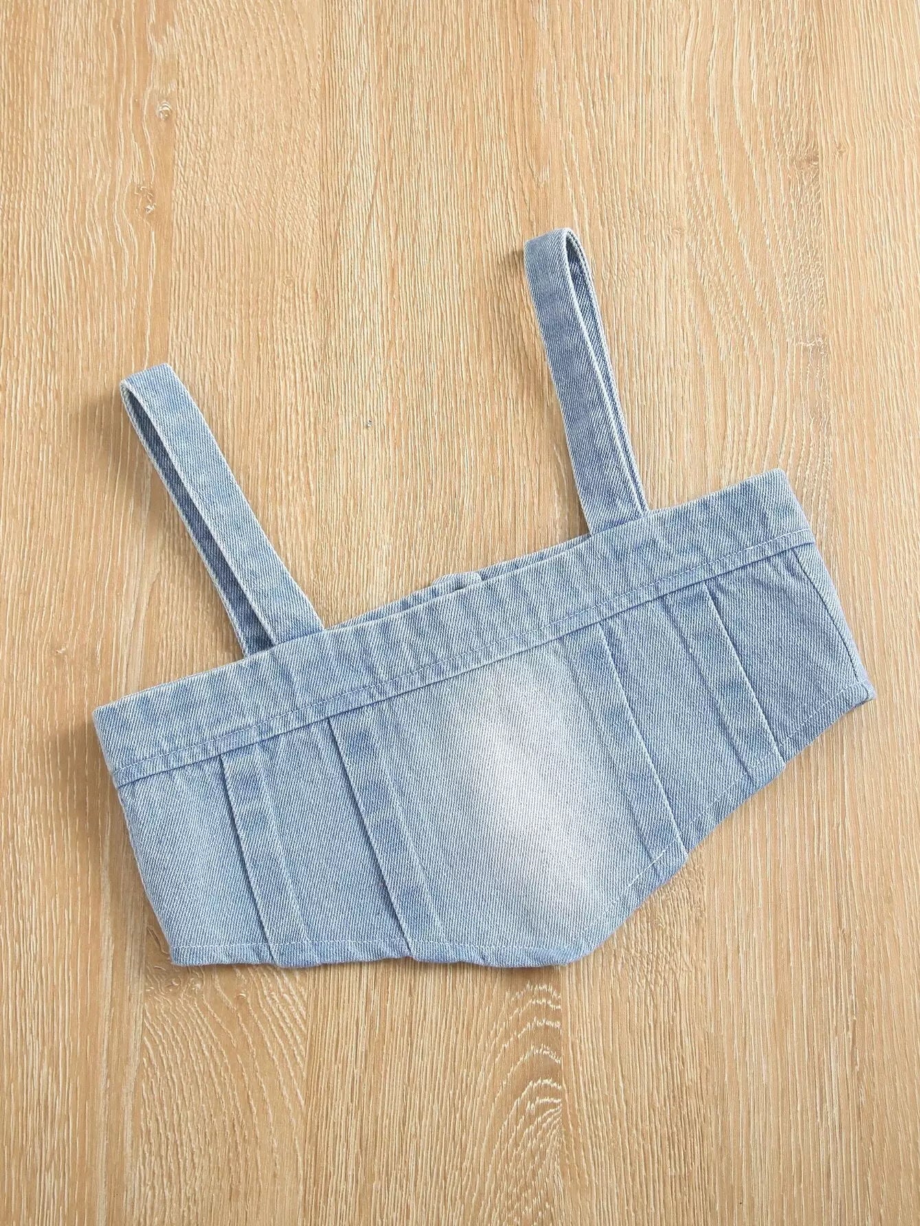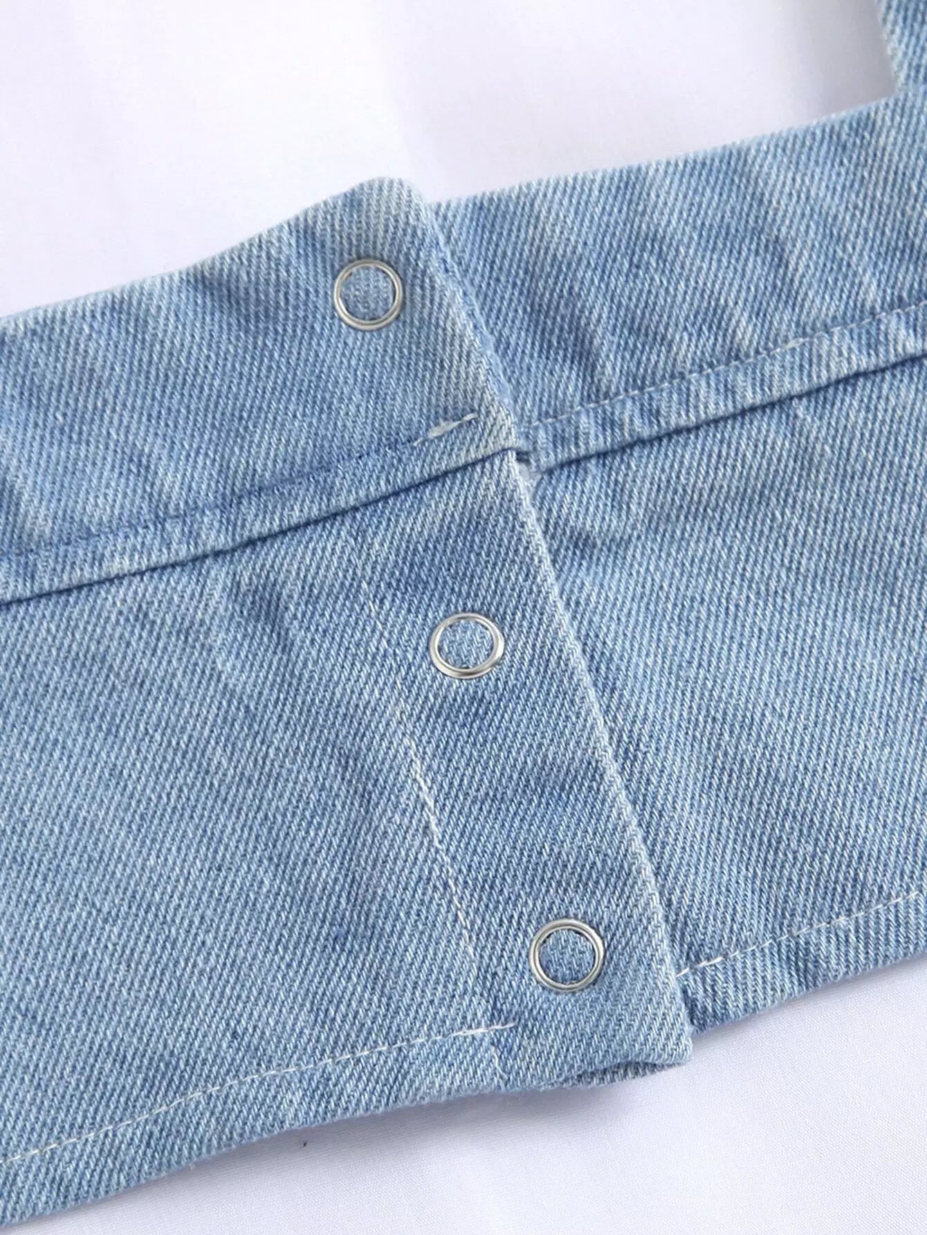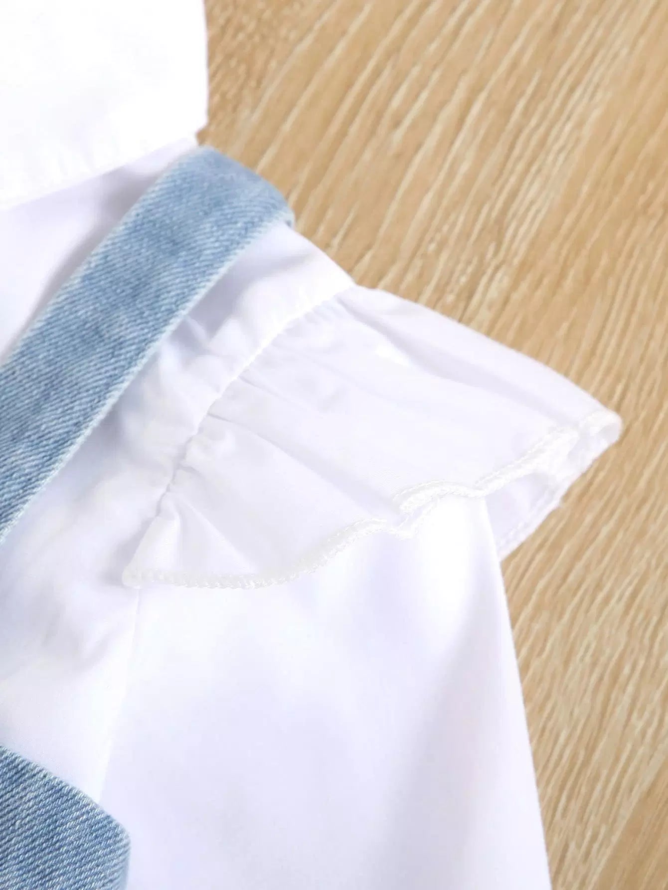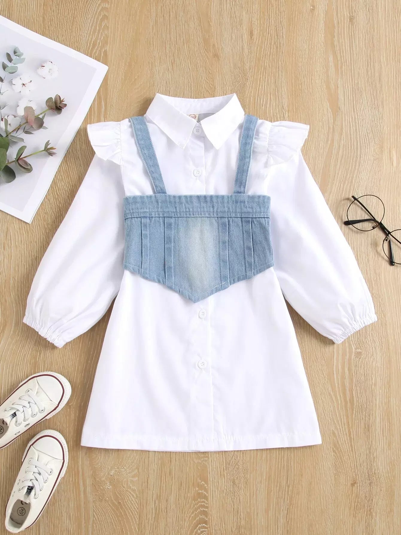 Toddler Girls Hanky Hem Denim Cami Top & Ruffle Trim Lantern Sleeve Shirt Dress
