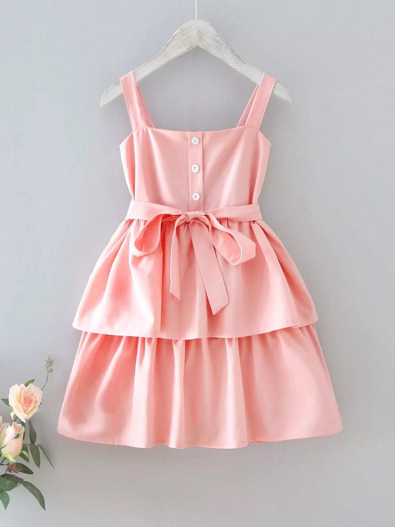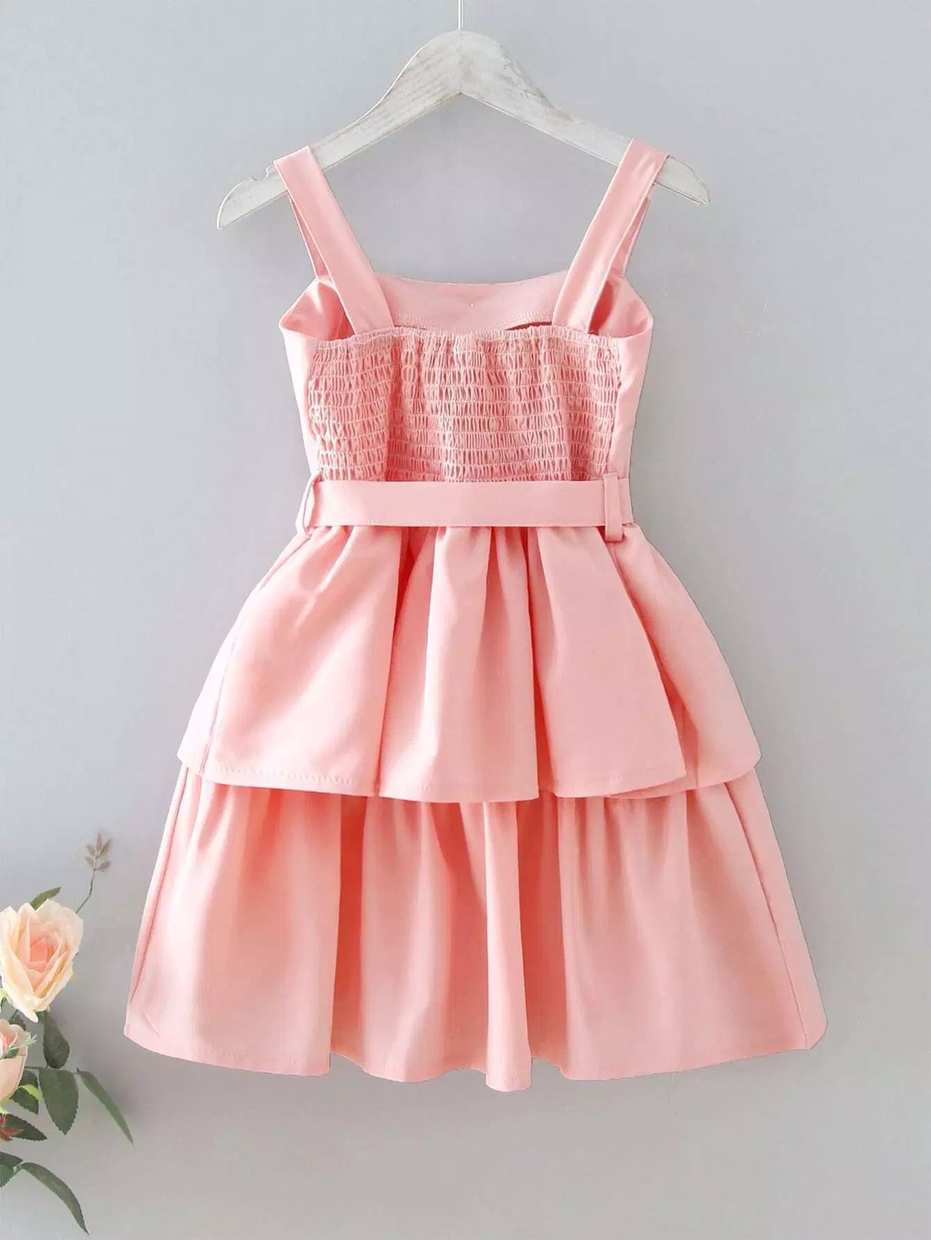 Toddler Girls Layered Ruffle Hem Shirred Back Cami Dress Without Belt
