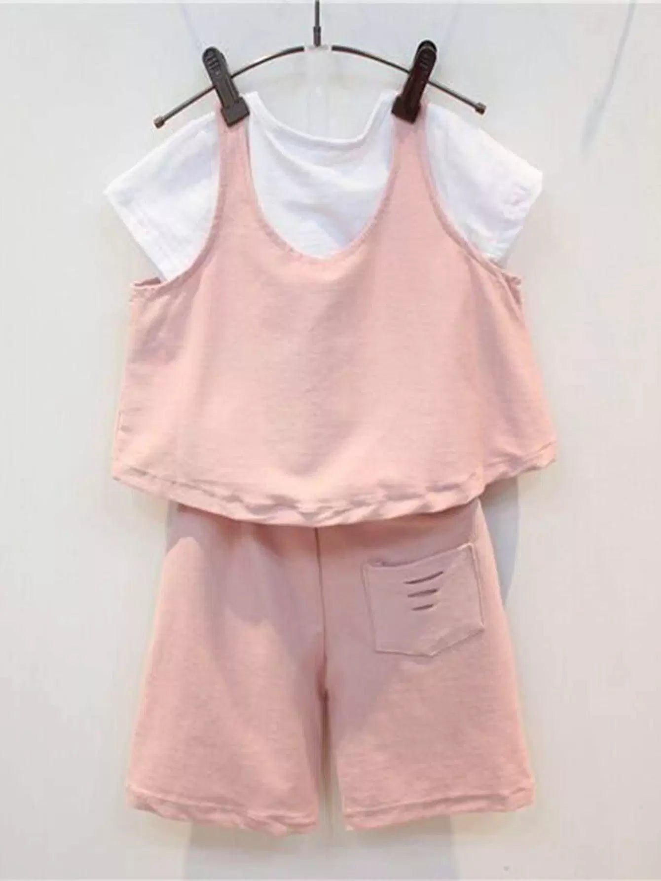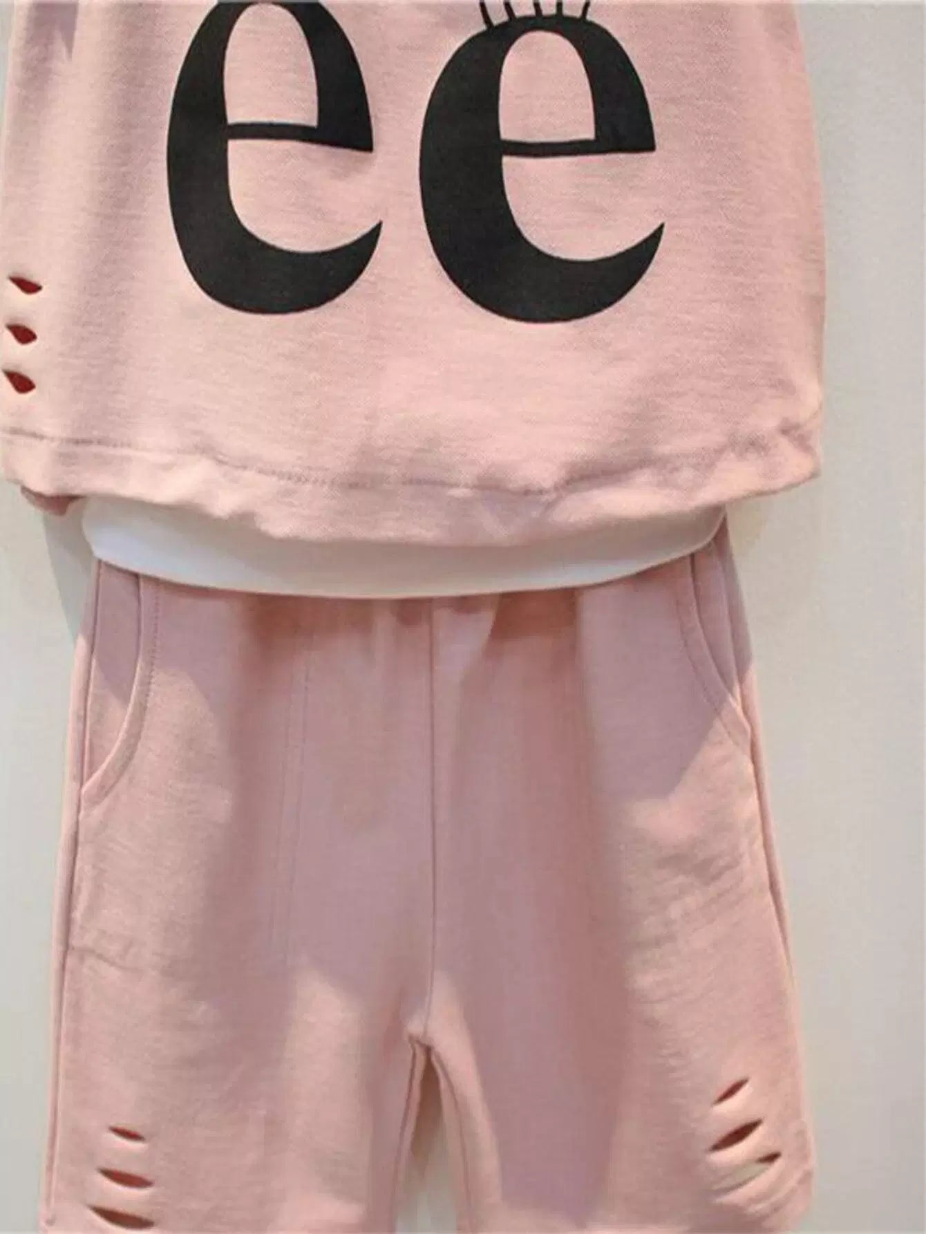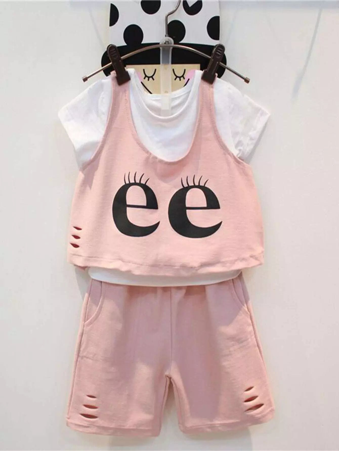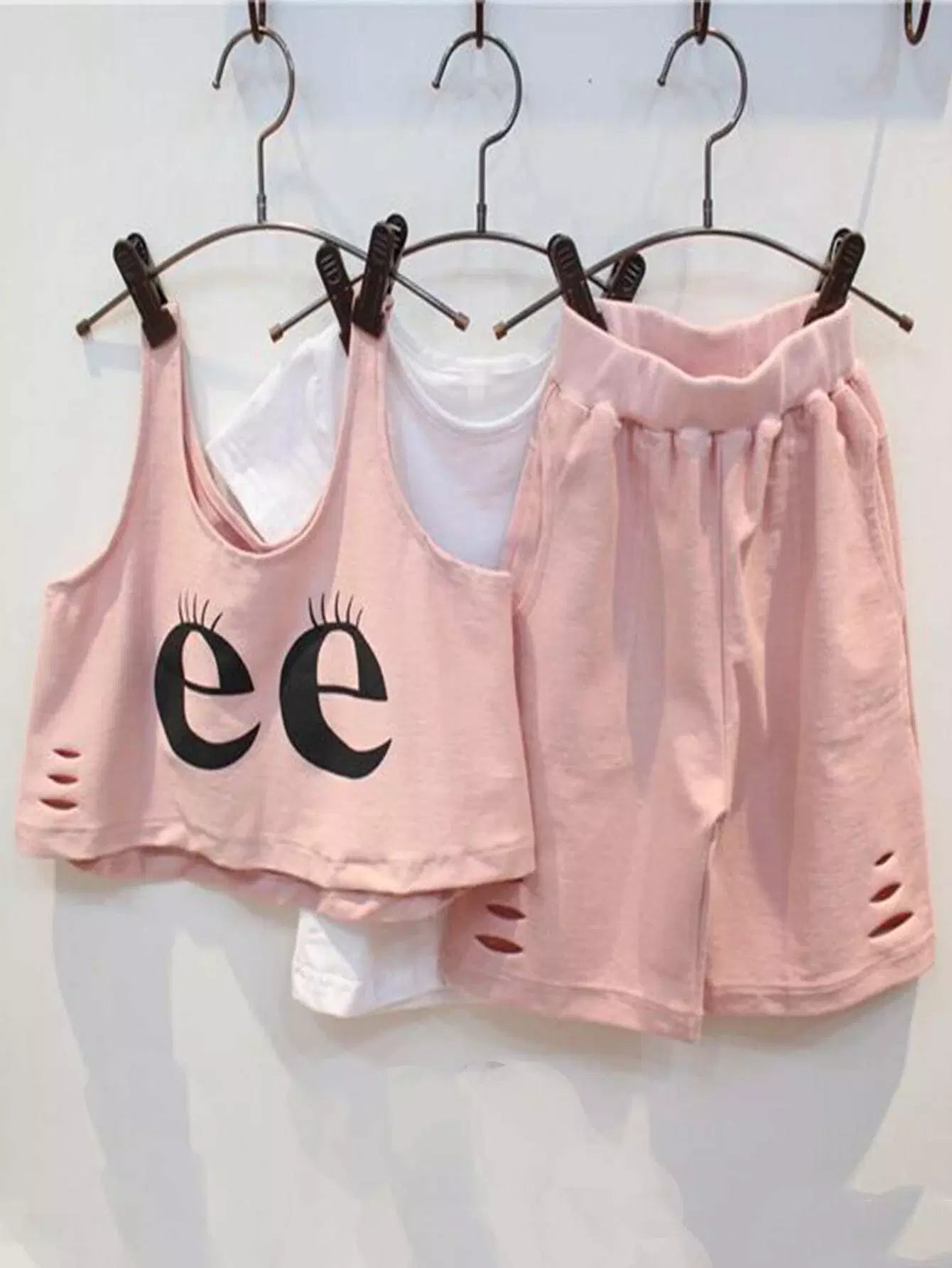 Toddler Girls Letter Graphic Ripped Tank Top & Tee & Shorts