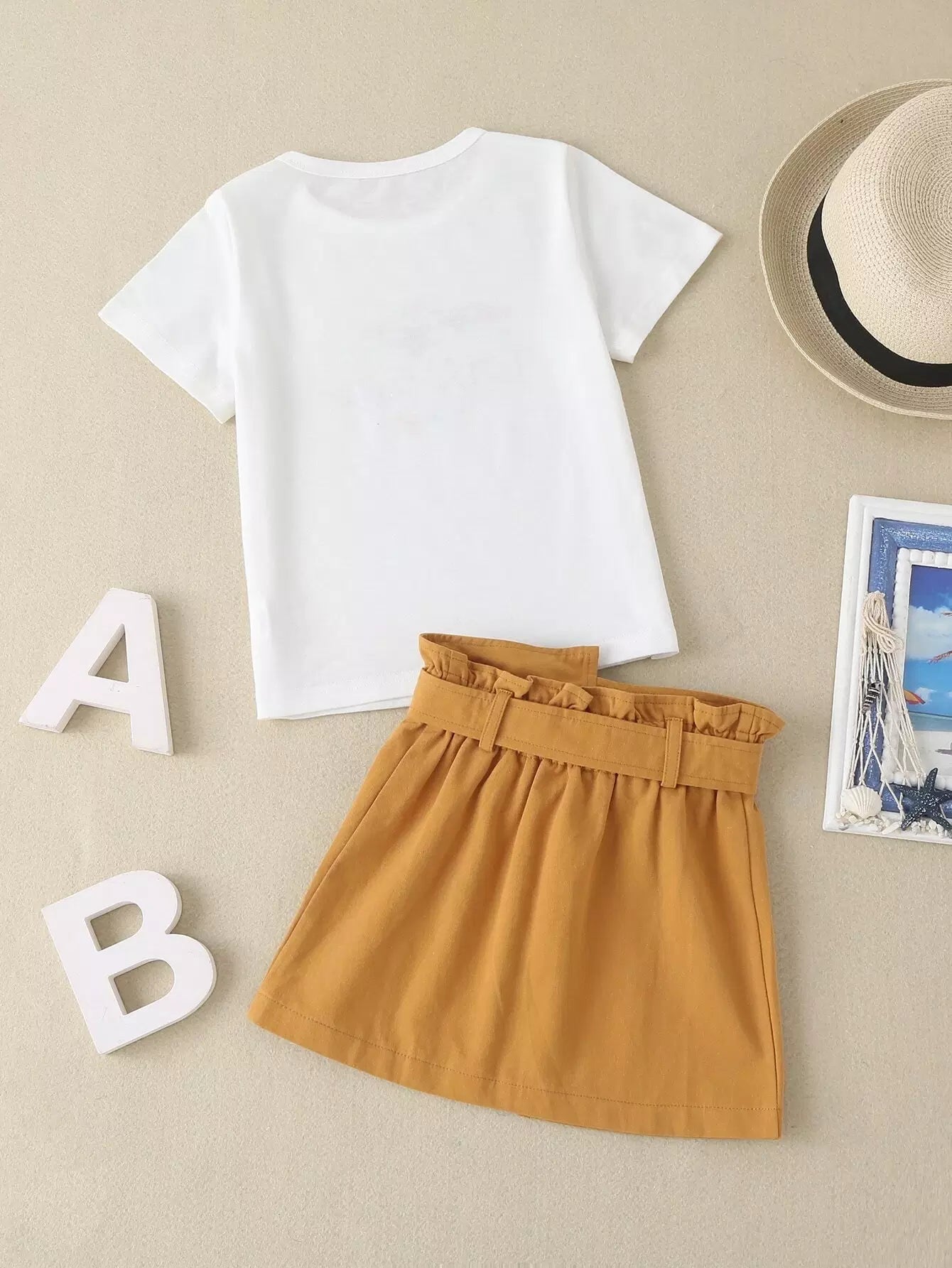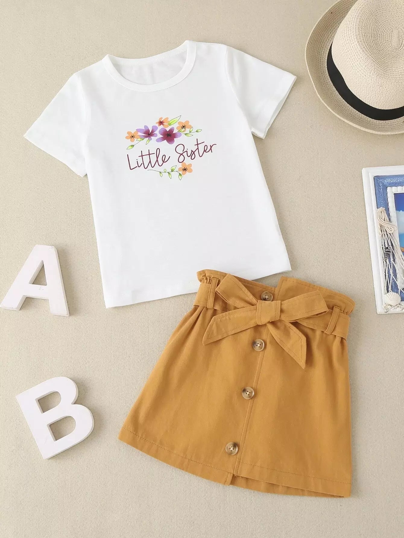 Toddler Girls Letter Graphic Tee Skirt Without Belt