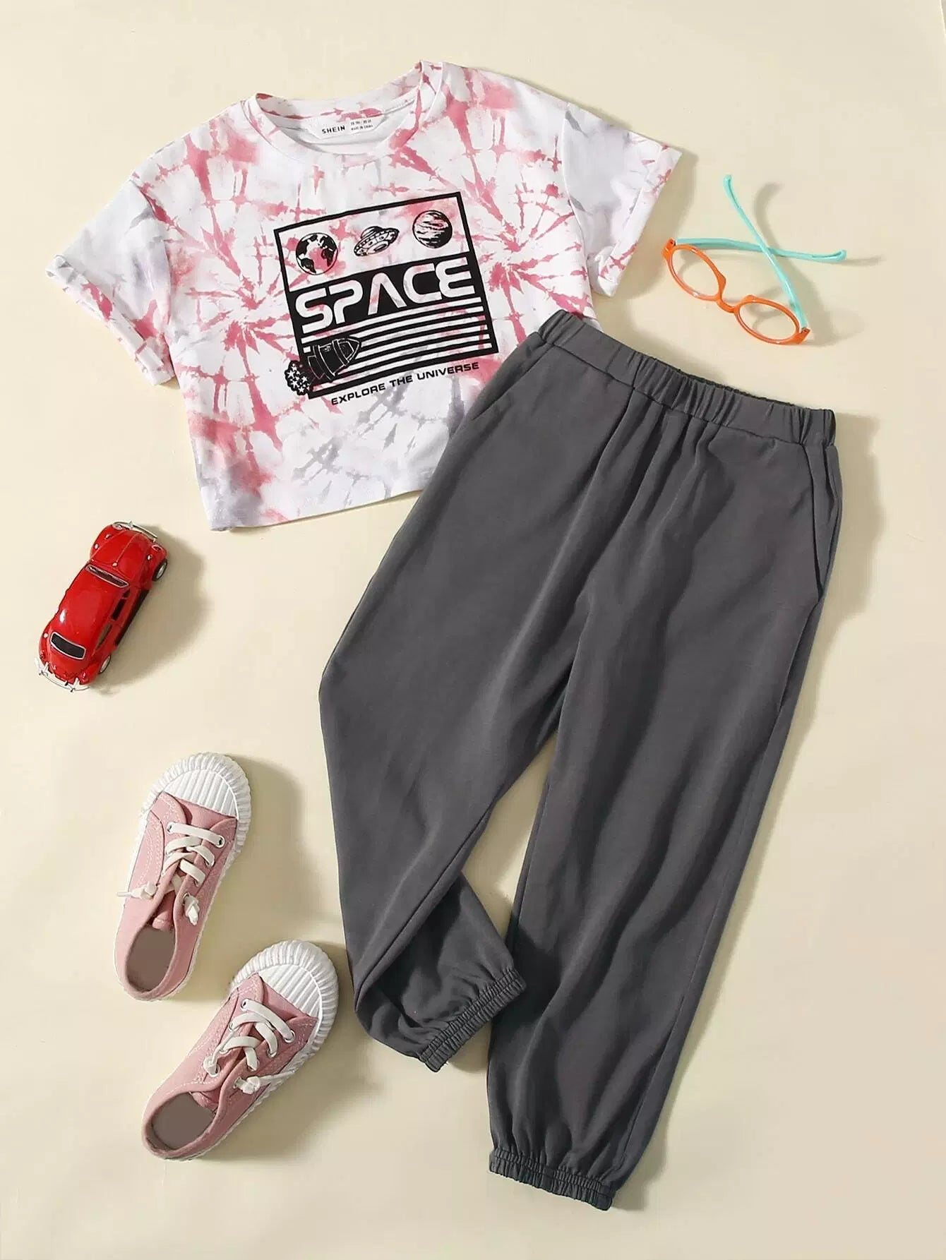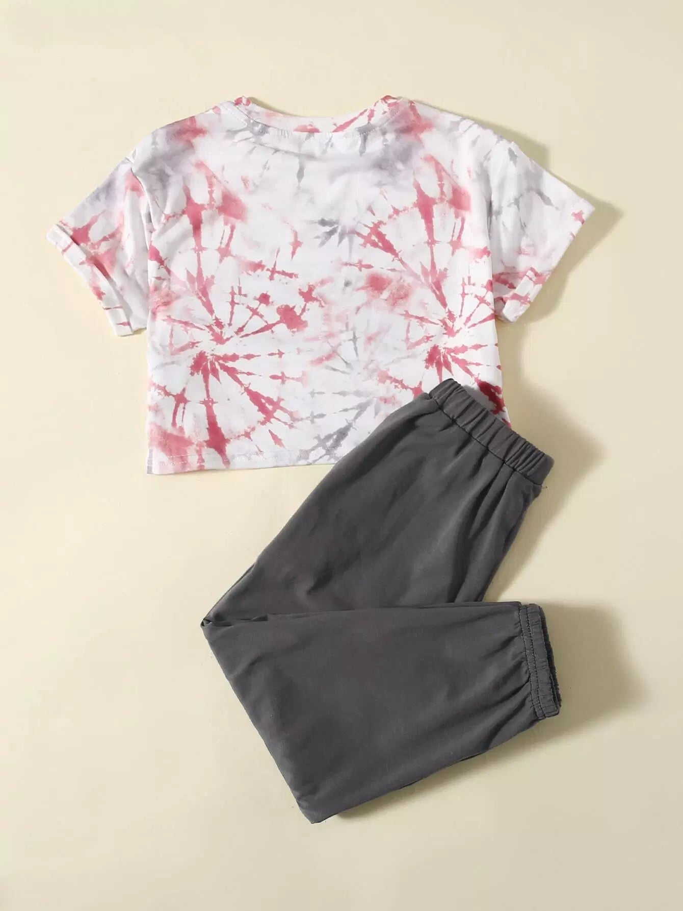 Toddler Girls Letter Graphic Tie Dye Tee & Elastic Waist Joggers Set