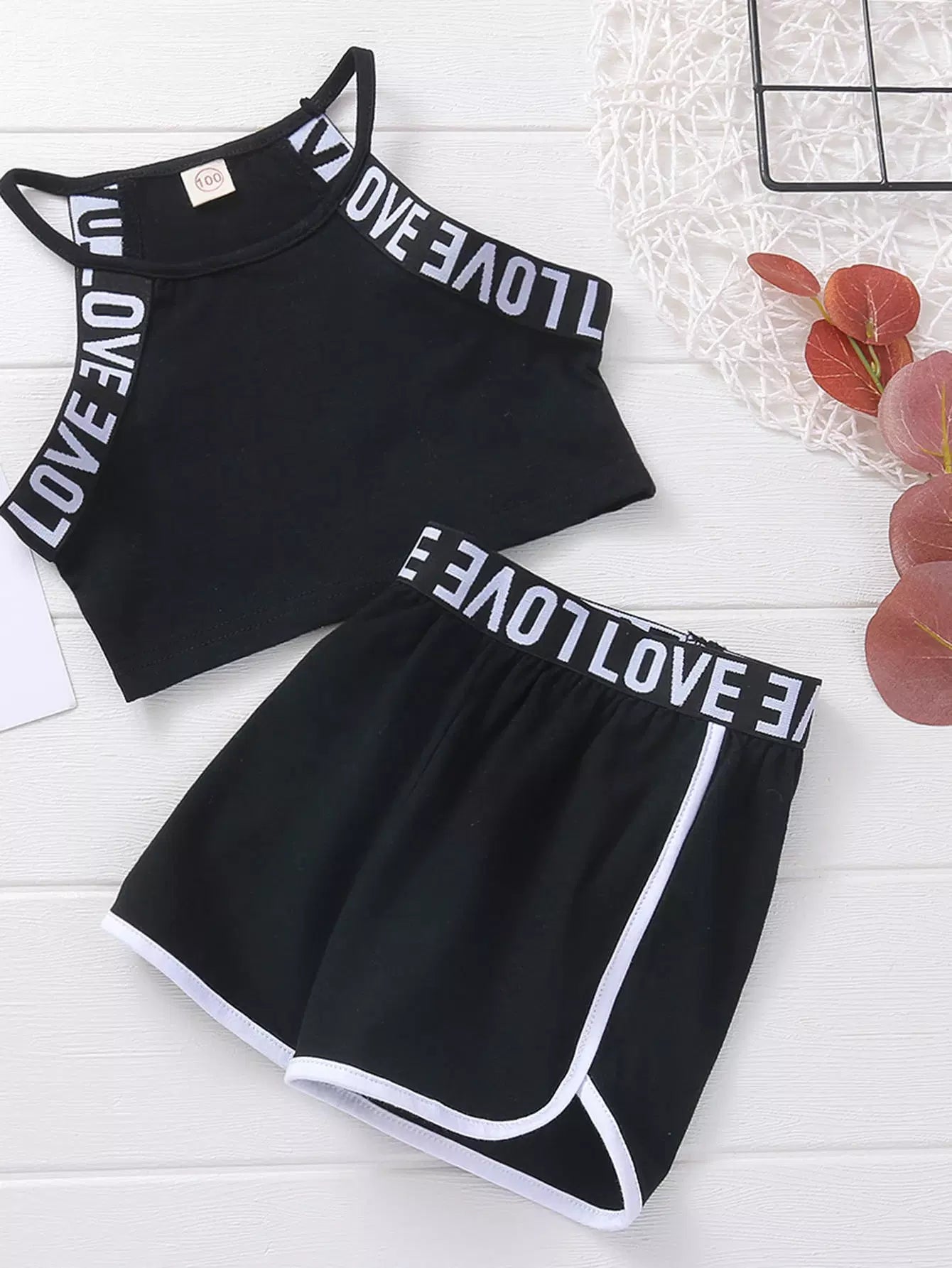 Toddler Girls Letter Tape Halter Top With Track Shorts