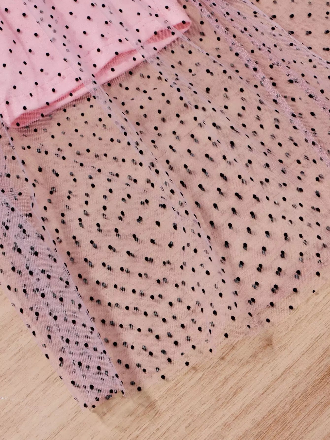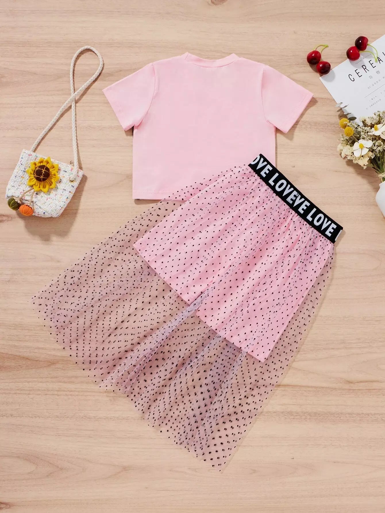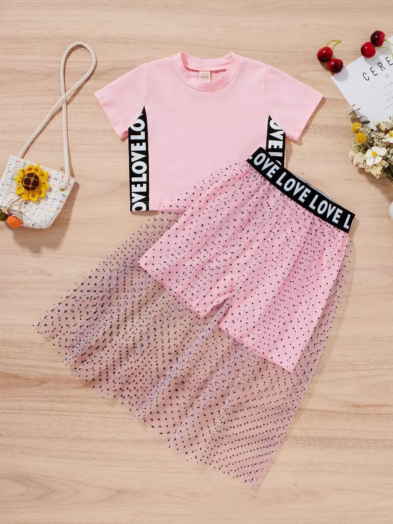 Toddler Girls Letter Tape Tee With Dobby Mesh Combo Skirt