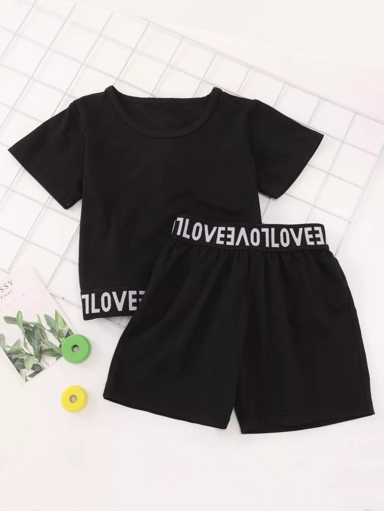 Kids - Toddler Girls Letter Taped Tee With Track Shorts