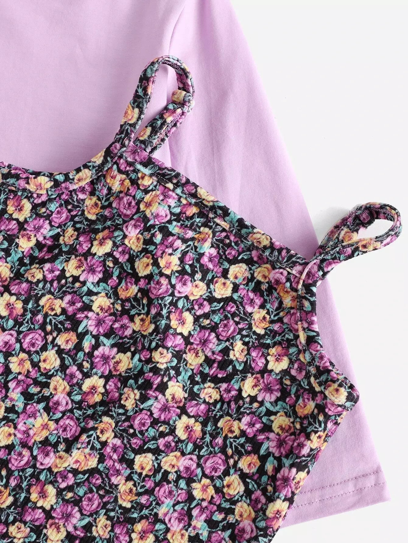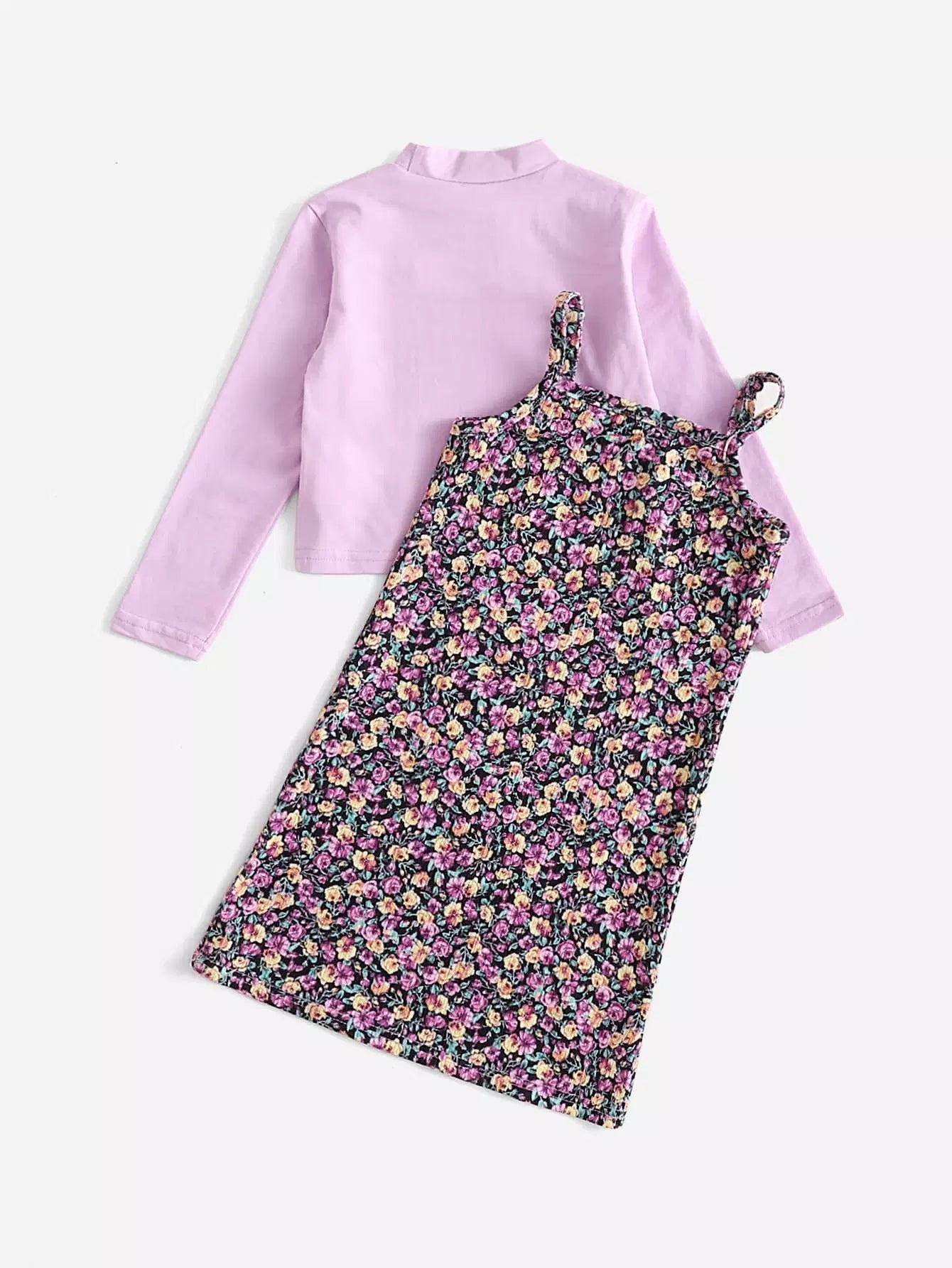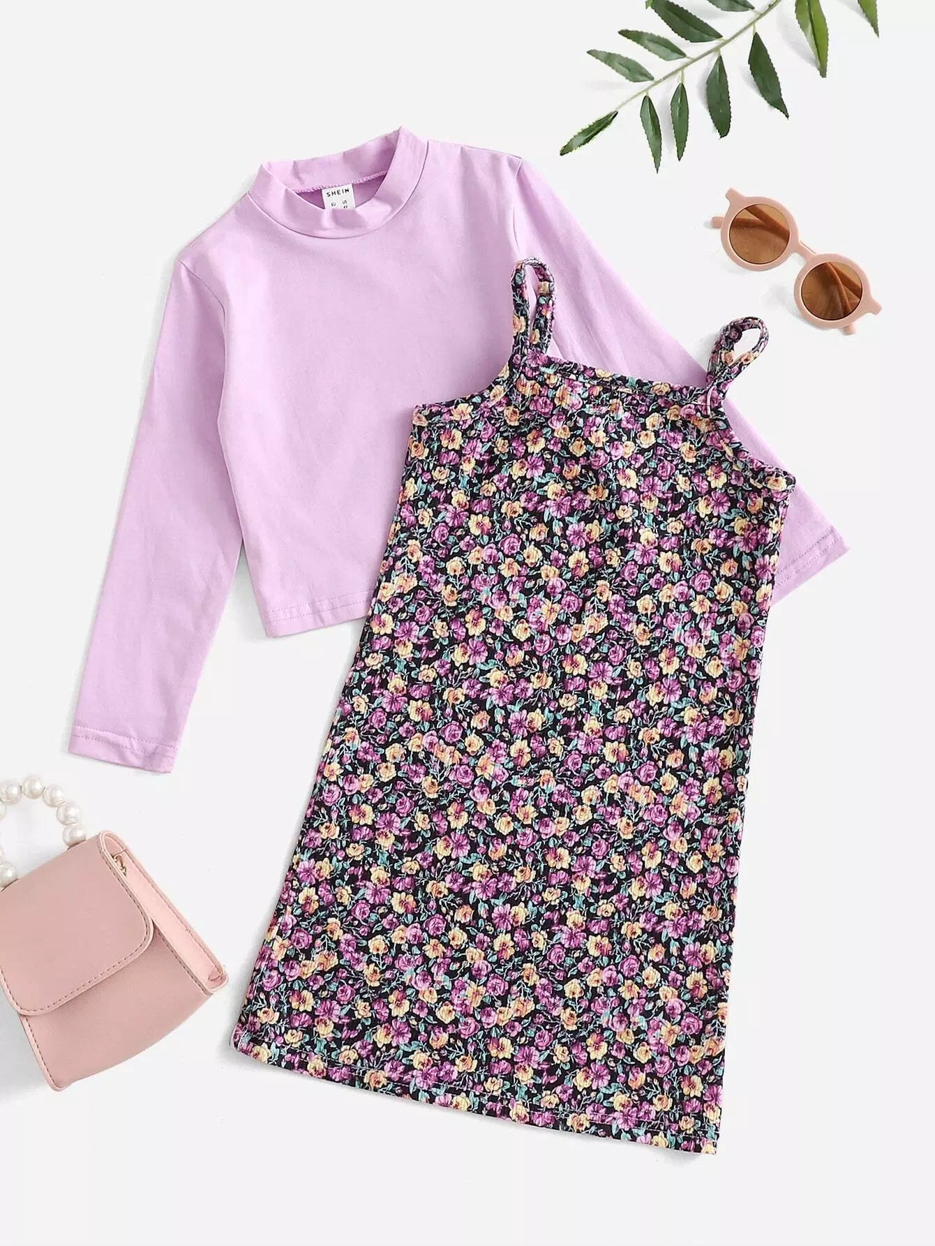 Toddler Girls Mock Neck Tee & Ditsy Floral Cami Dress Set