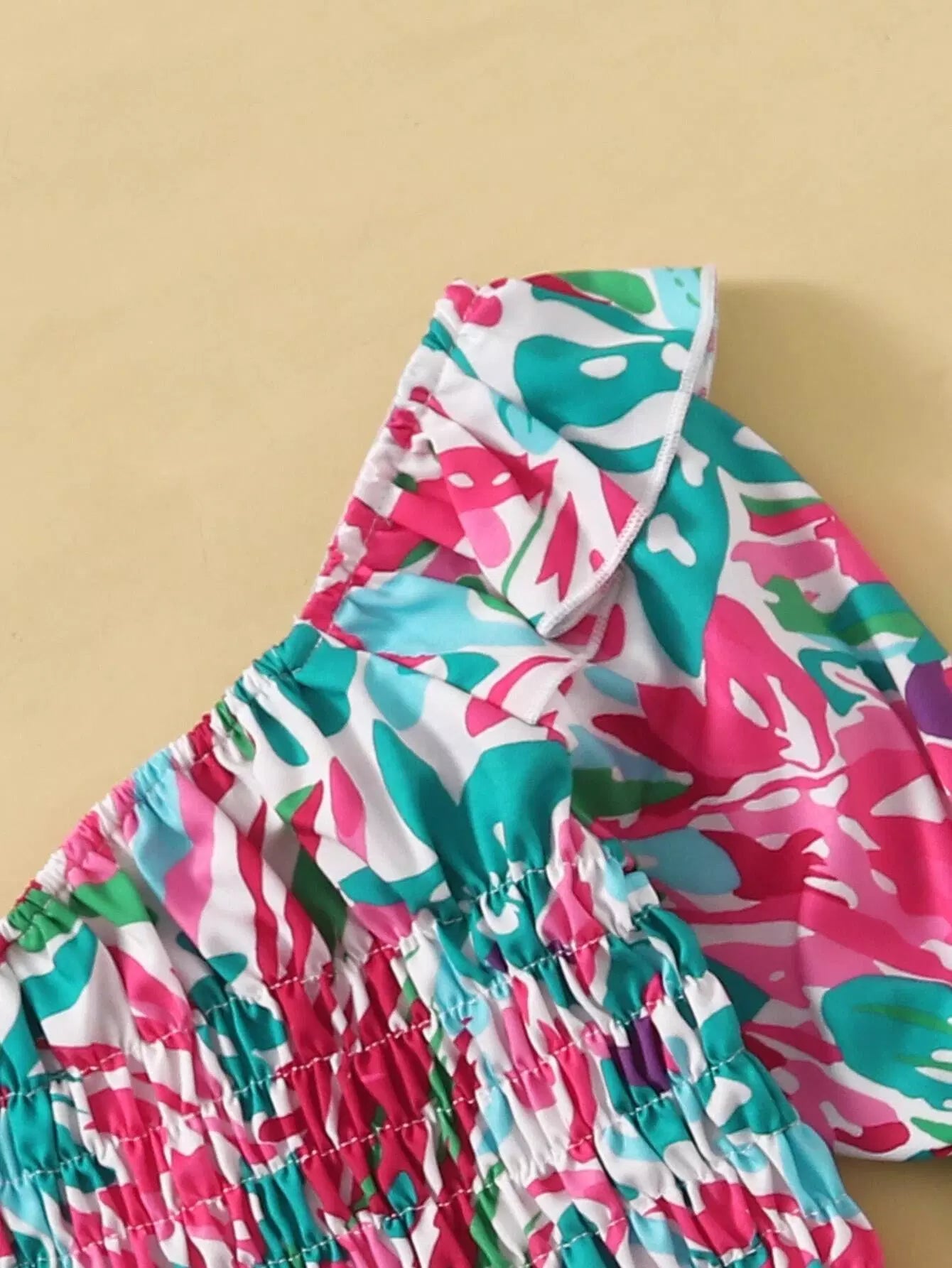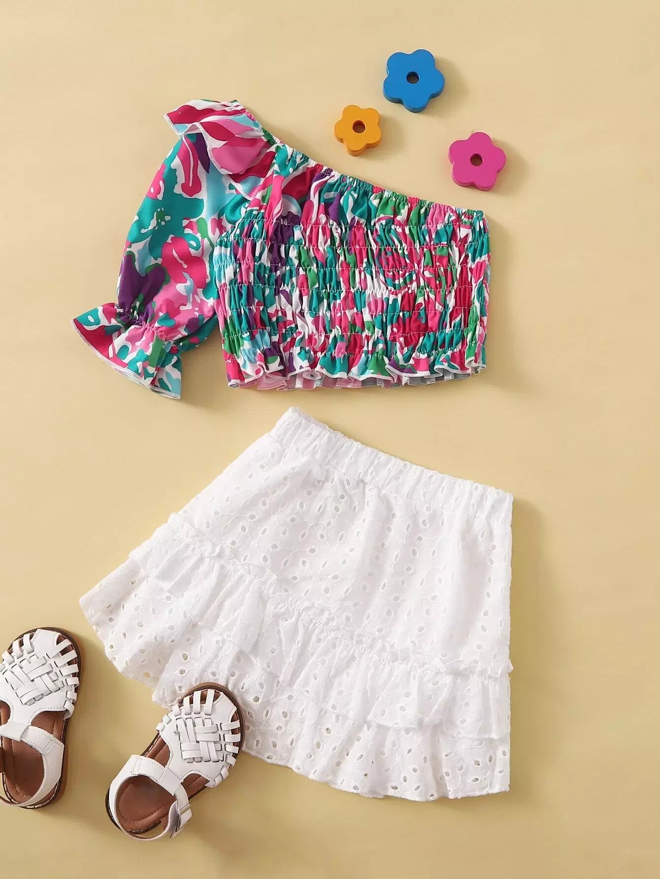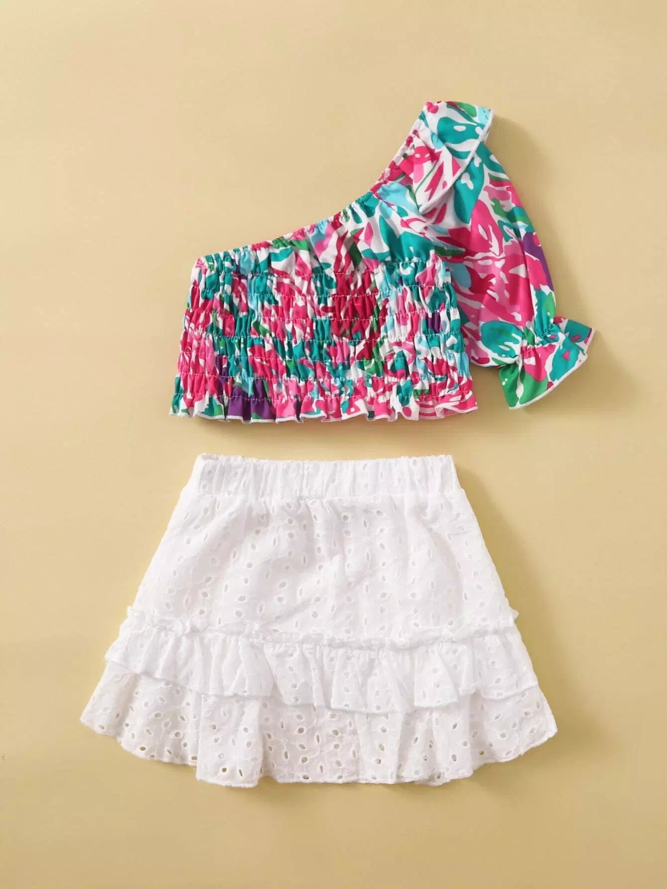 Toddler Girls One Shoulder Shirred Top & Schiffy Skirt