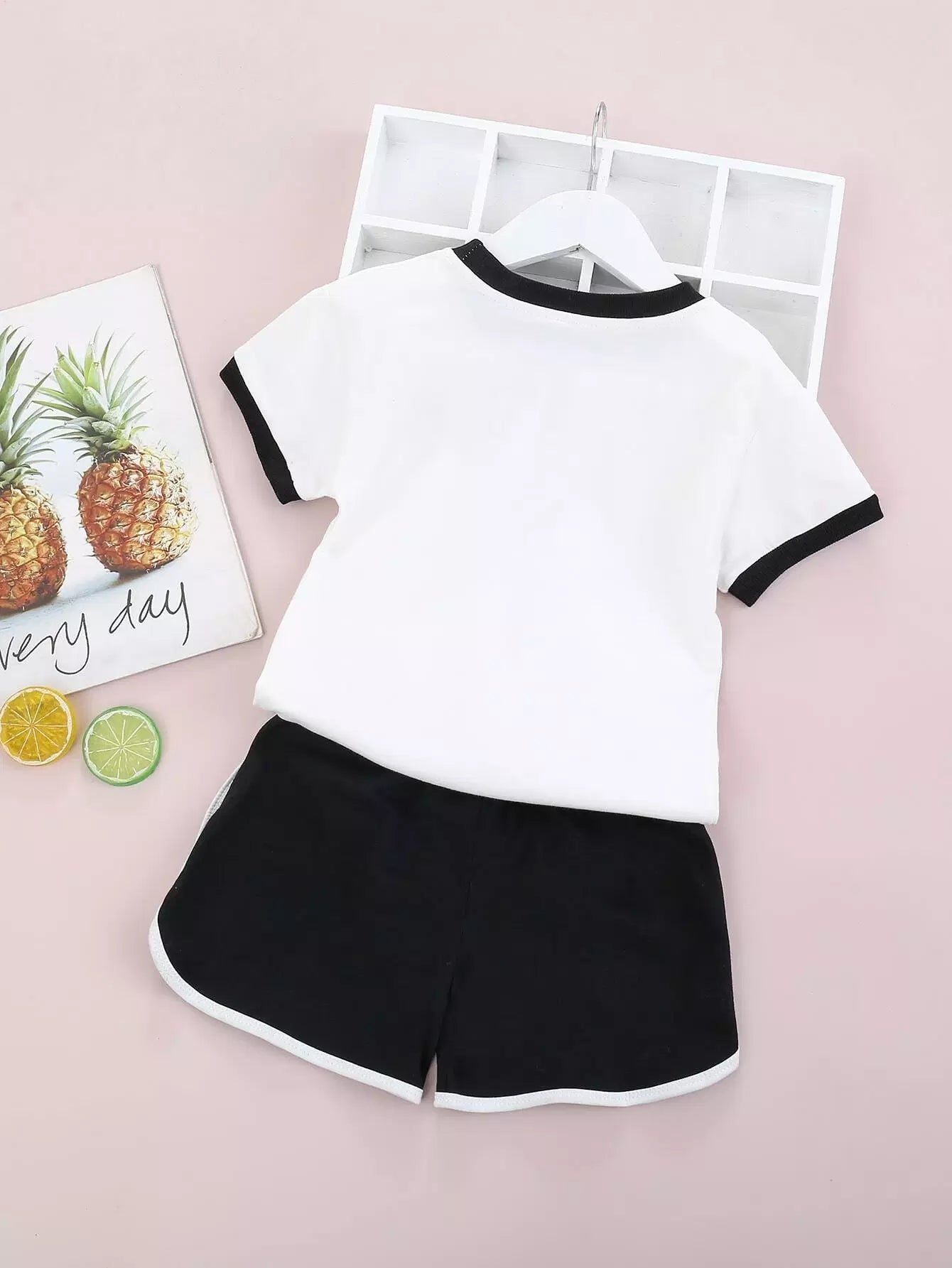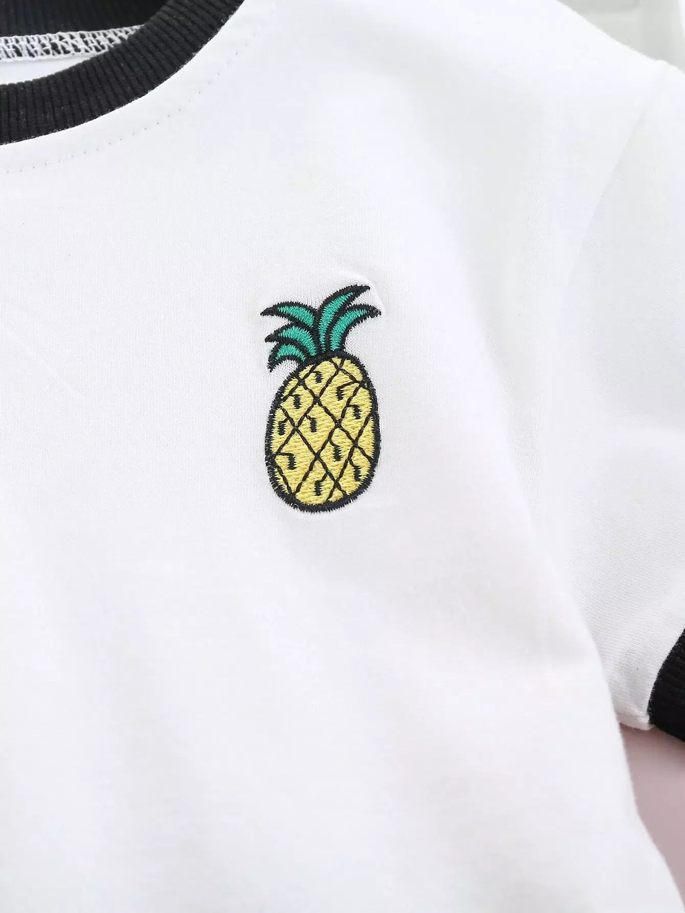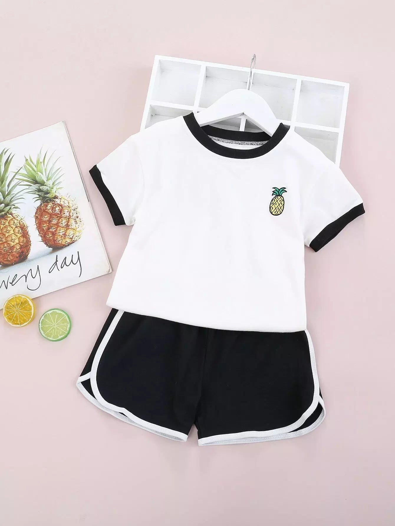 Kids - Toddler Girls Pineapple Embroidery Tee With Track Shorts