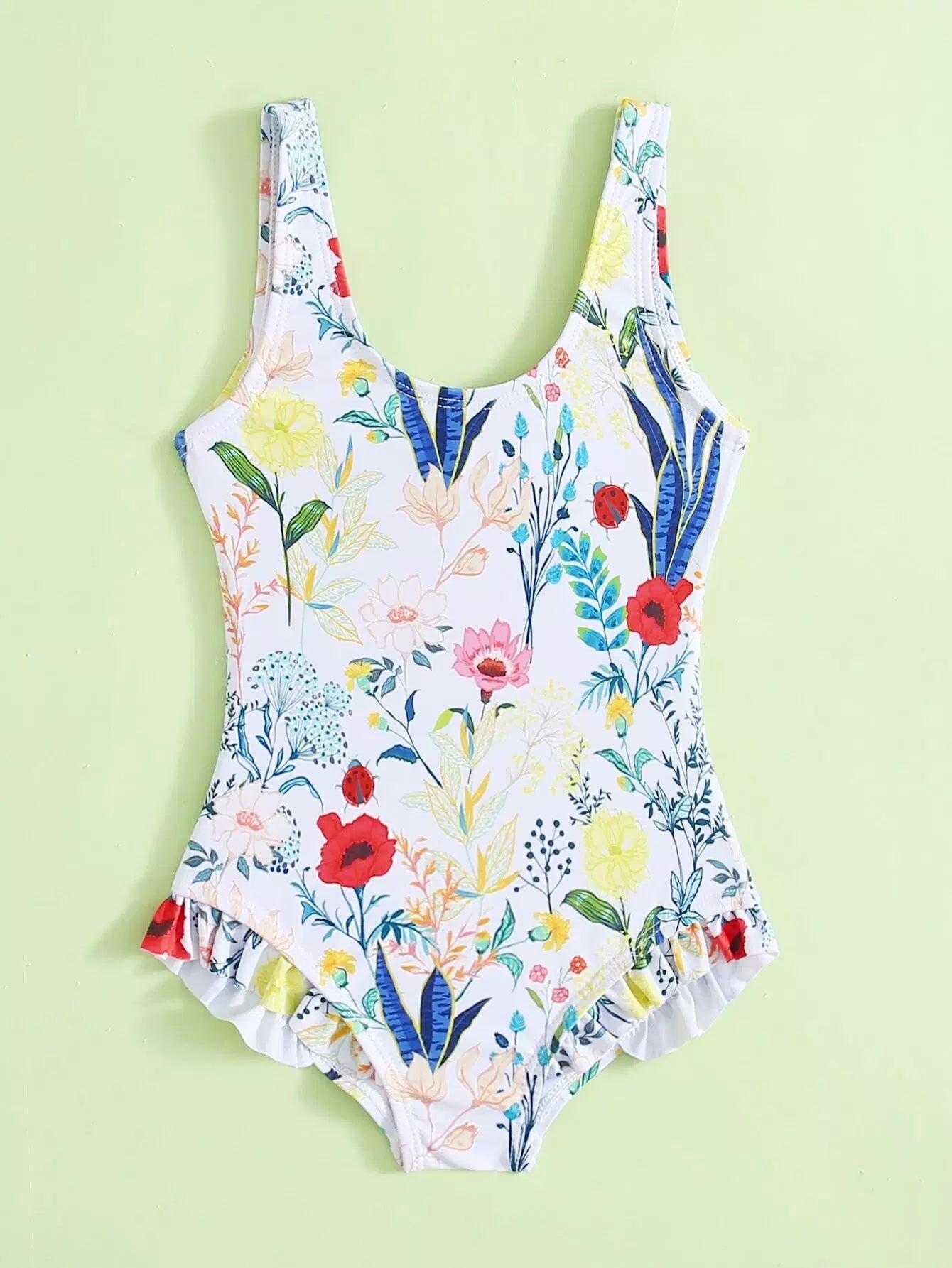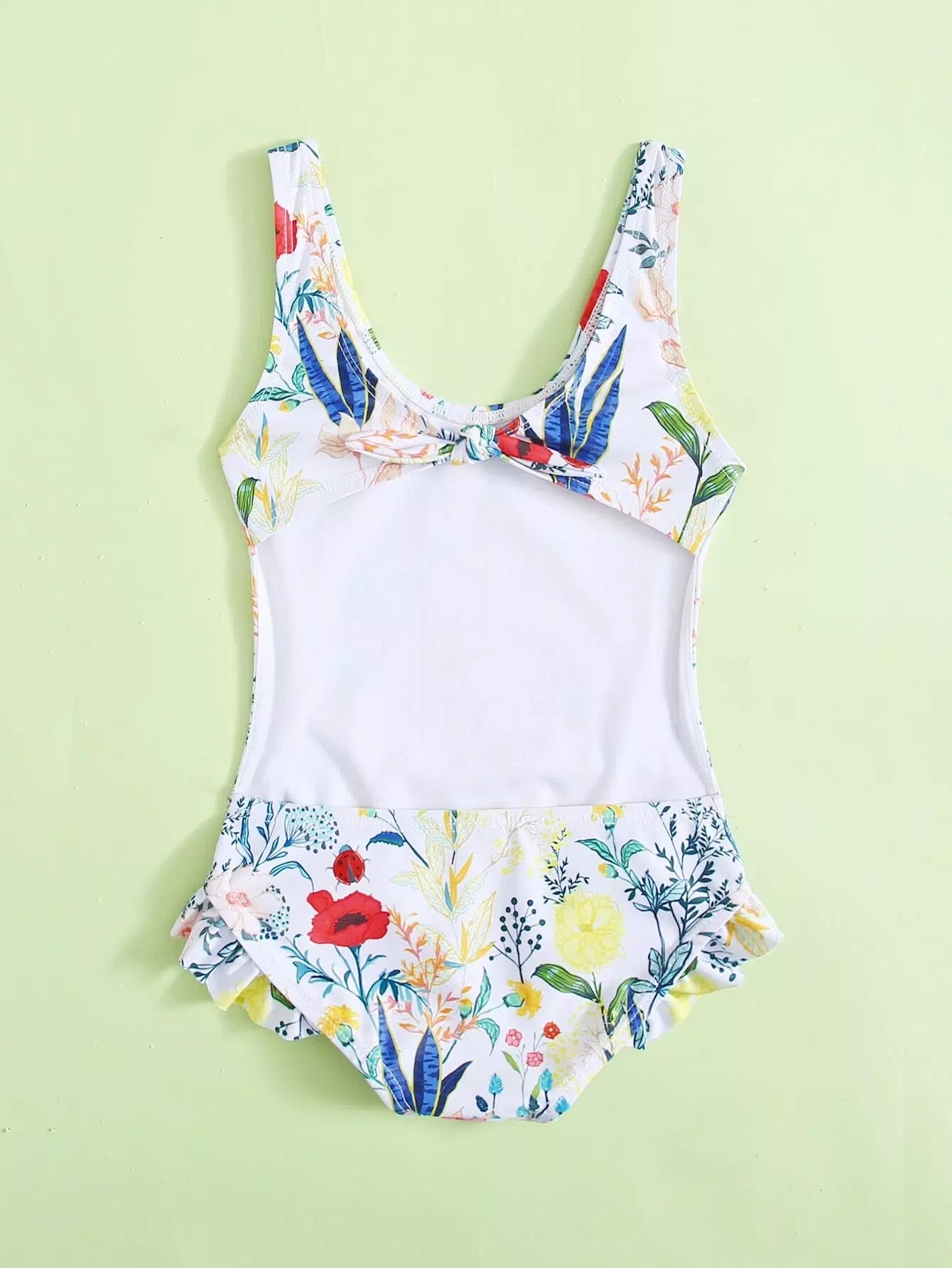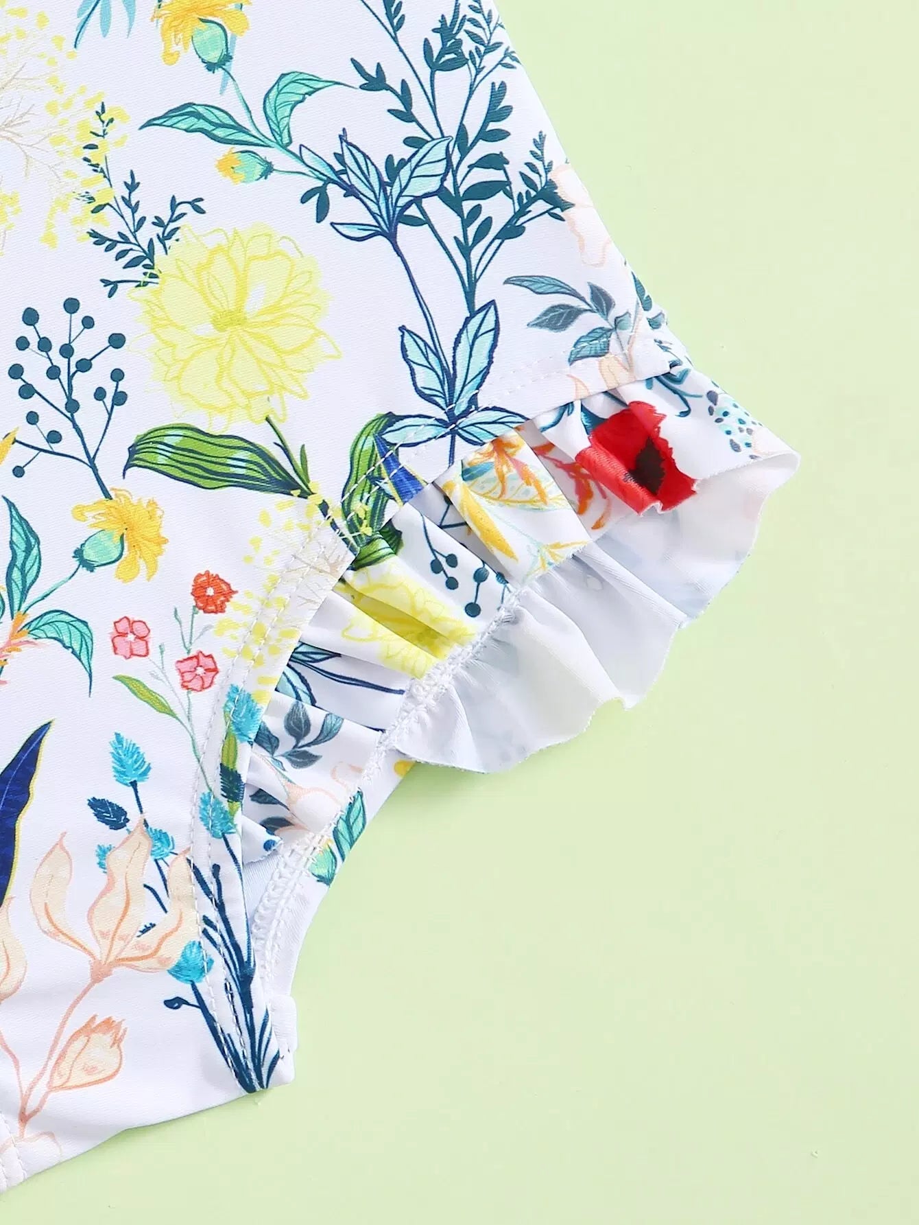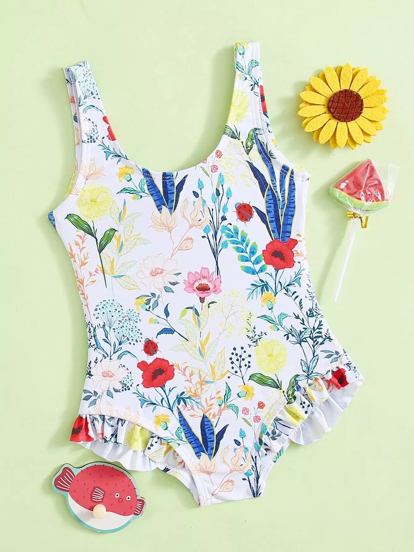 Toddler Girls Plant Print Ruffle One Piece Swimsuit