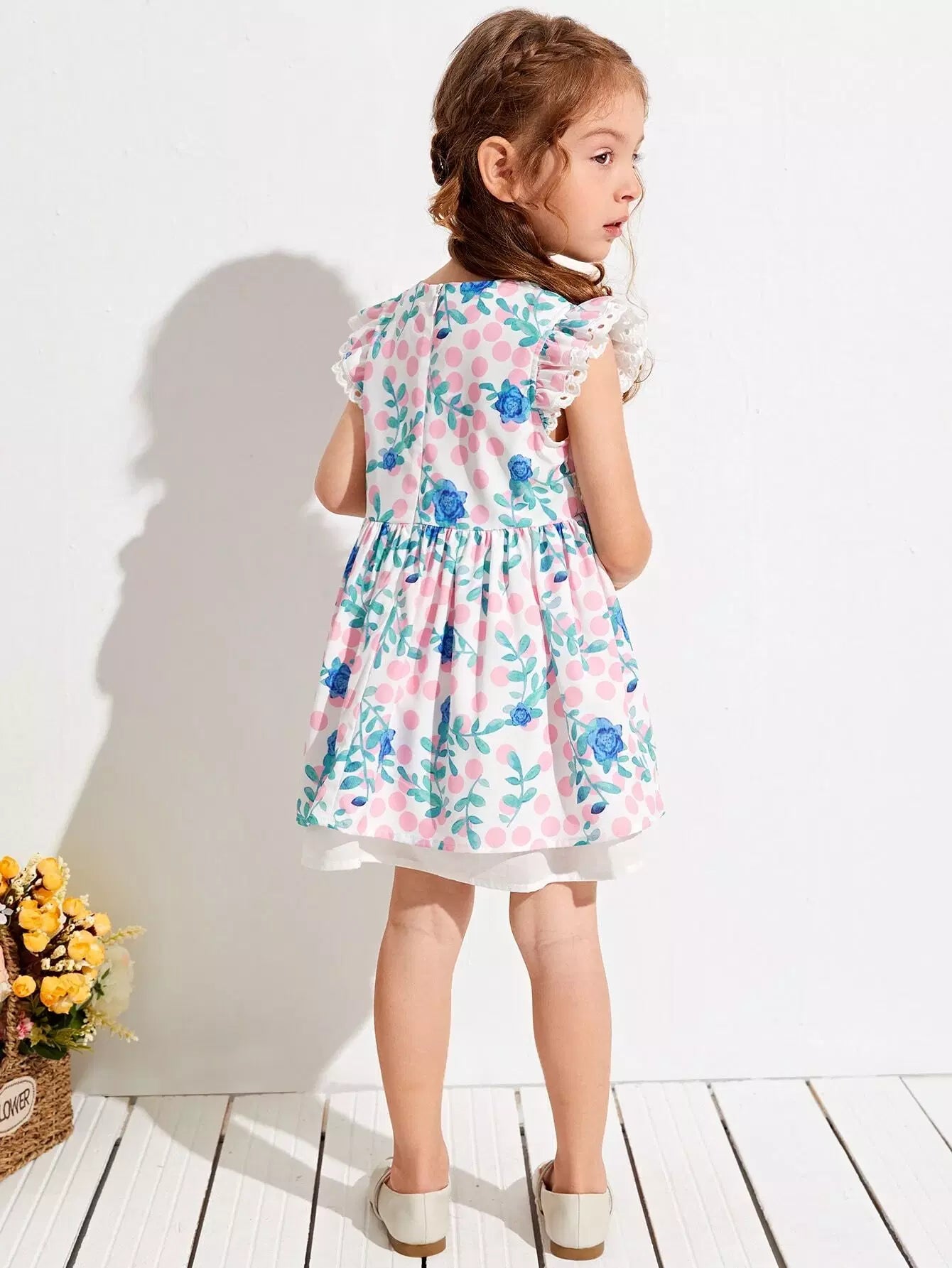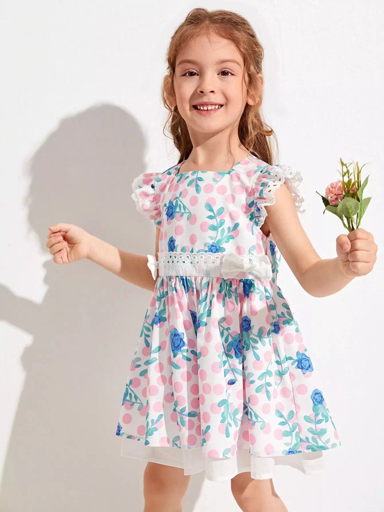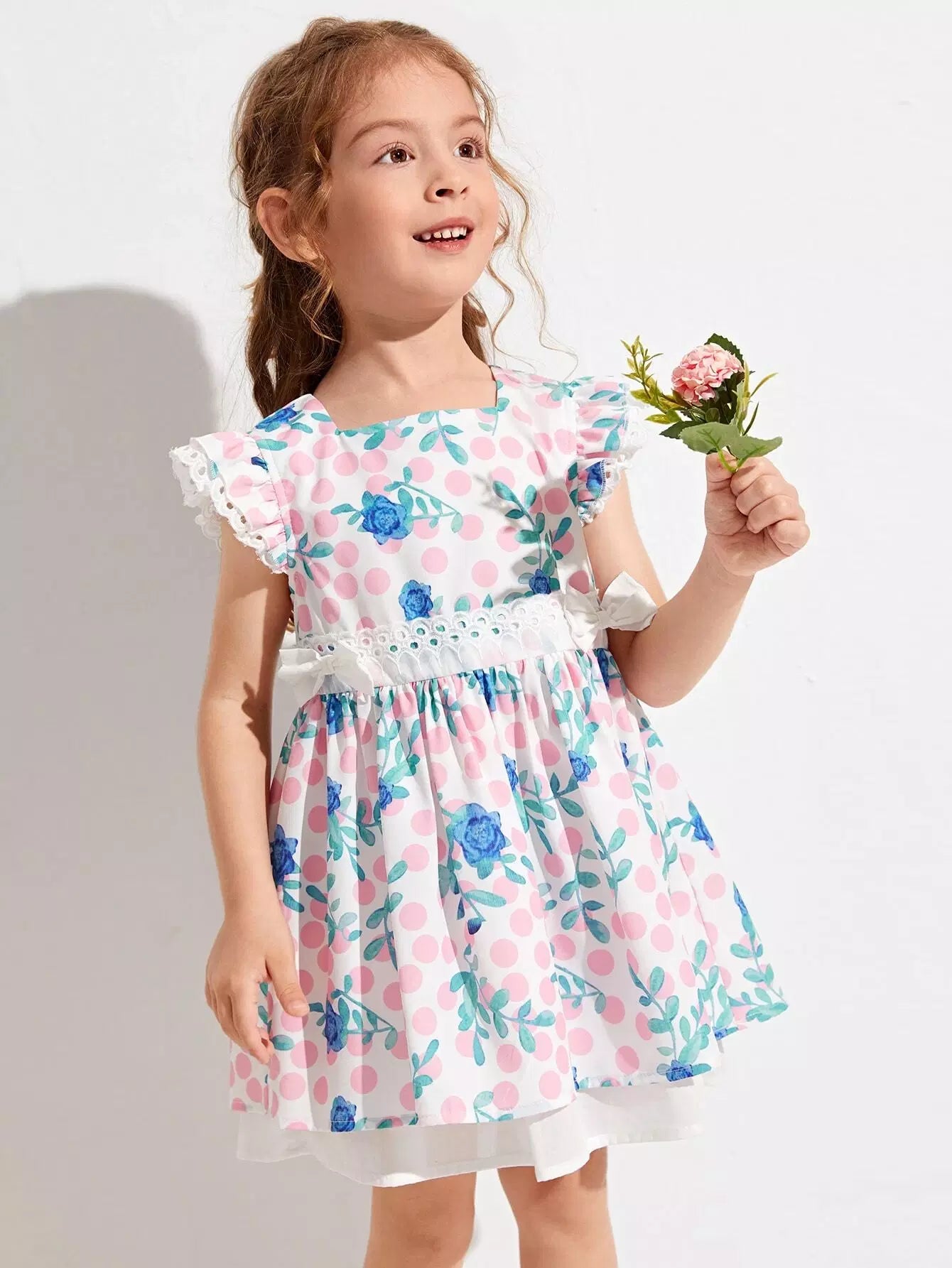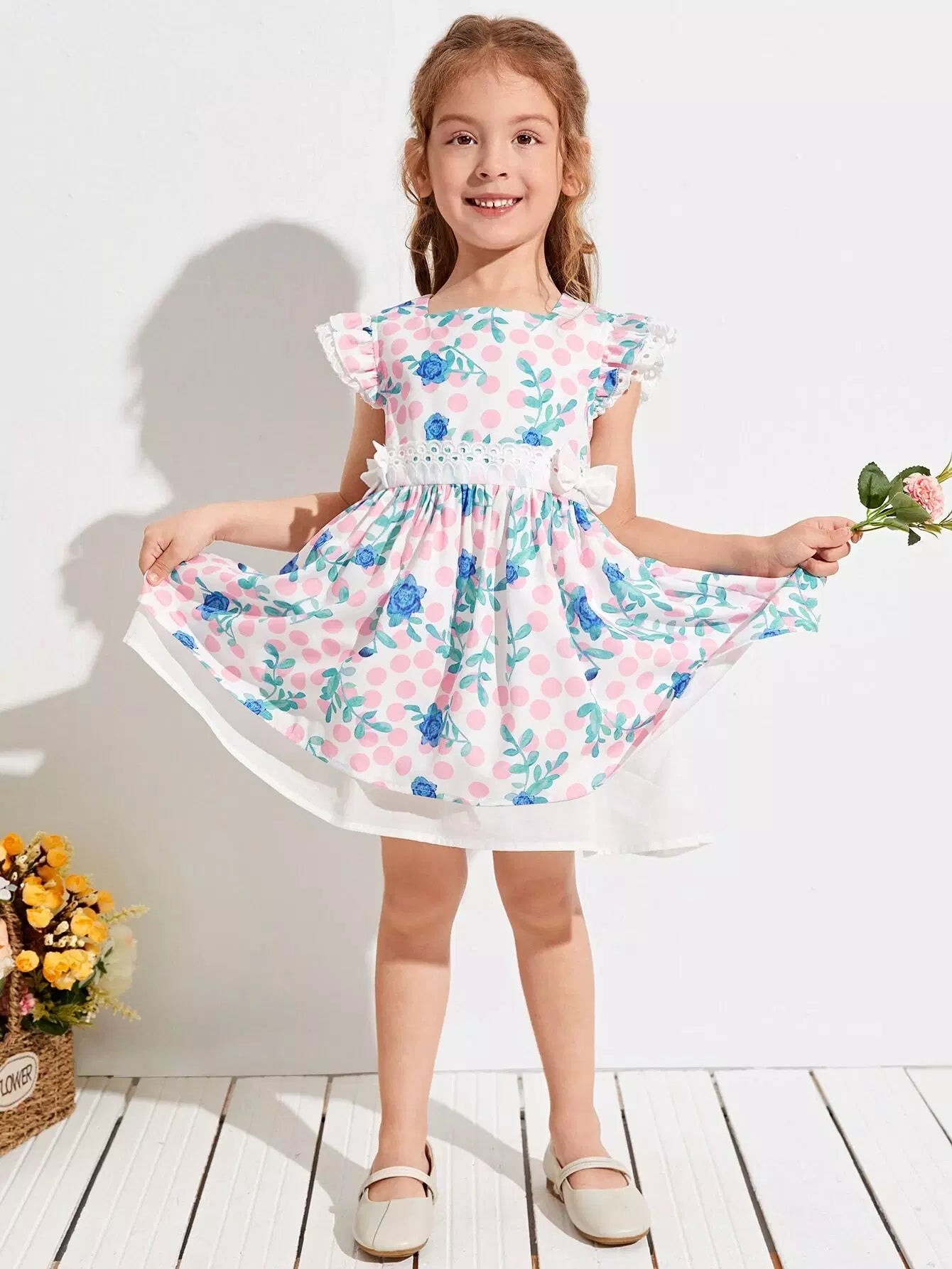 Toddler Girls Polka Dot And Floral Print Bow Front A-line Dress