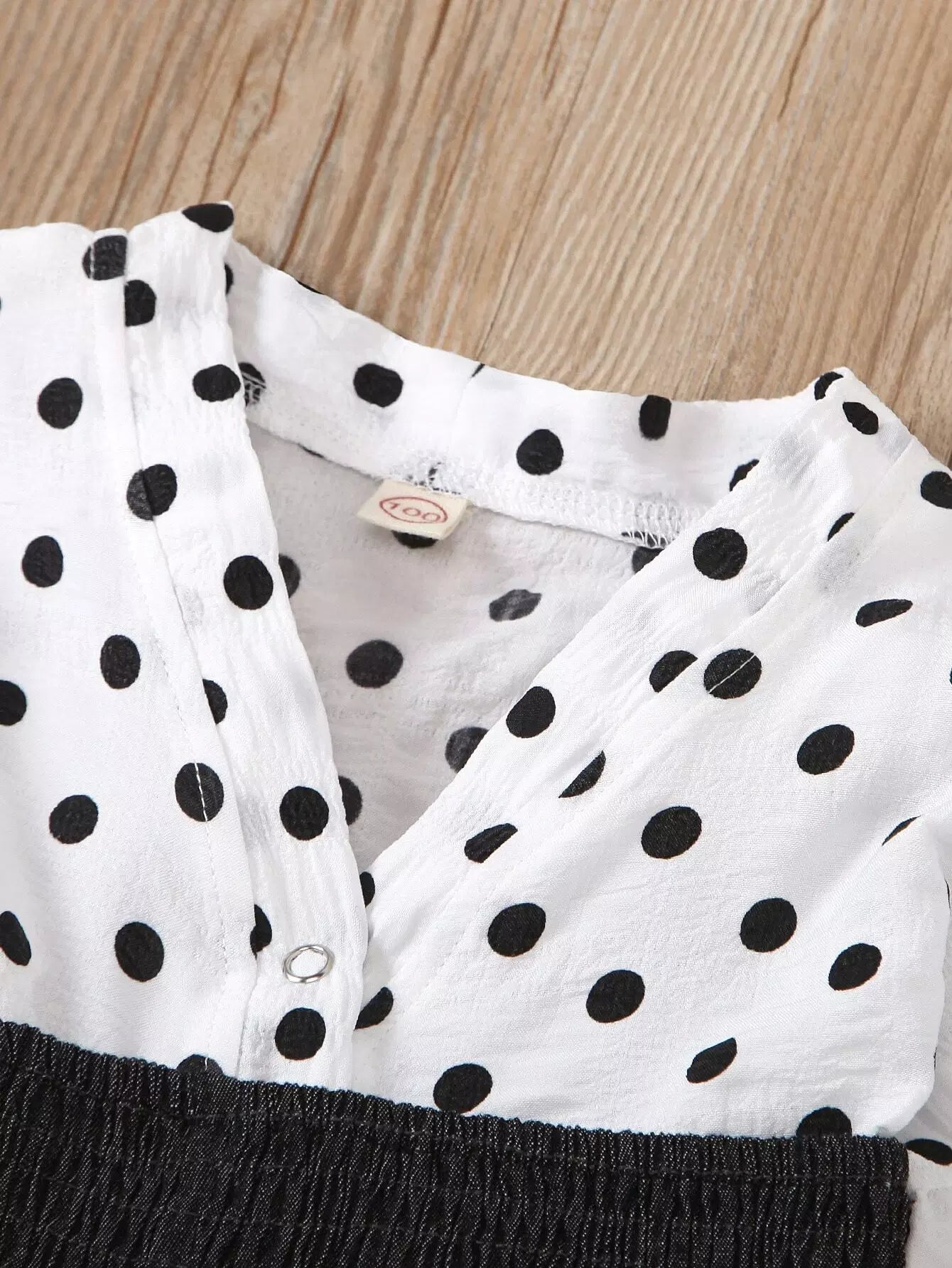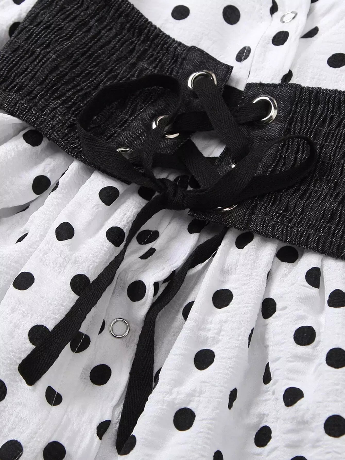 Toddler Girls Polka Dot Corset Popper Front Dress