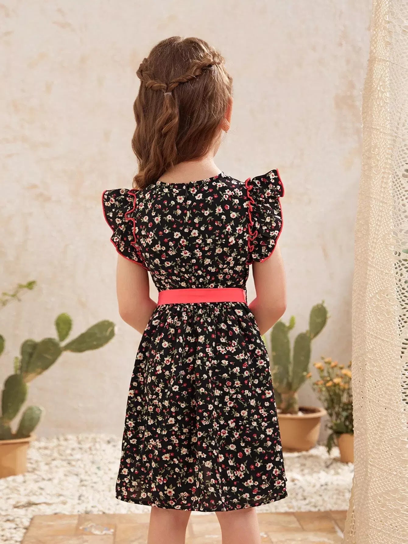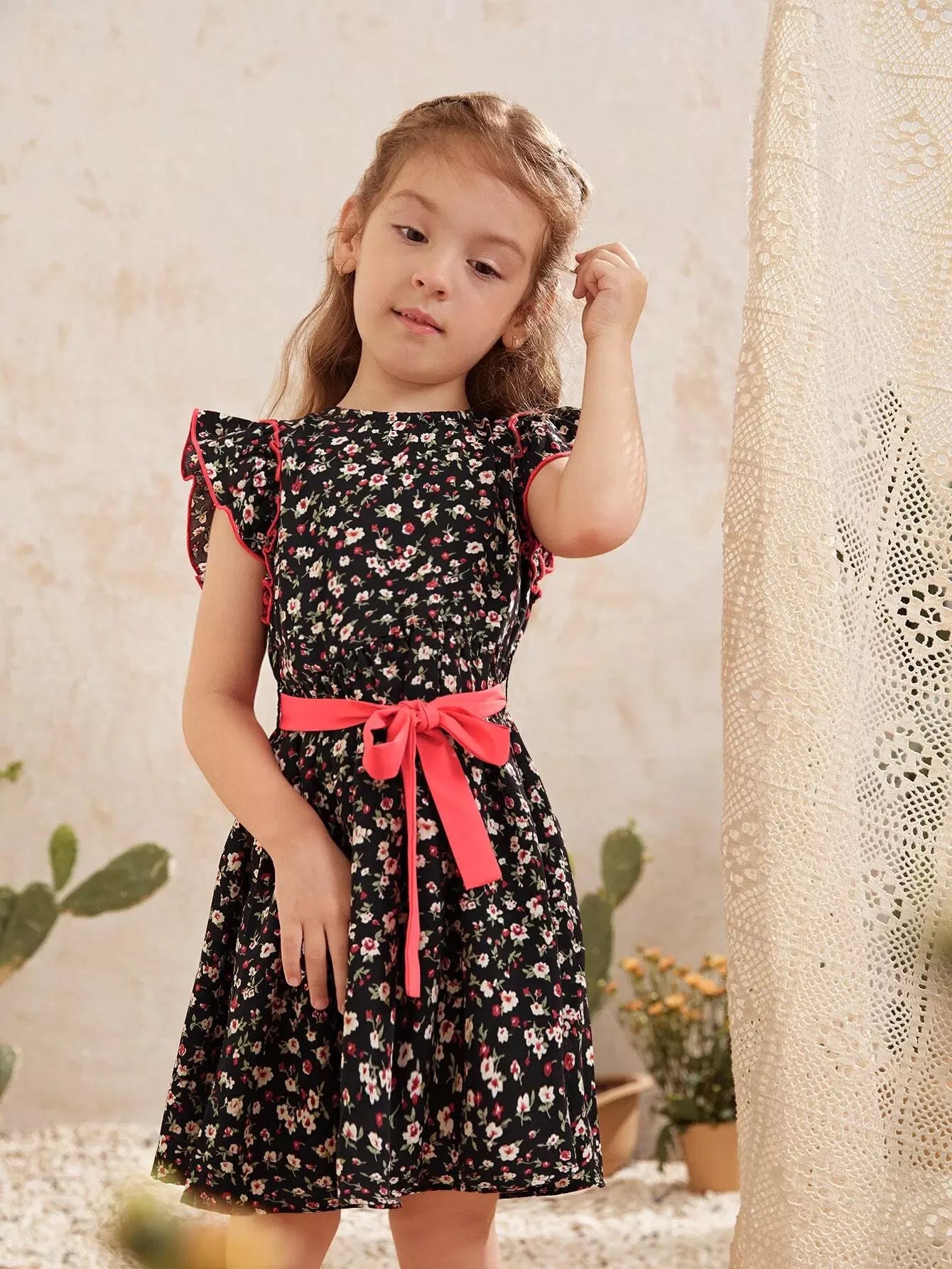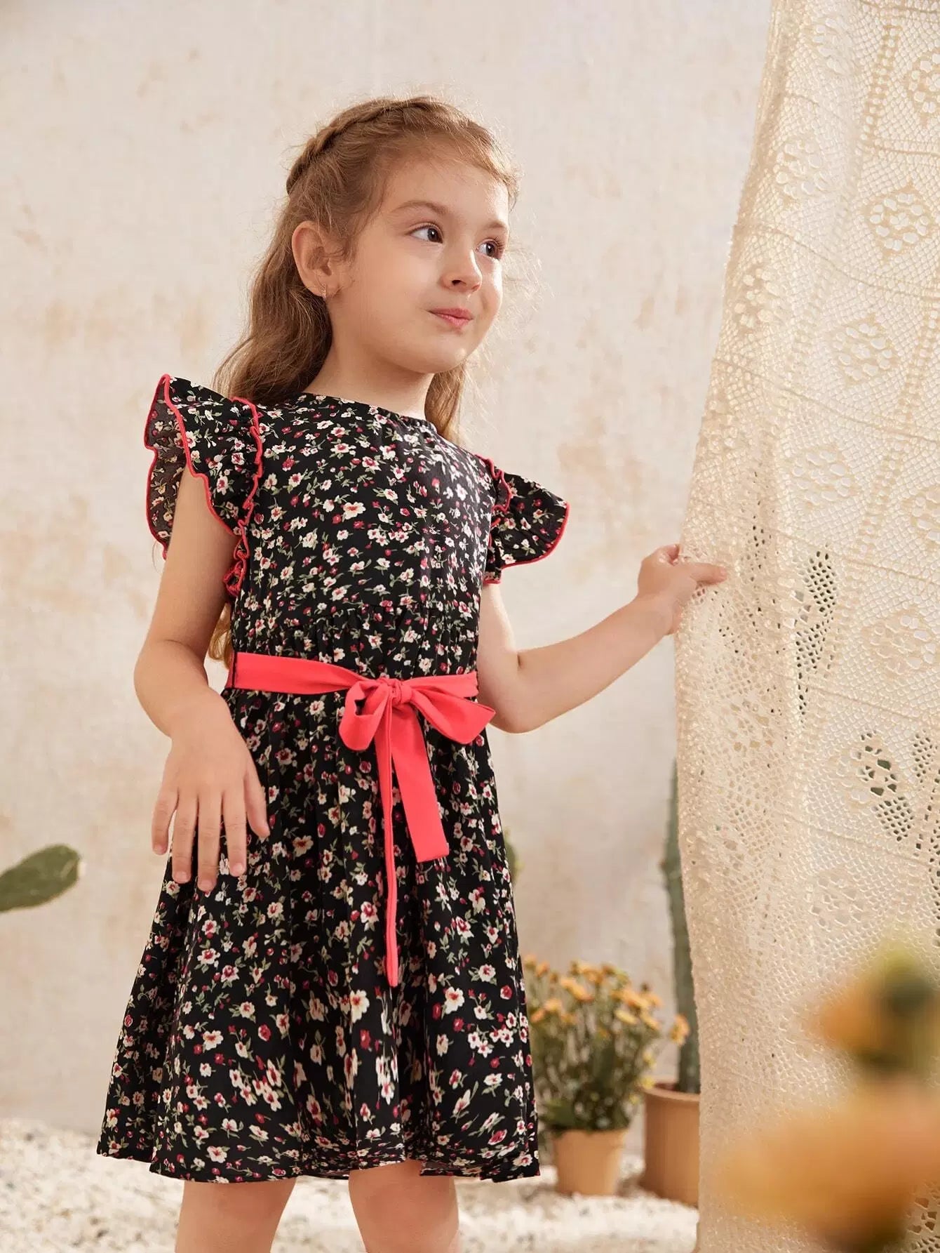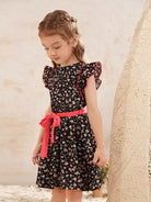 Toddler Girls Ruffle Trim Ditsy Floral Dress Without Belt