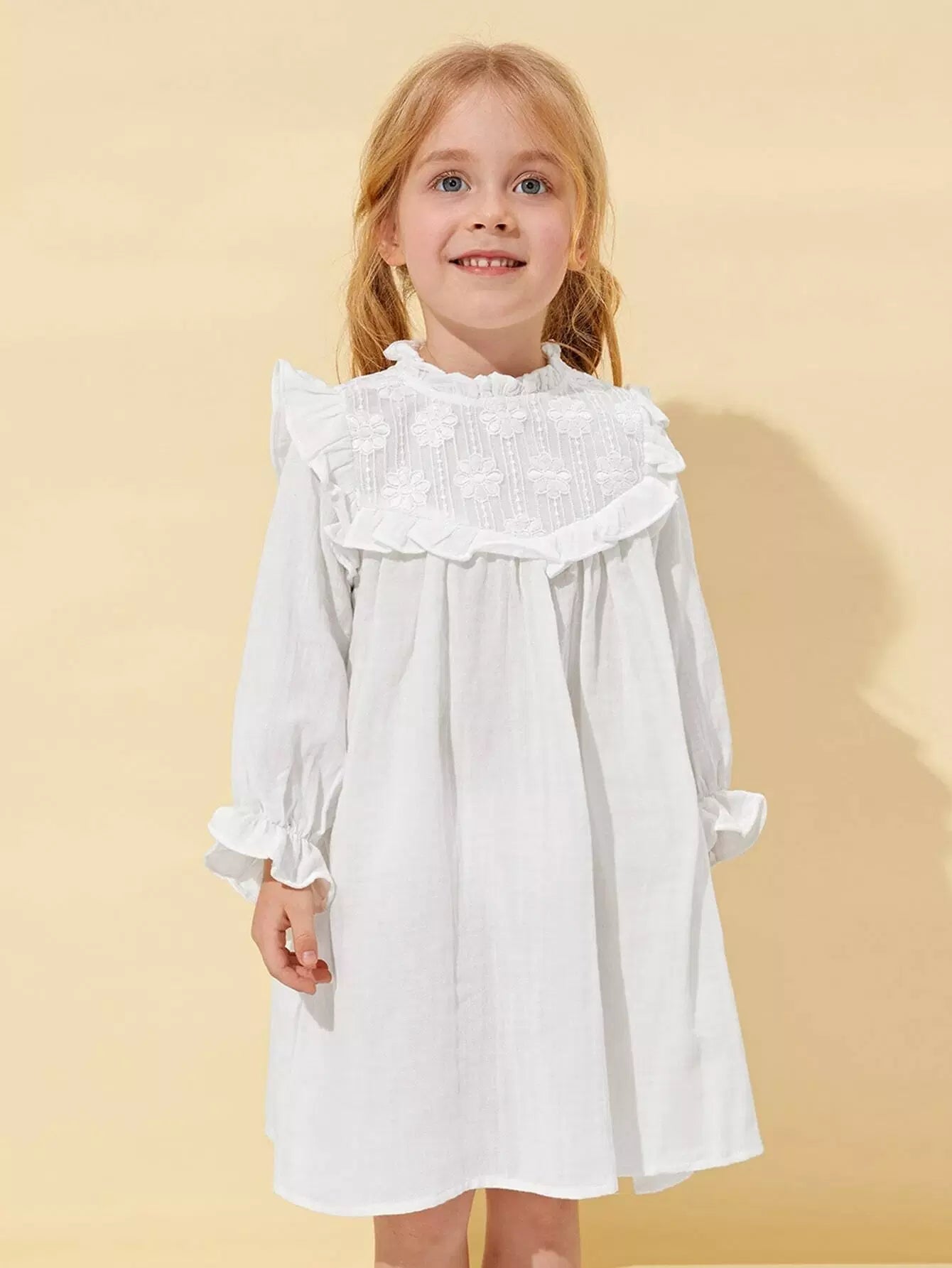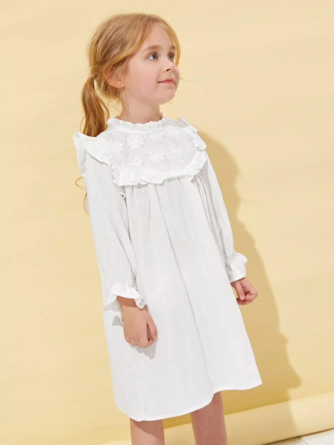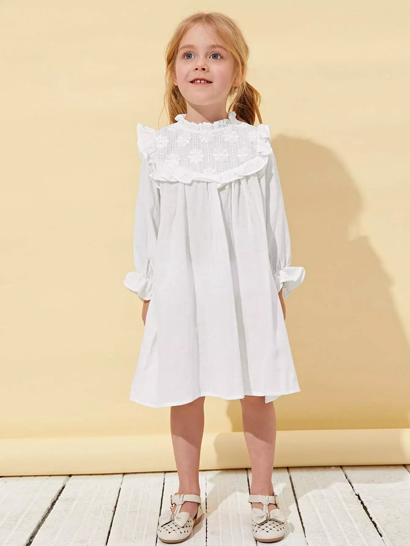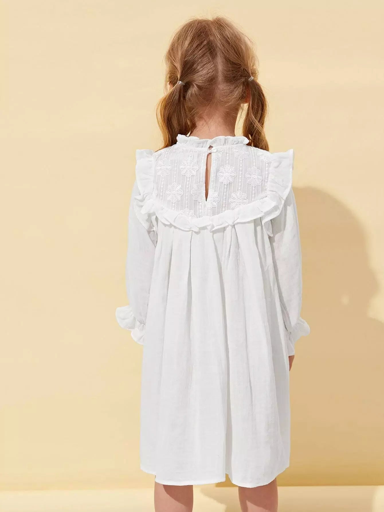 Toddler Girls Ruffle Trim Embroidered Yoke Smock Dress