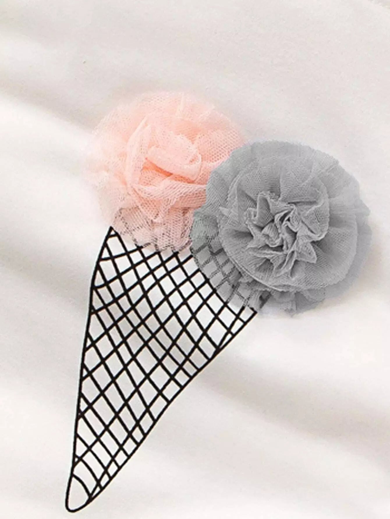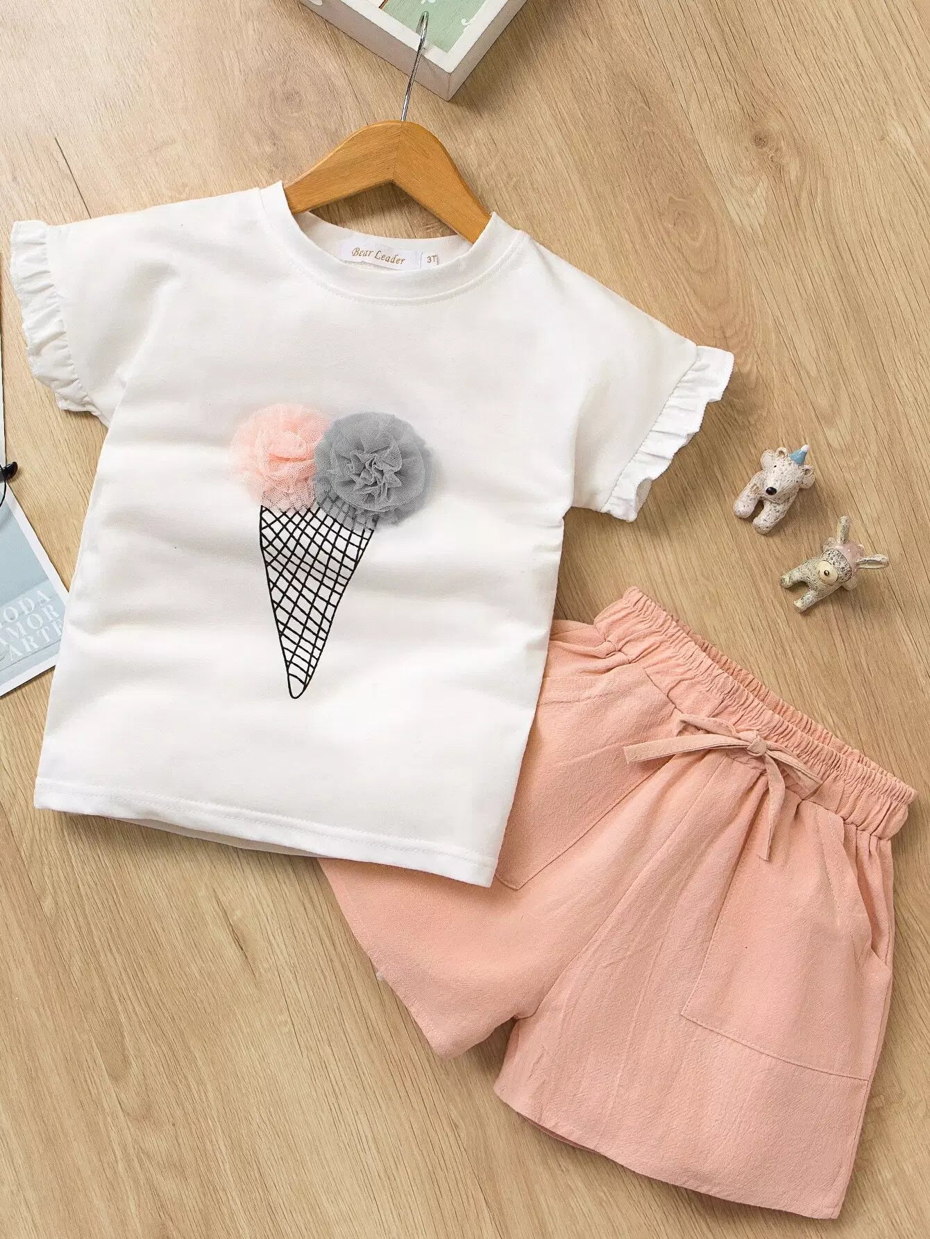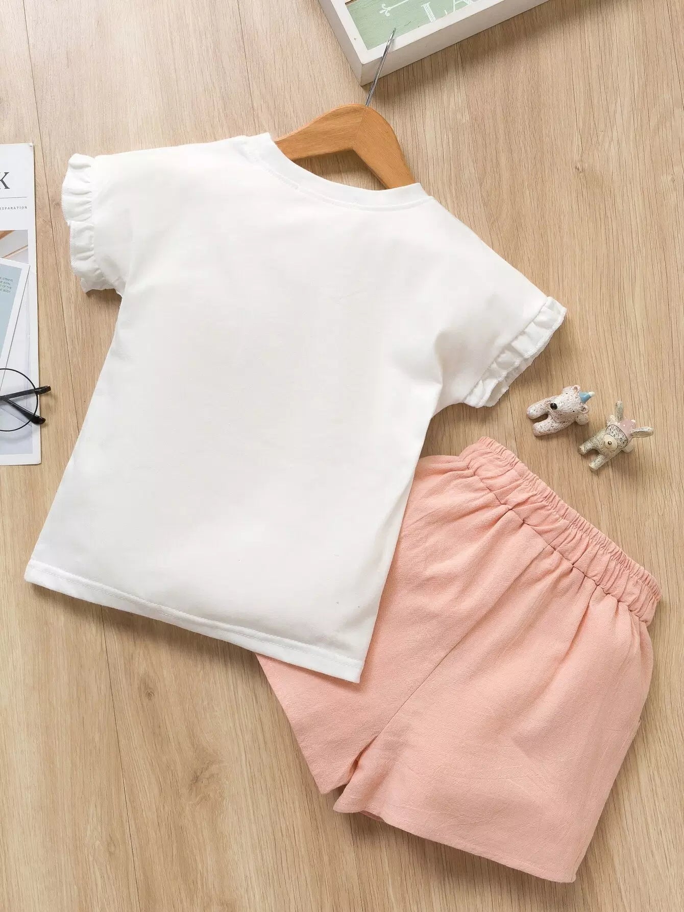 Toddler Girls Ruffle Trim Mesh Patched Tee With Shorts
