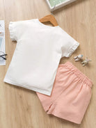 Kids - Toddler Girls Ruffle Trim Mesh Patched Tee With Shorts