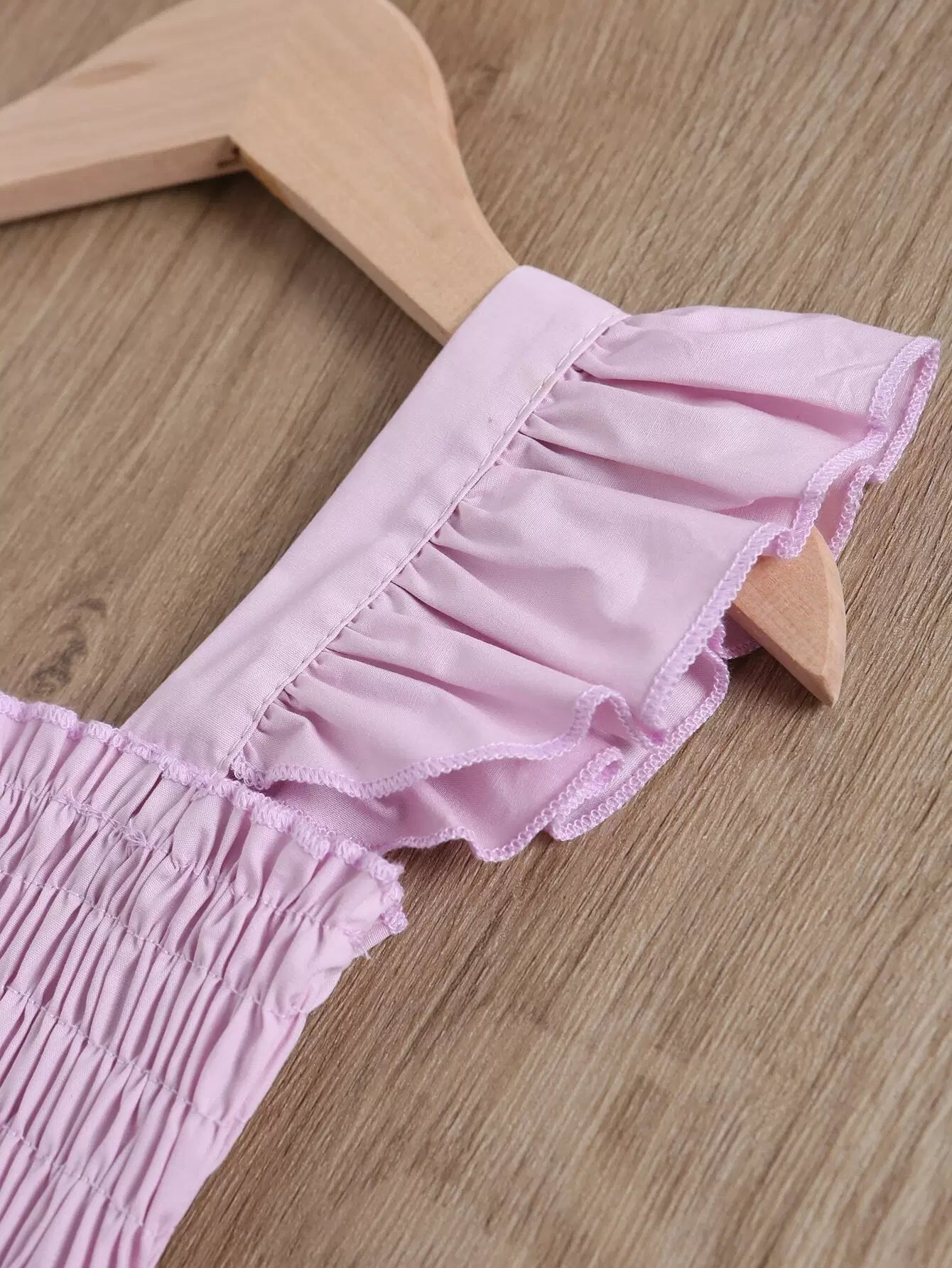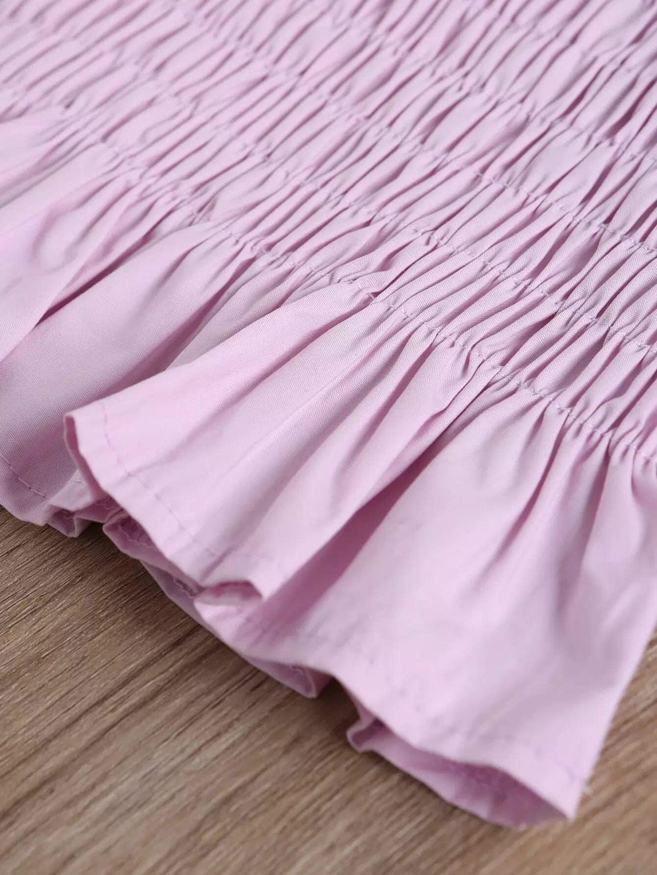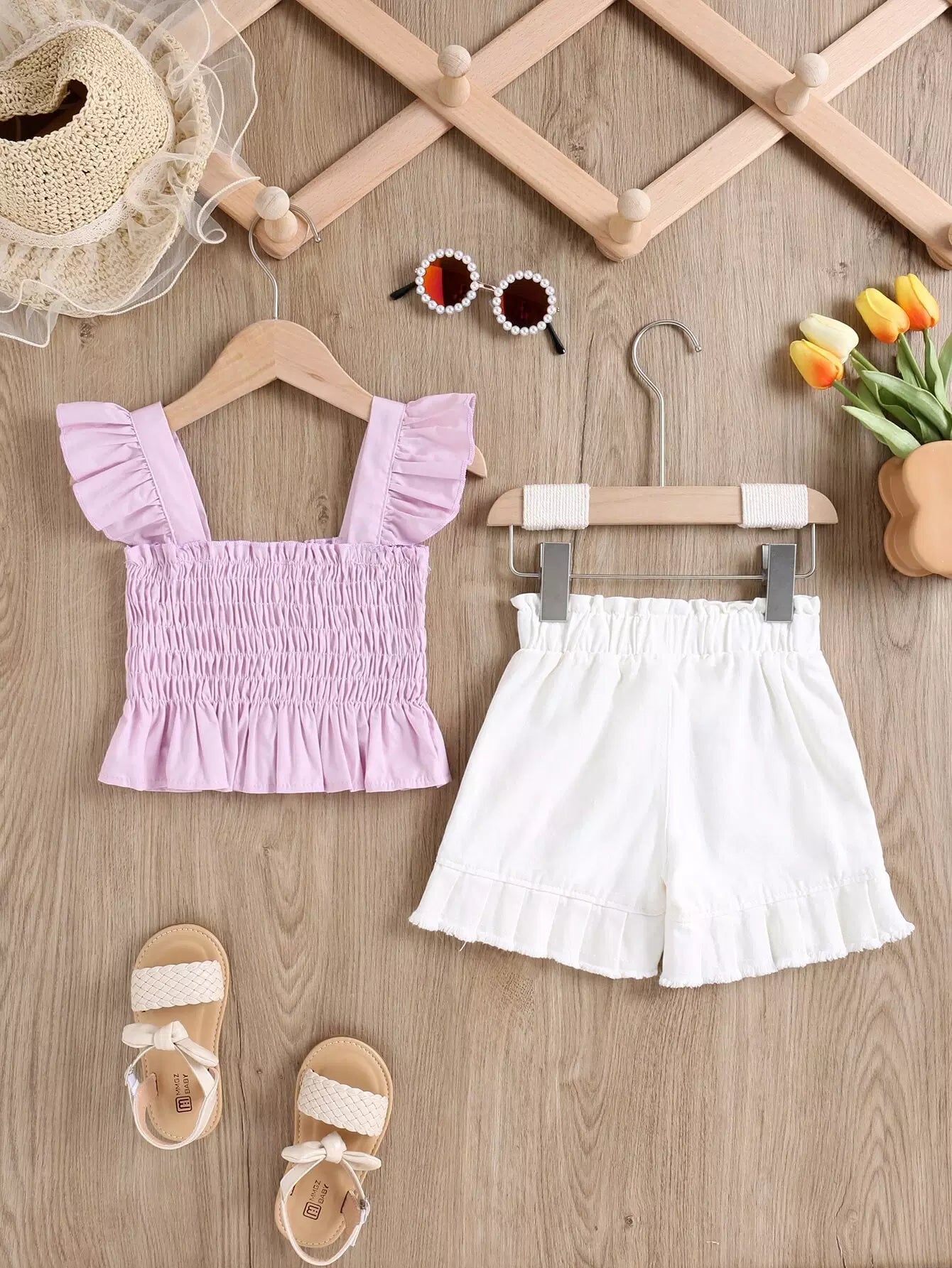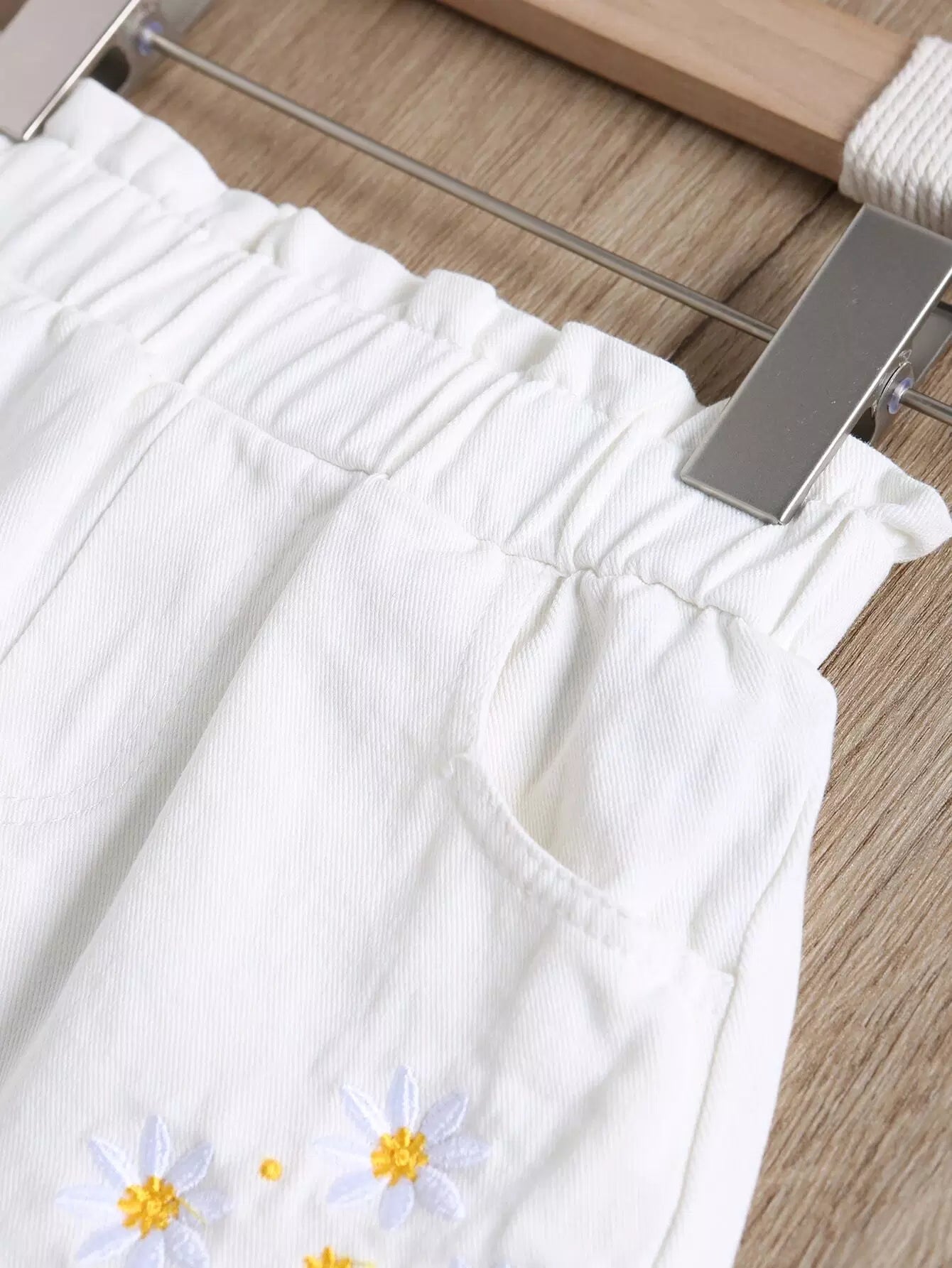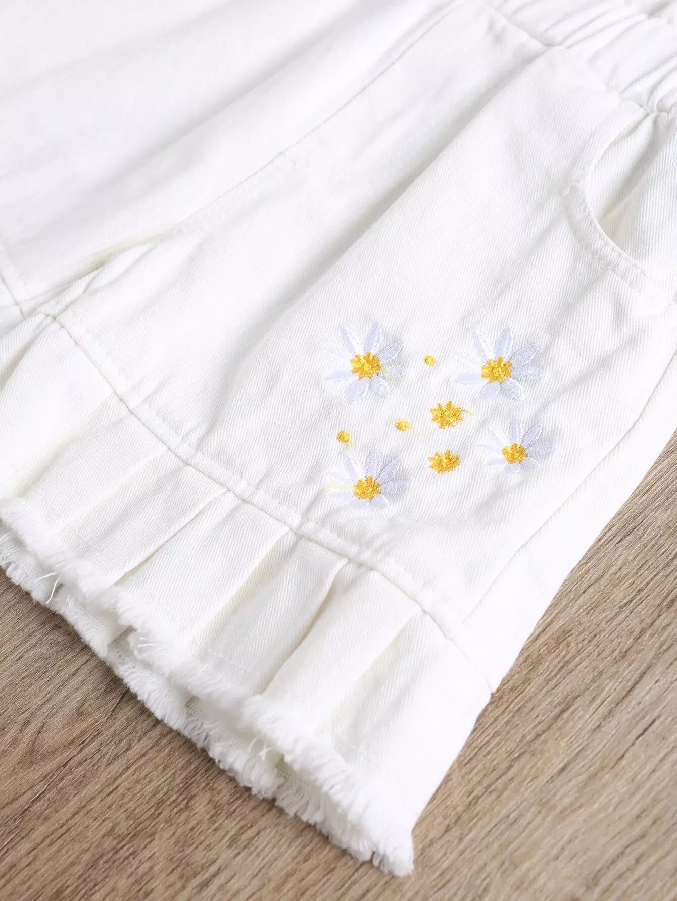 Toddler Girls Ruffle Trim Shirred Top And Floral Embroidery Shorts