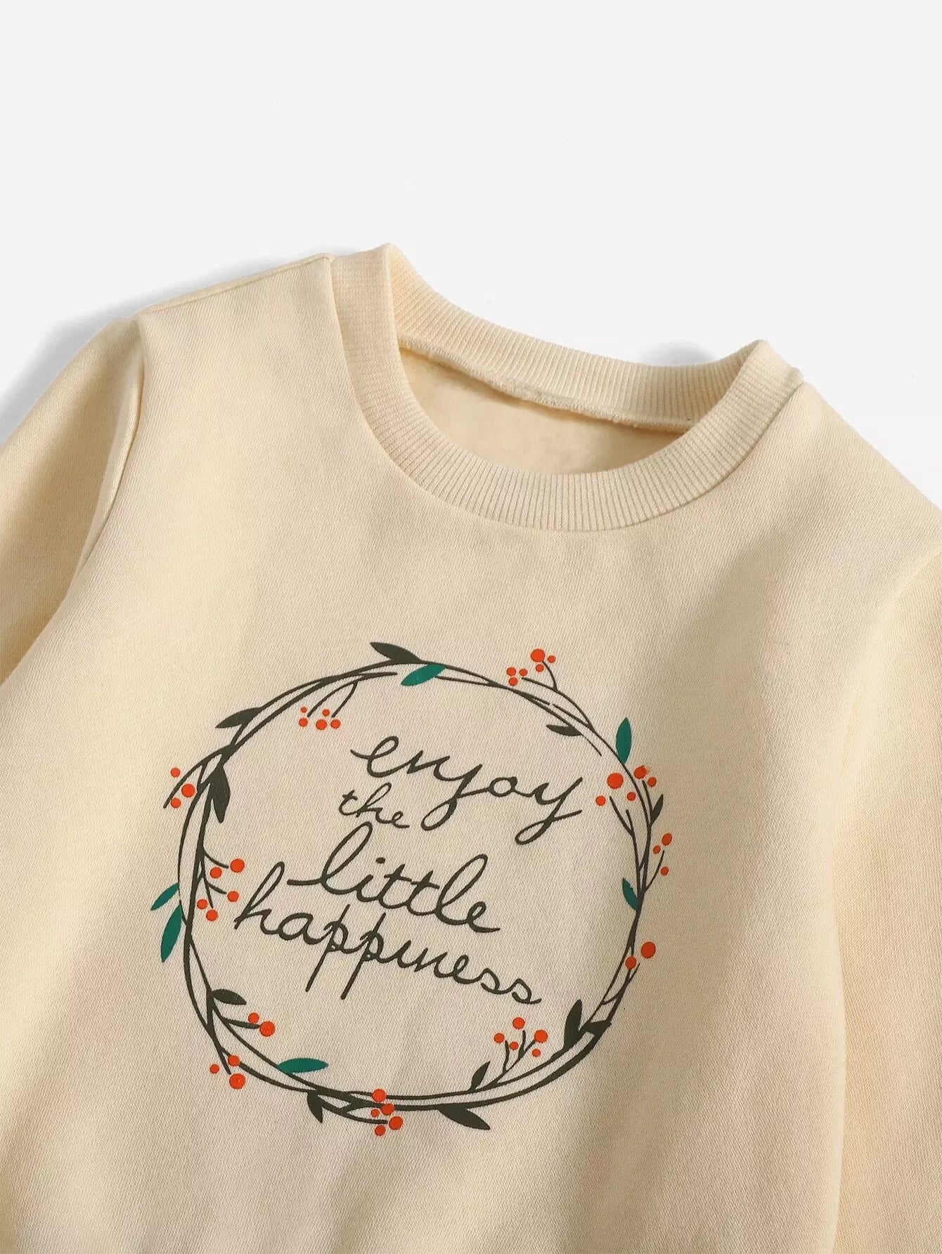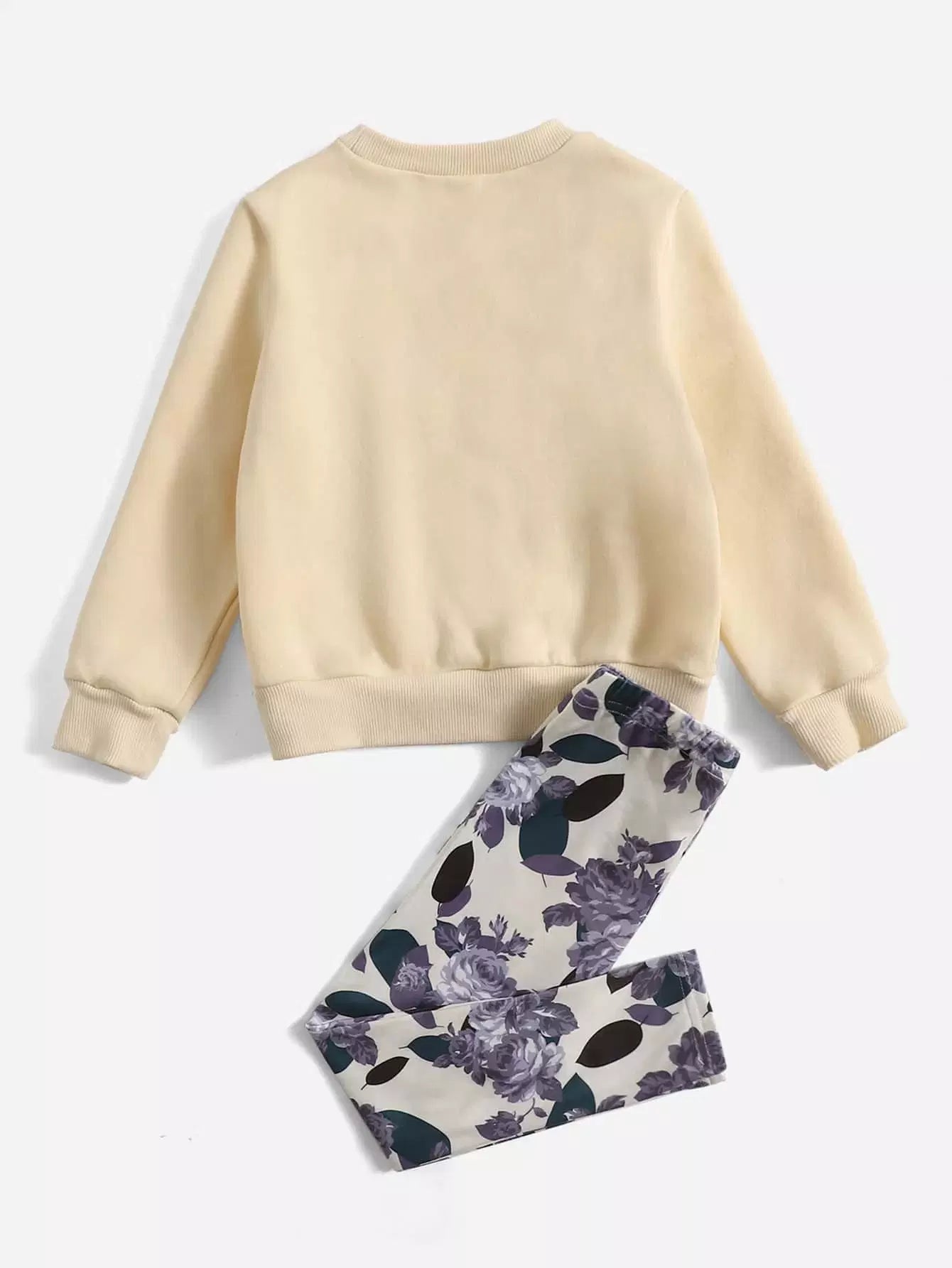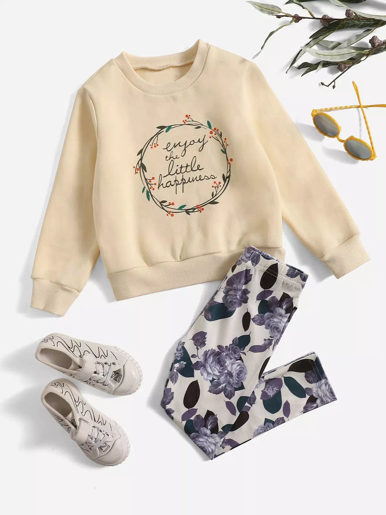 Toddler Girls Slogan And Plant Graphic Thermal Pullover & Floral Print Leggings