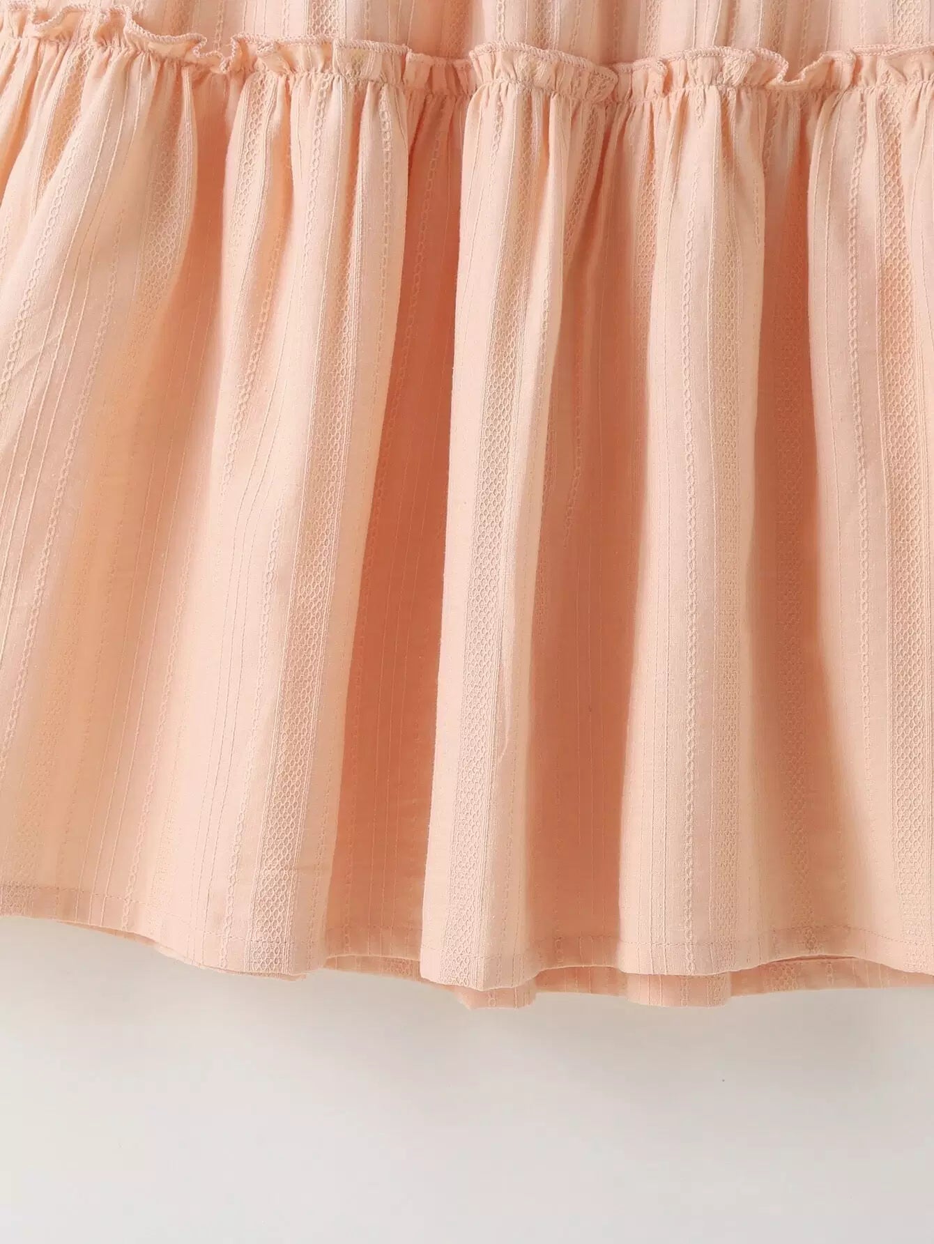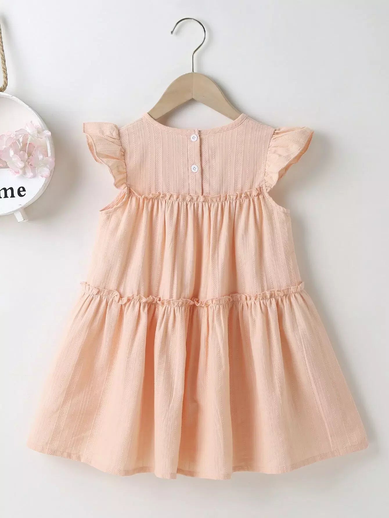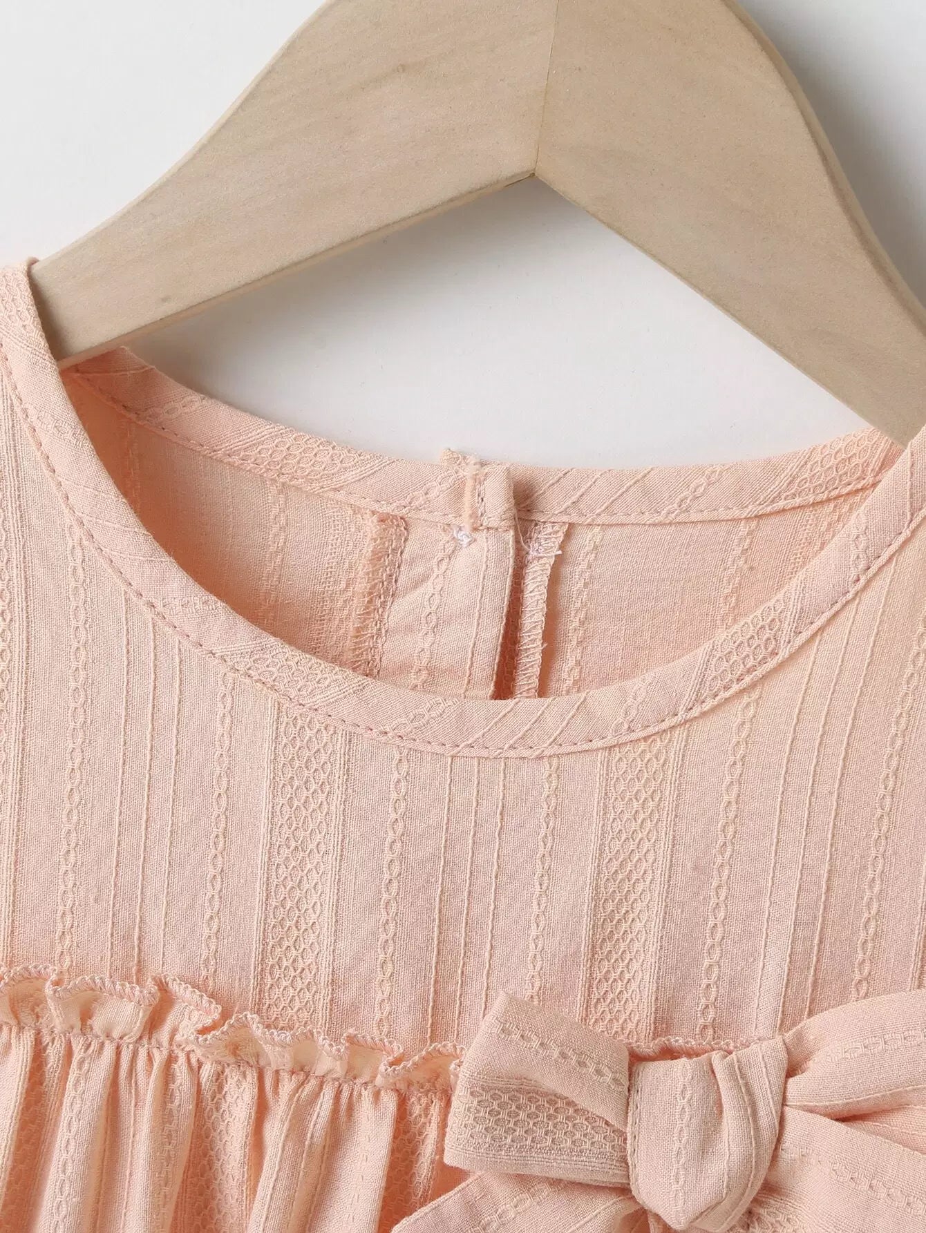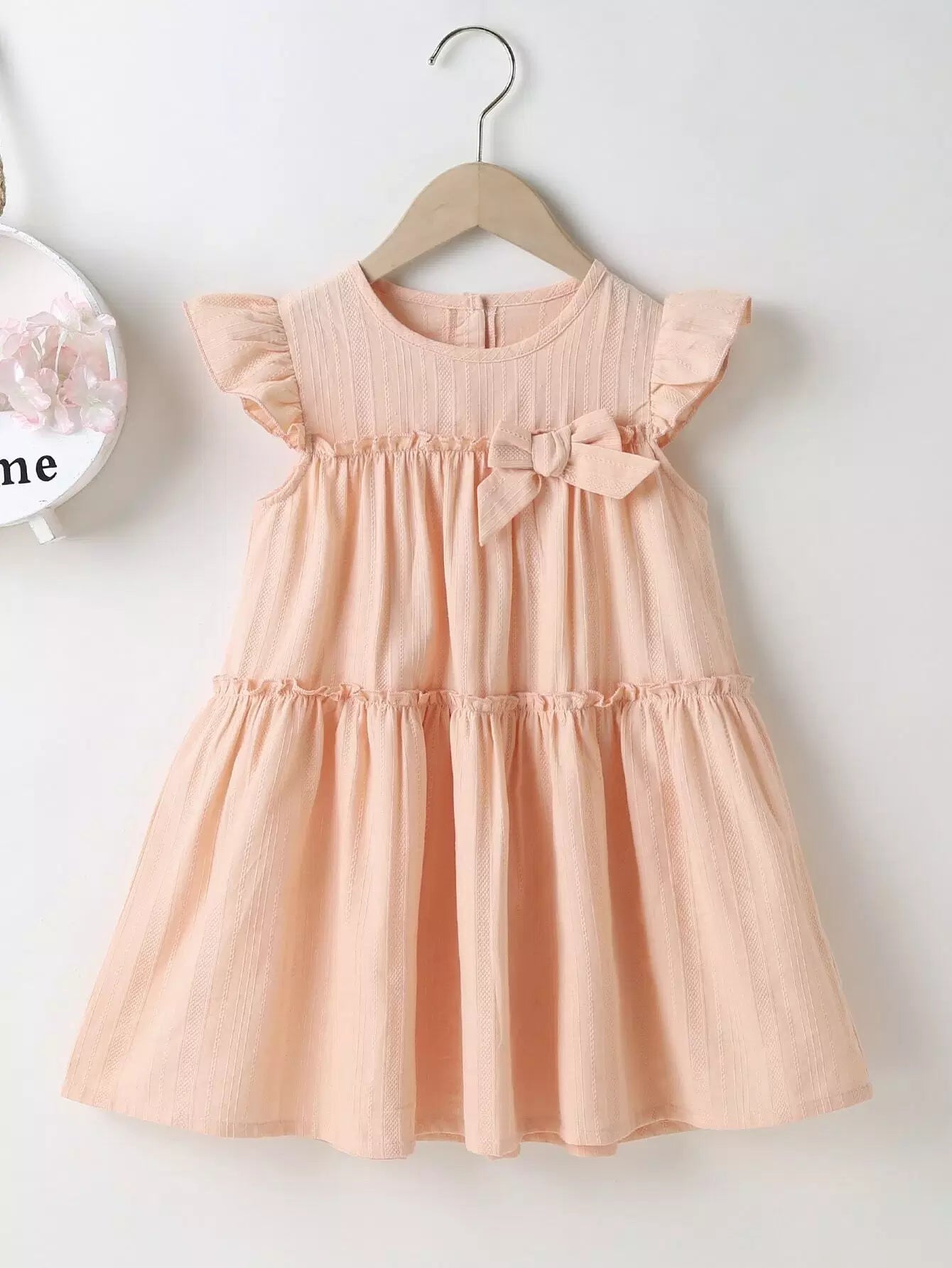 Toddler Girls Solid Bow Front Frill Trim Smock Dress