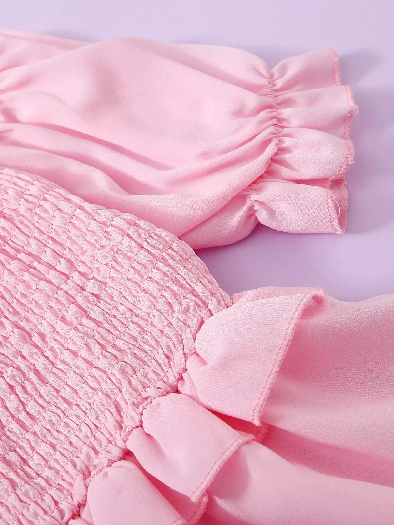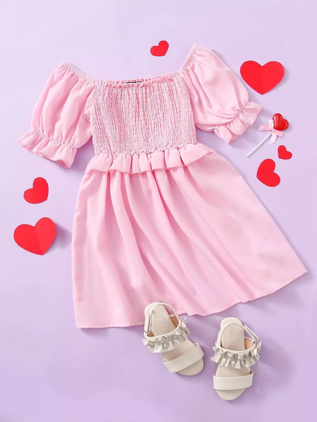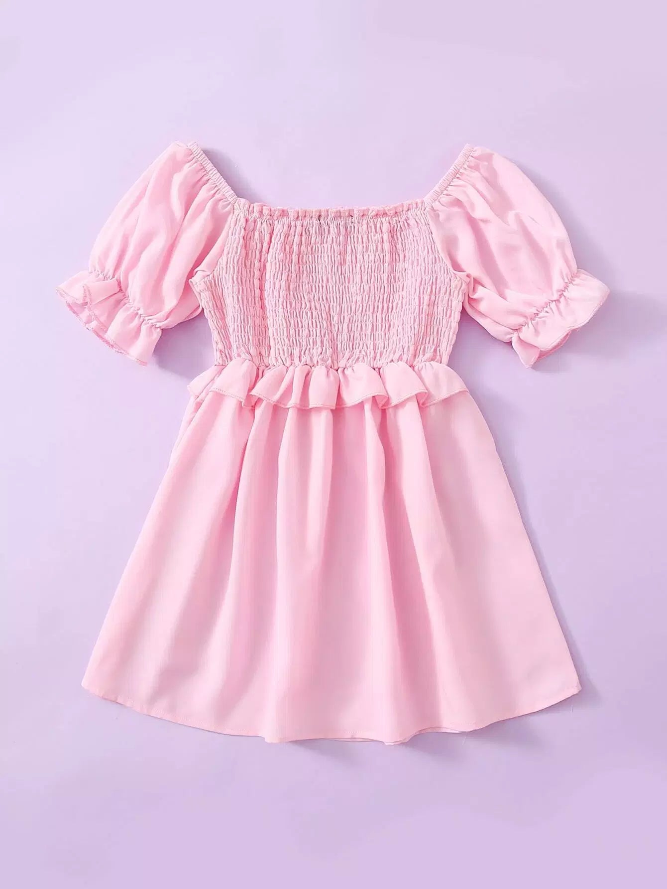Kids - Toddler Girls Solid Shirred Ruffle A-line Dress