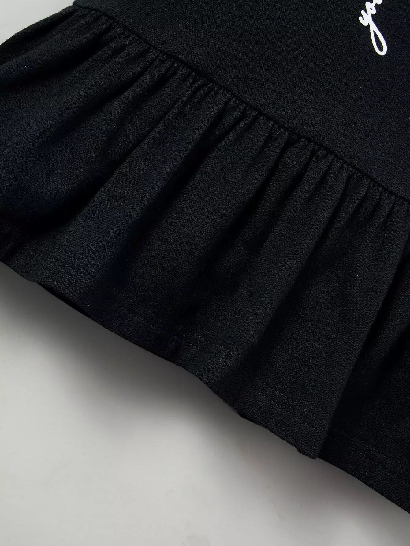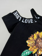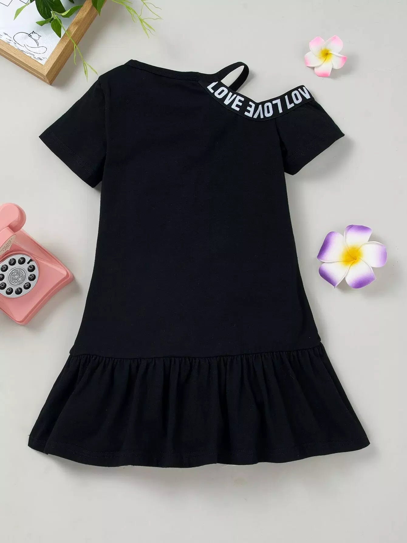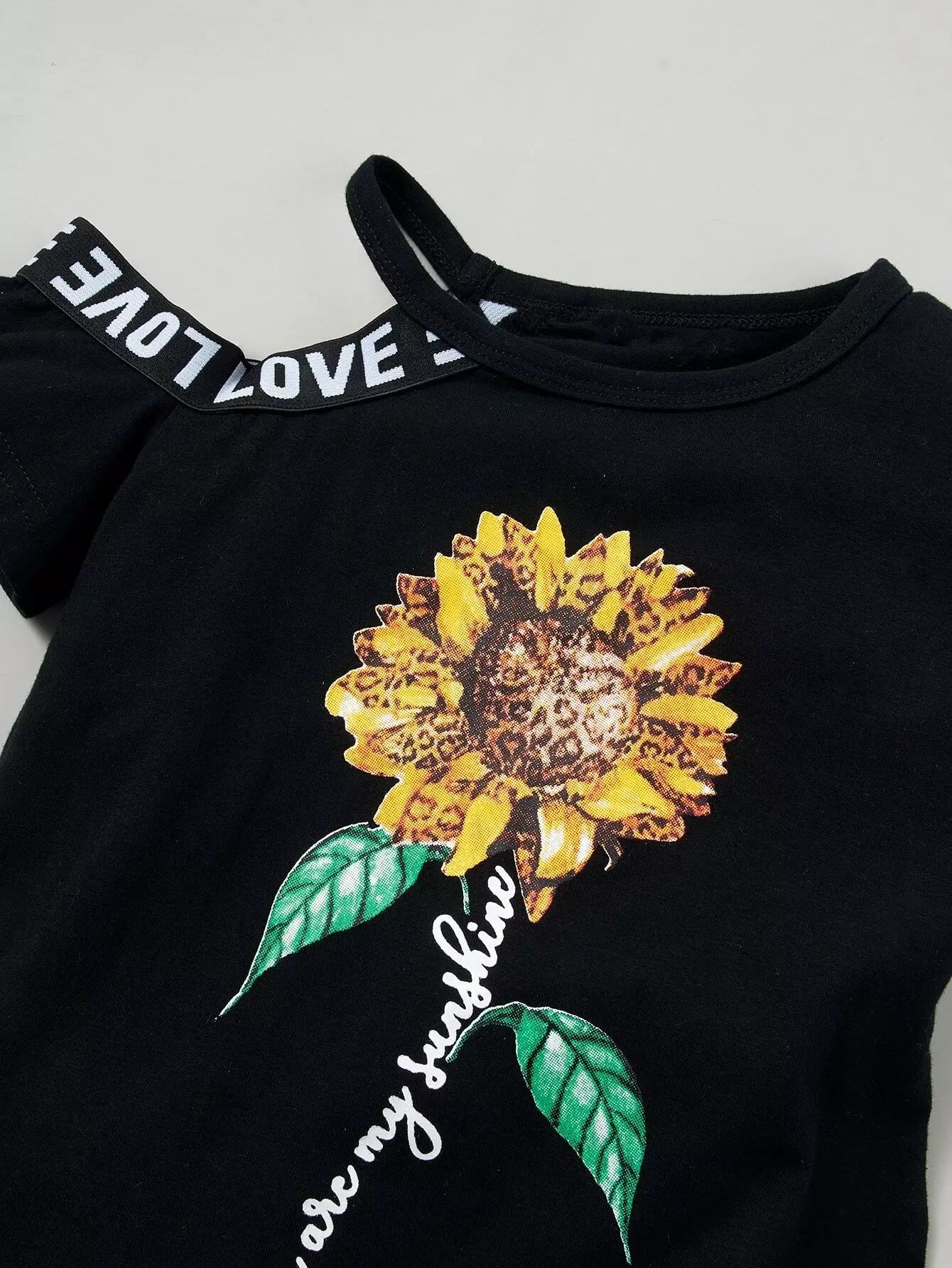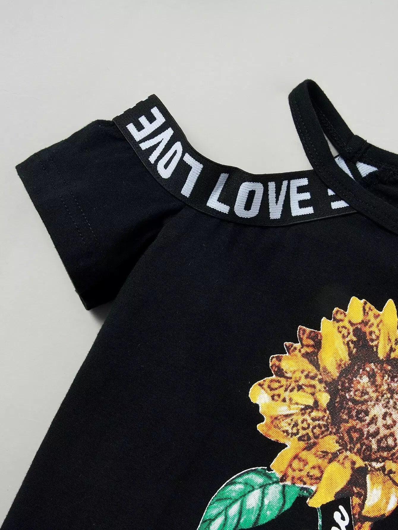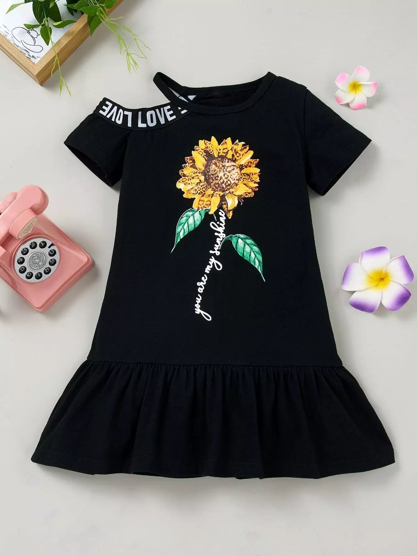 Toddler Girls Sunflower And Slogan Graphic Asymmetrical Neck Dress