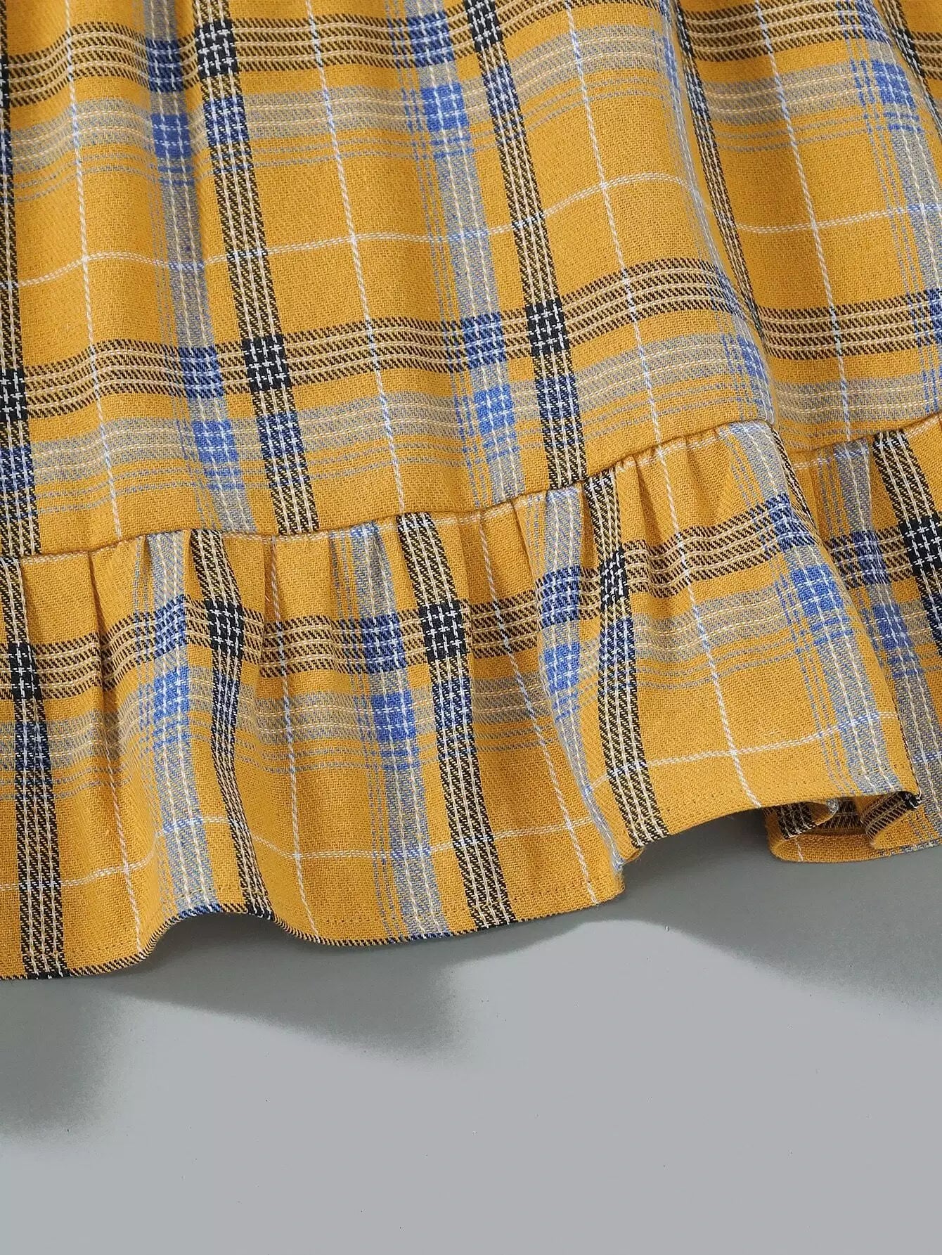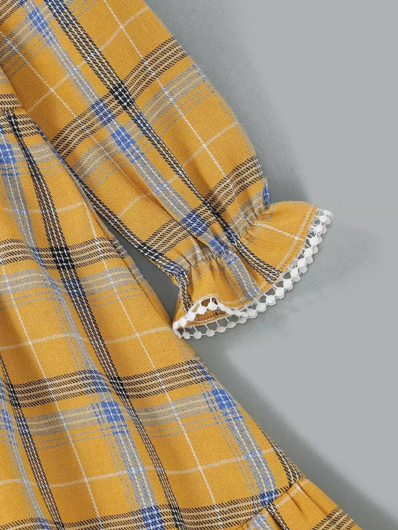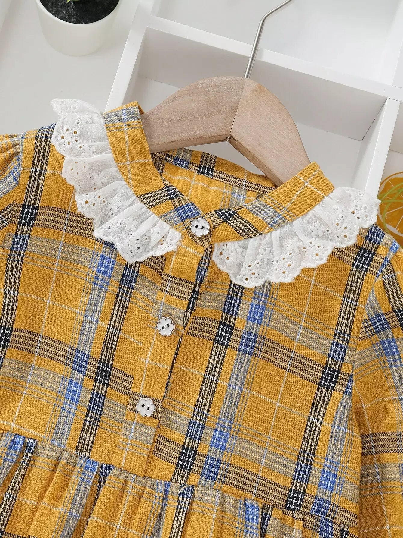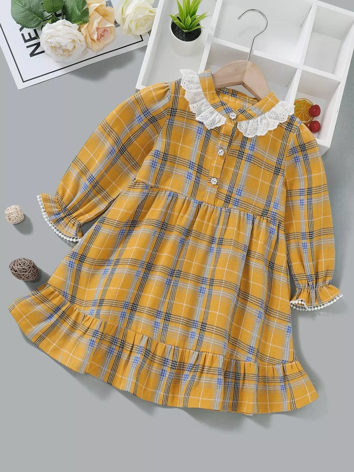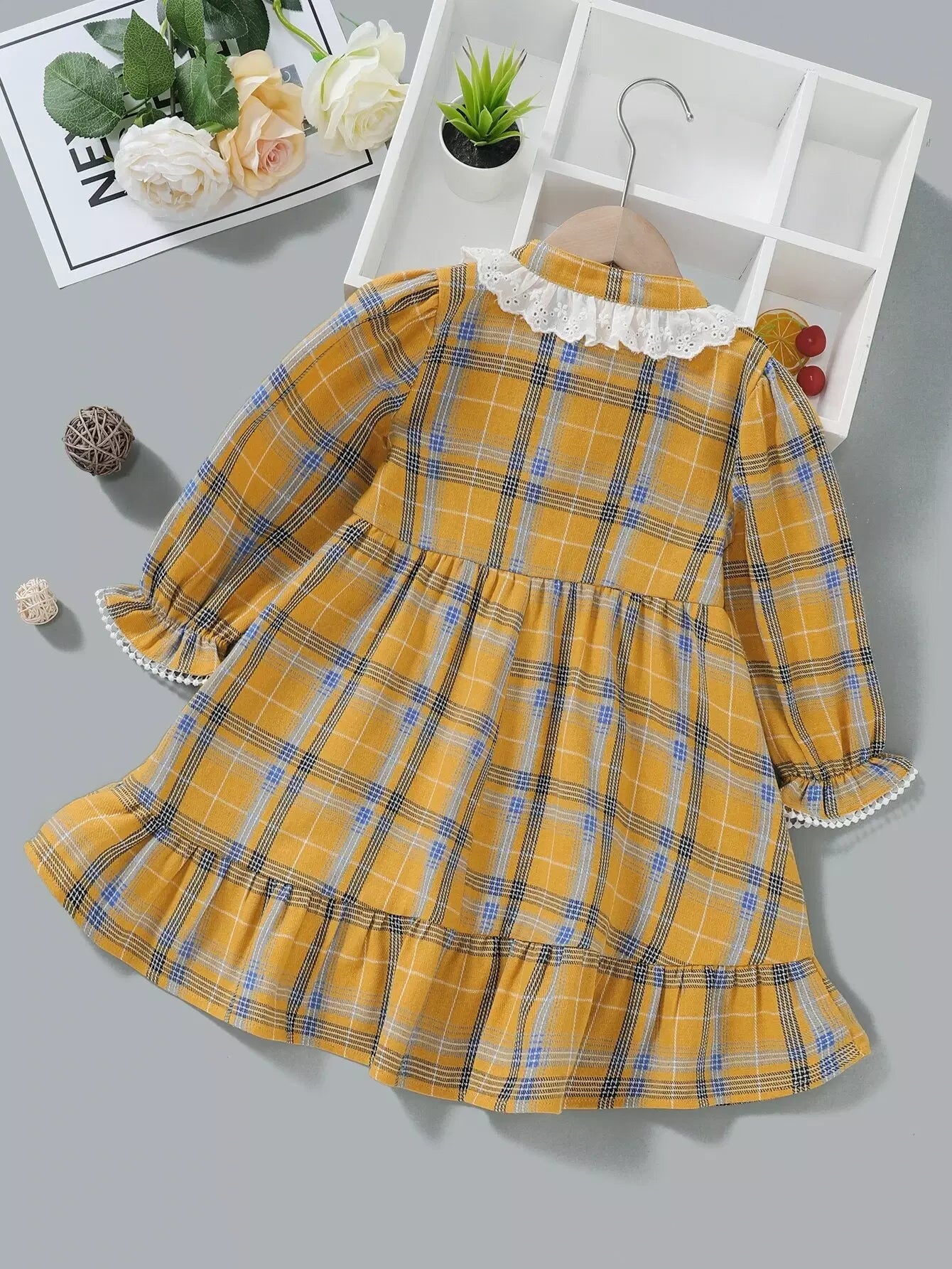 Toddler Girls Tartan Plaid Schiffy Trim Smock Dress