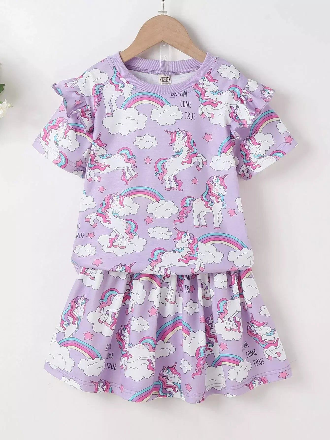 Toddler Girls Unicorn and Slogan Print Top & Skirt Set
