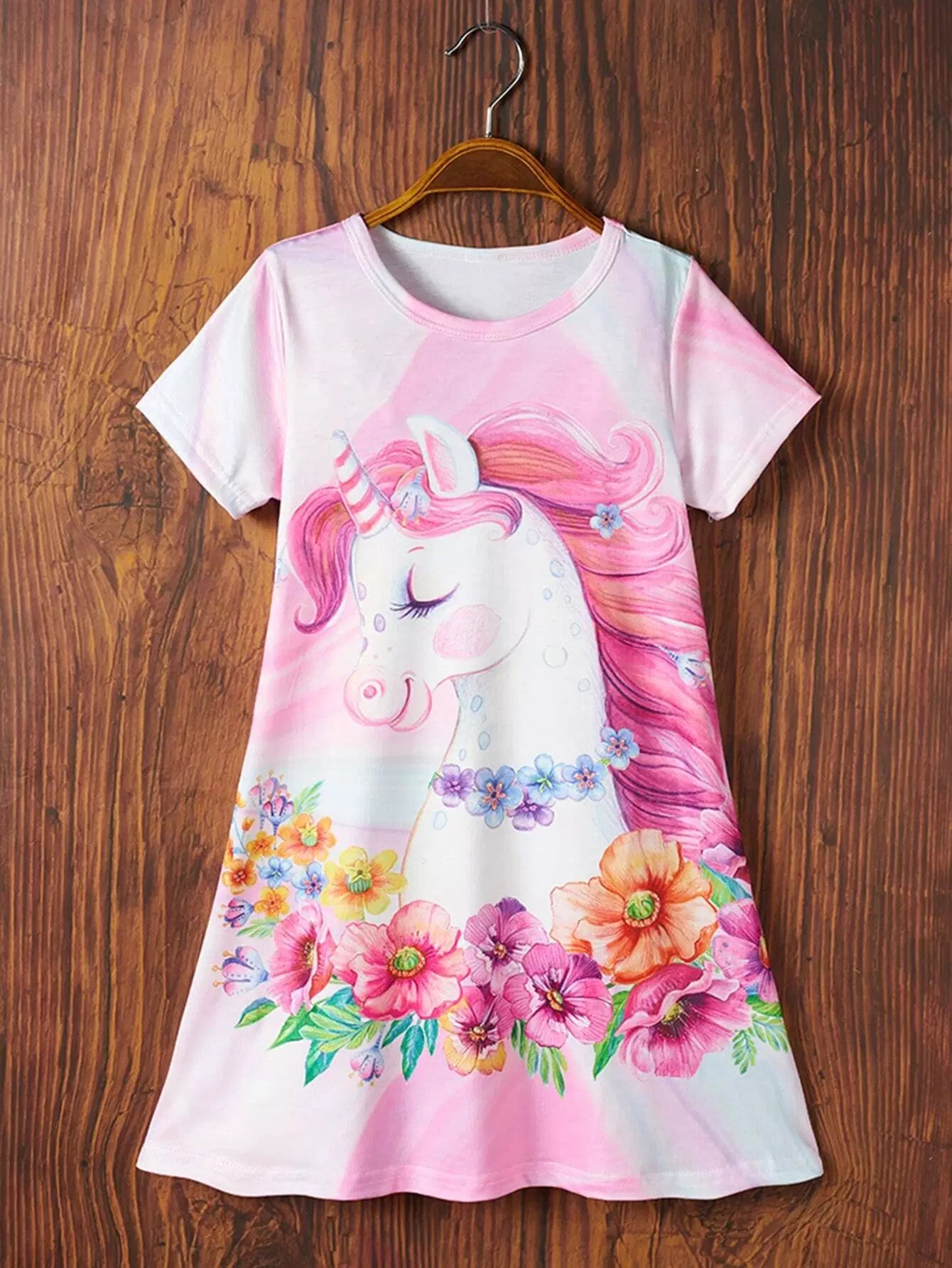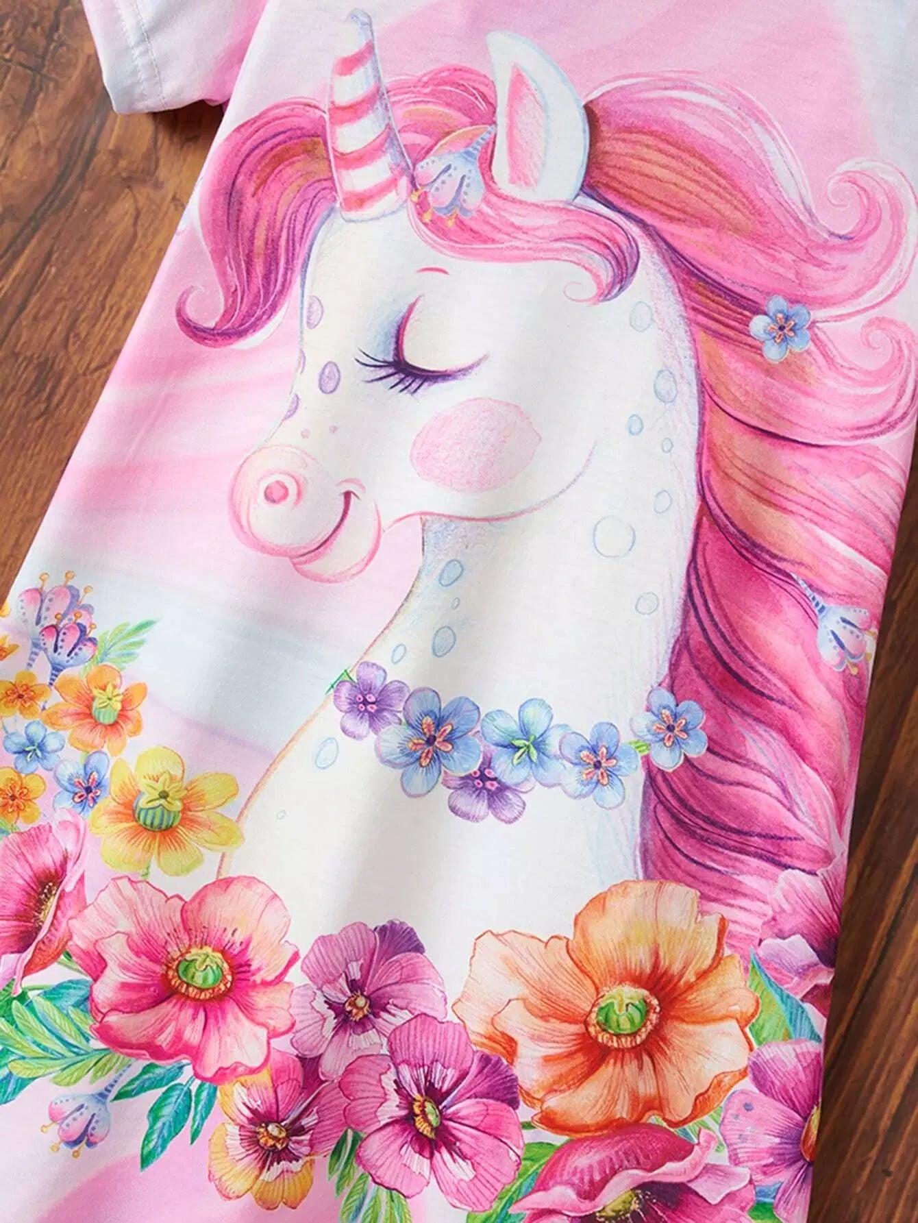 Toddler Girls Unicorn & Floral Print Tee Dress