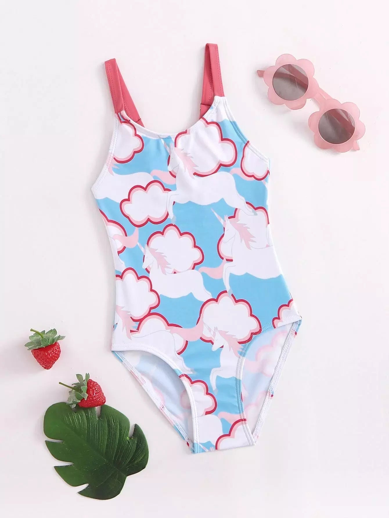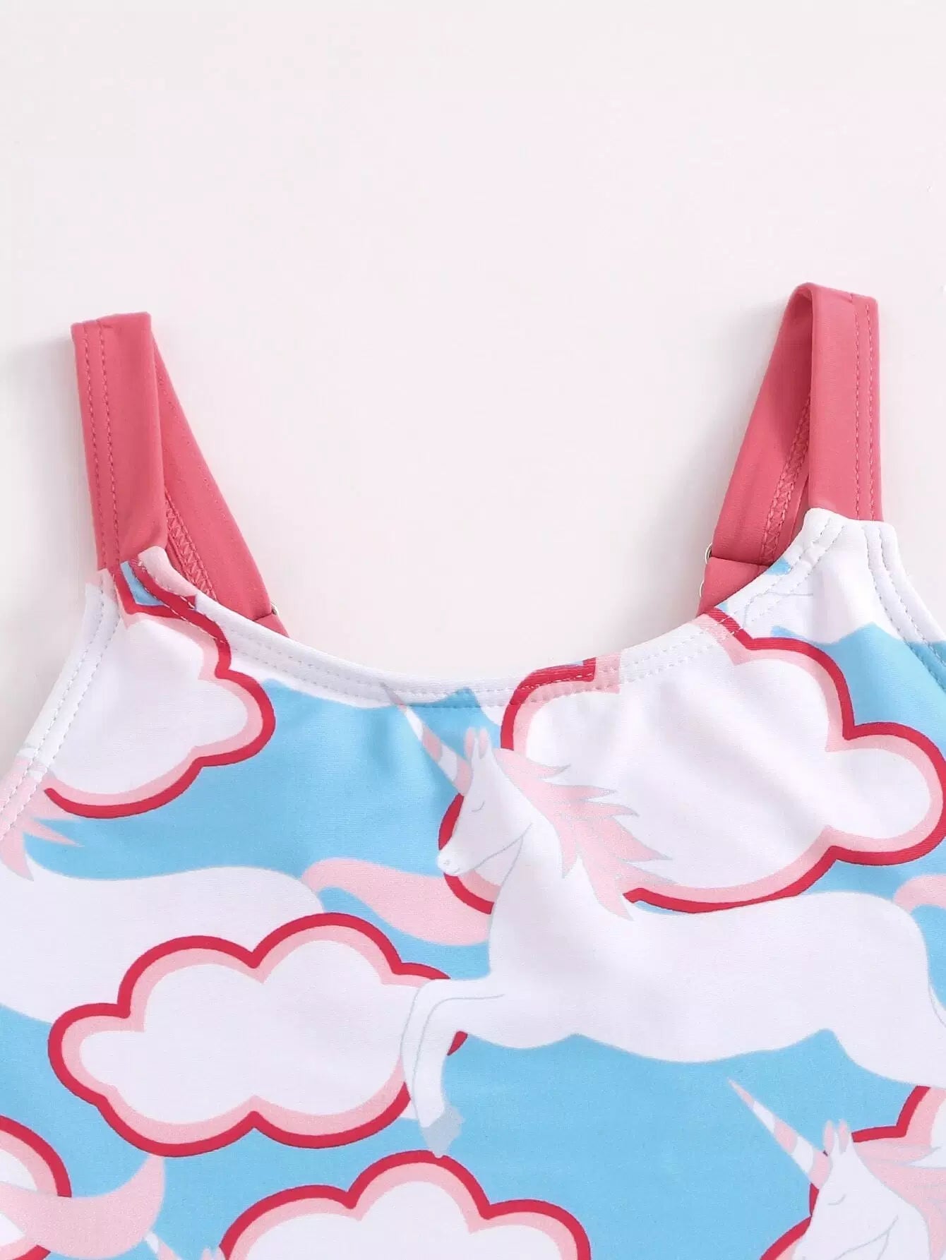 Toddler Girls Unicorn Pattern One Piece Swimsuit