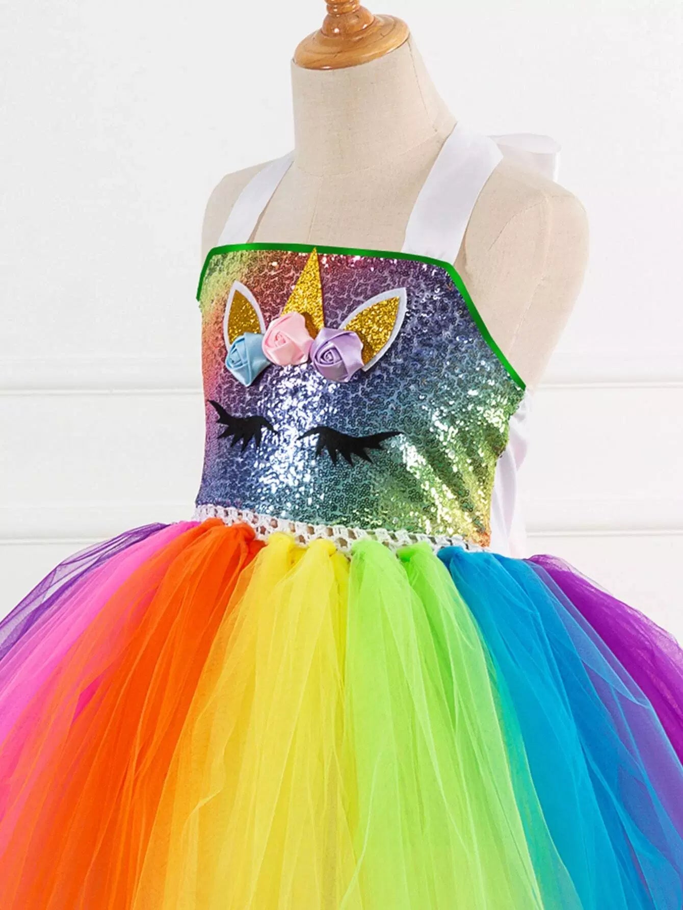 Toddler Girls Unicorn Pattern Rainbow Tutu Party Dress & Headband & Wings