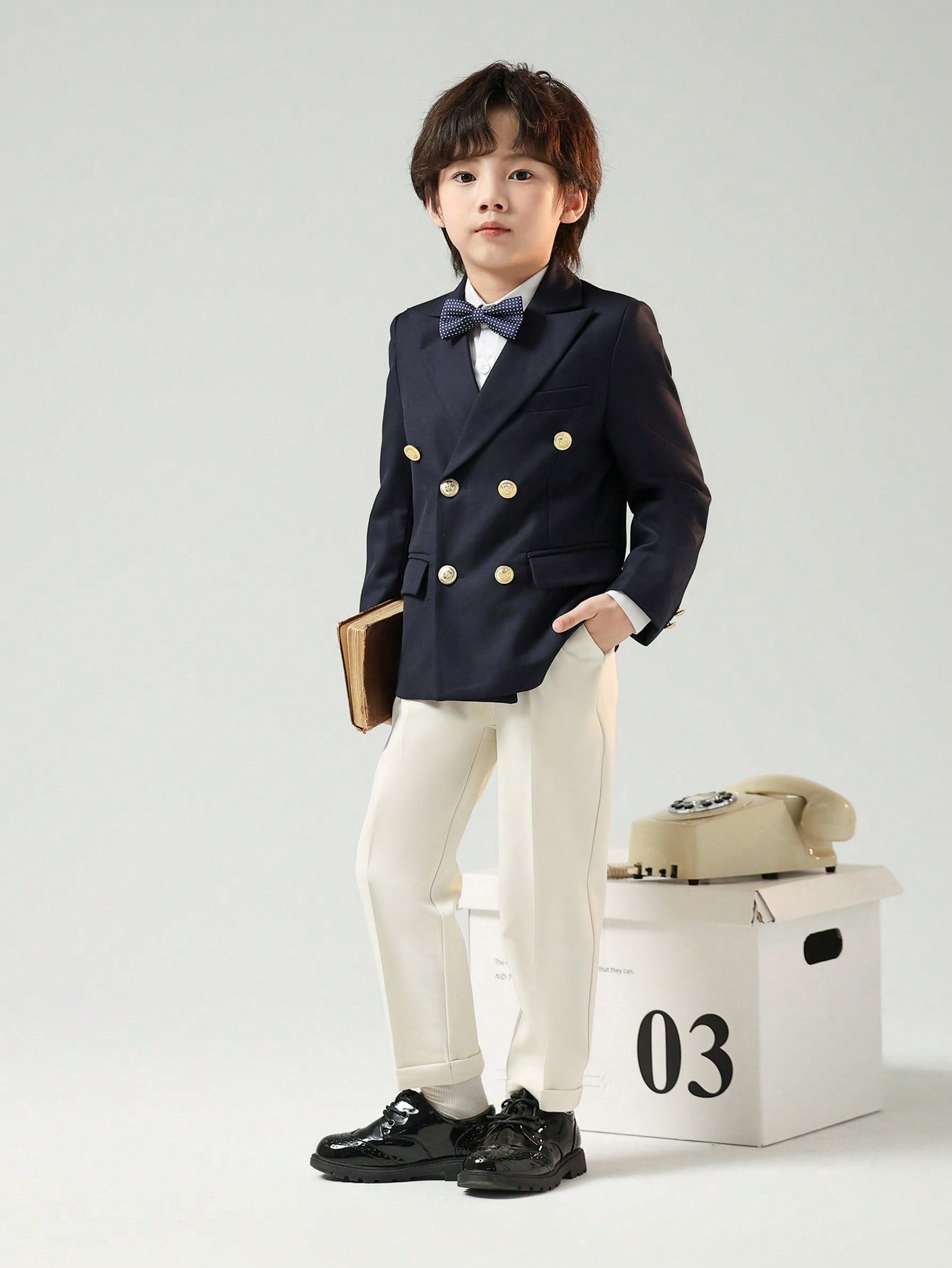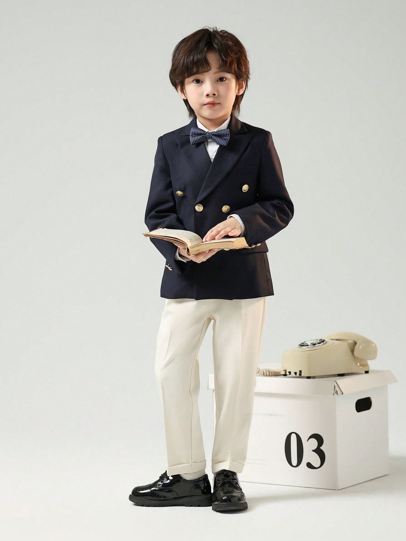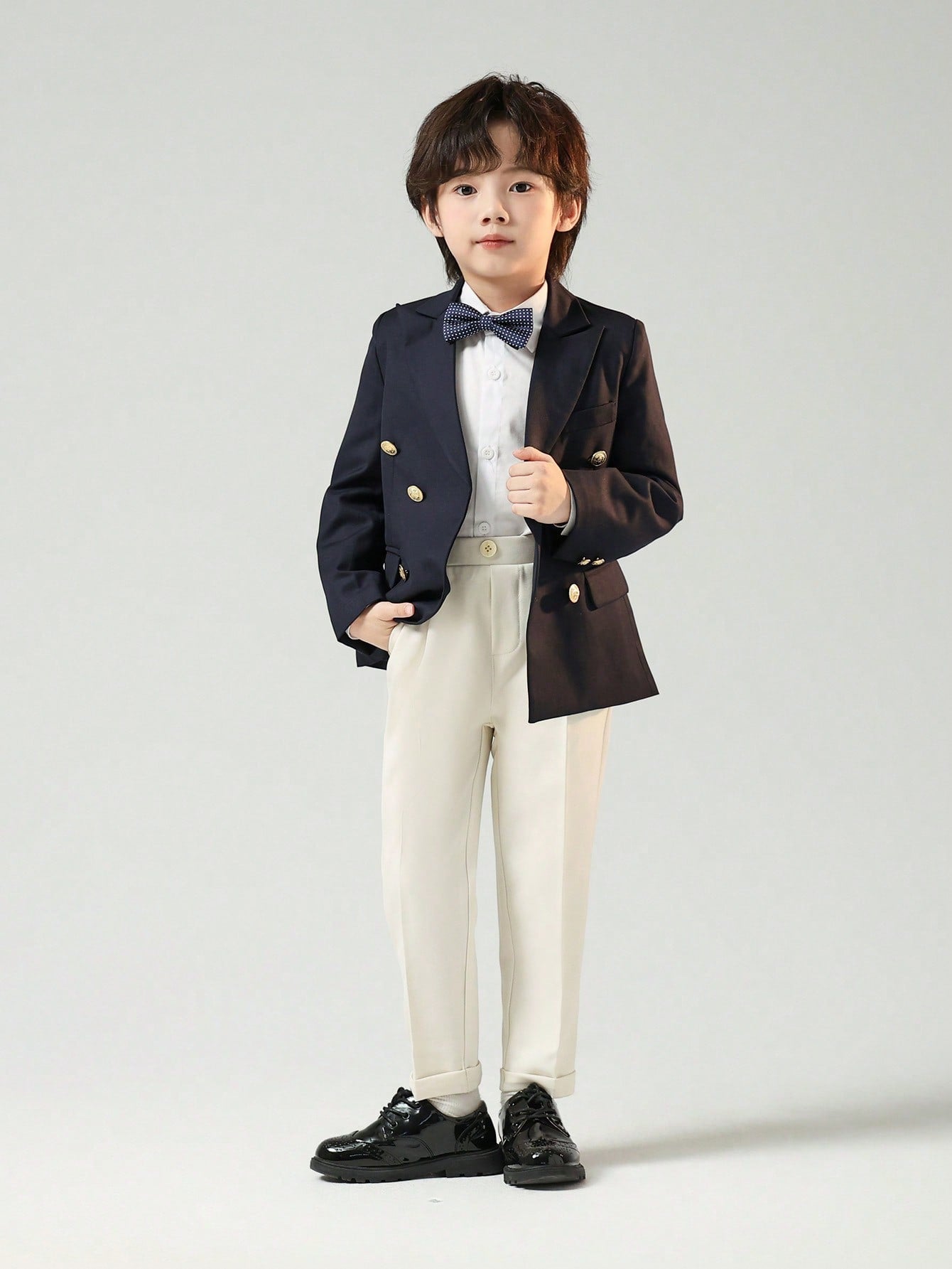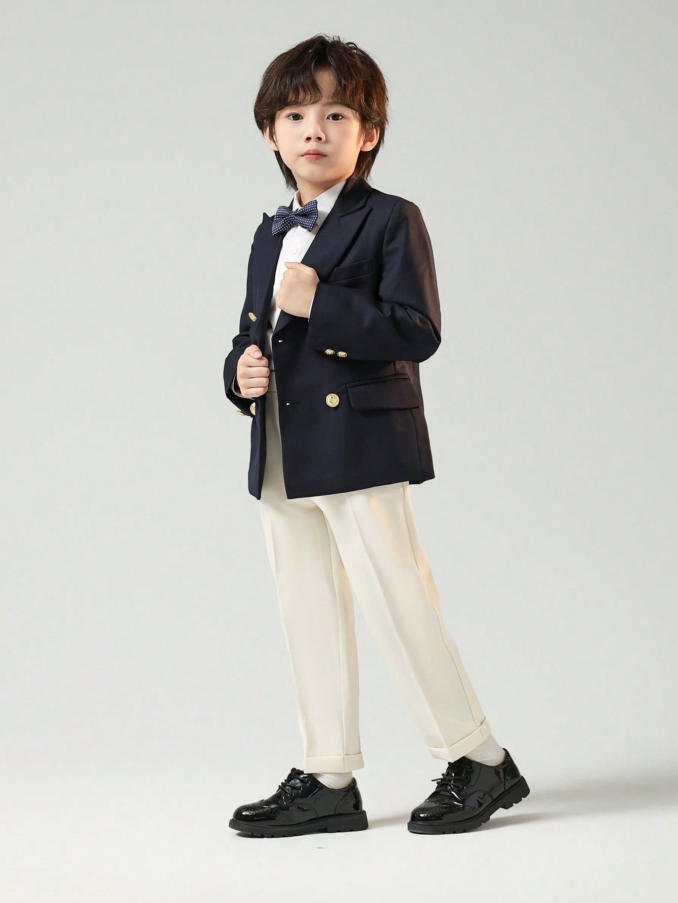 3pcs Boys Suit Set, New Flower Boy Wedding Formal Outfit, Includes Blazer Jacket + Pants + Bow Tie, Suitable