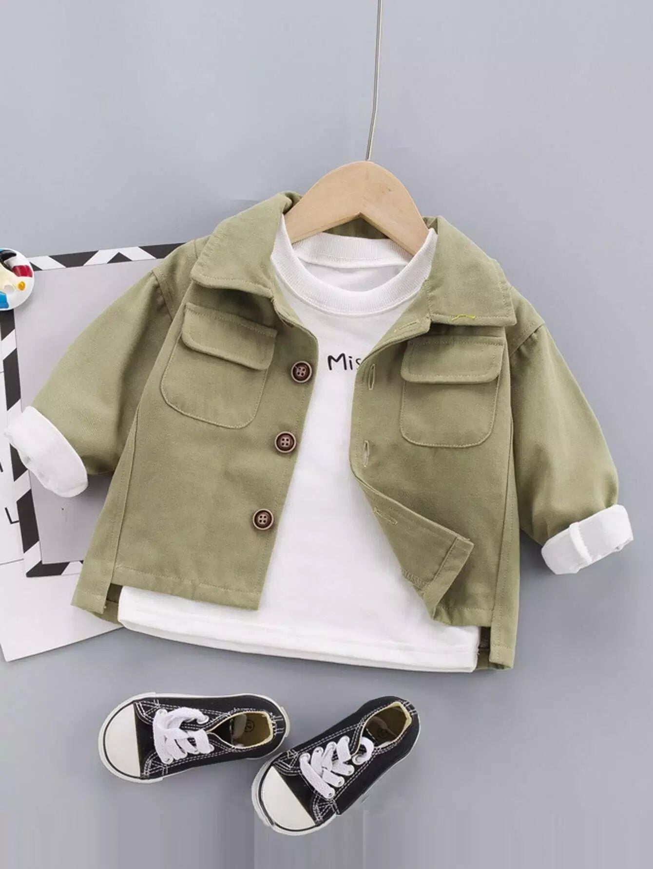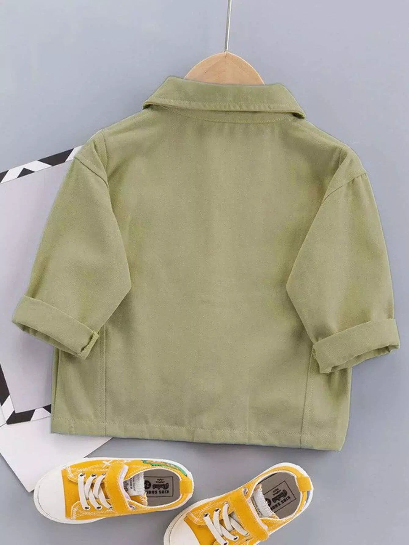 Toddler Boys 1pc Solid Button Front Flap Pocket Jacket
