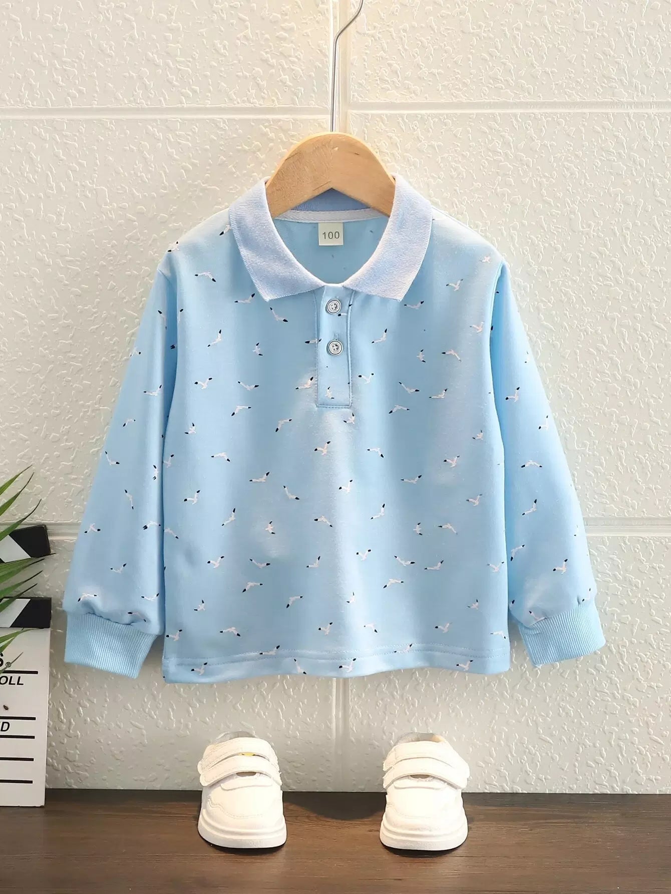 Toddler Boys Allover Bird Print Polo Shirt